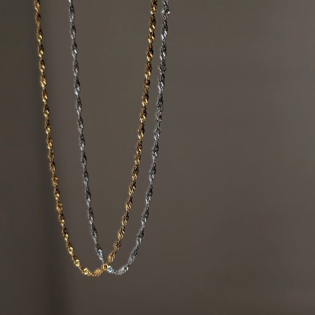 【つけっぱなしOK・スキンジュエリー】2㎜ 水の波 シンガポールチェーン スクリューチェーン シルバー/ゴールド