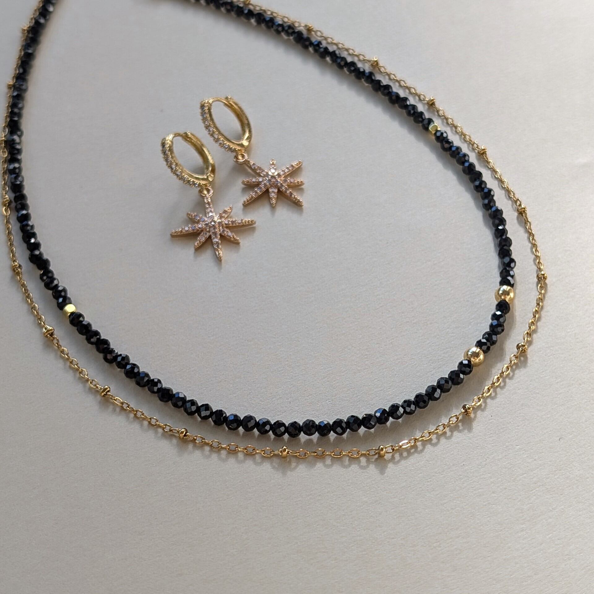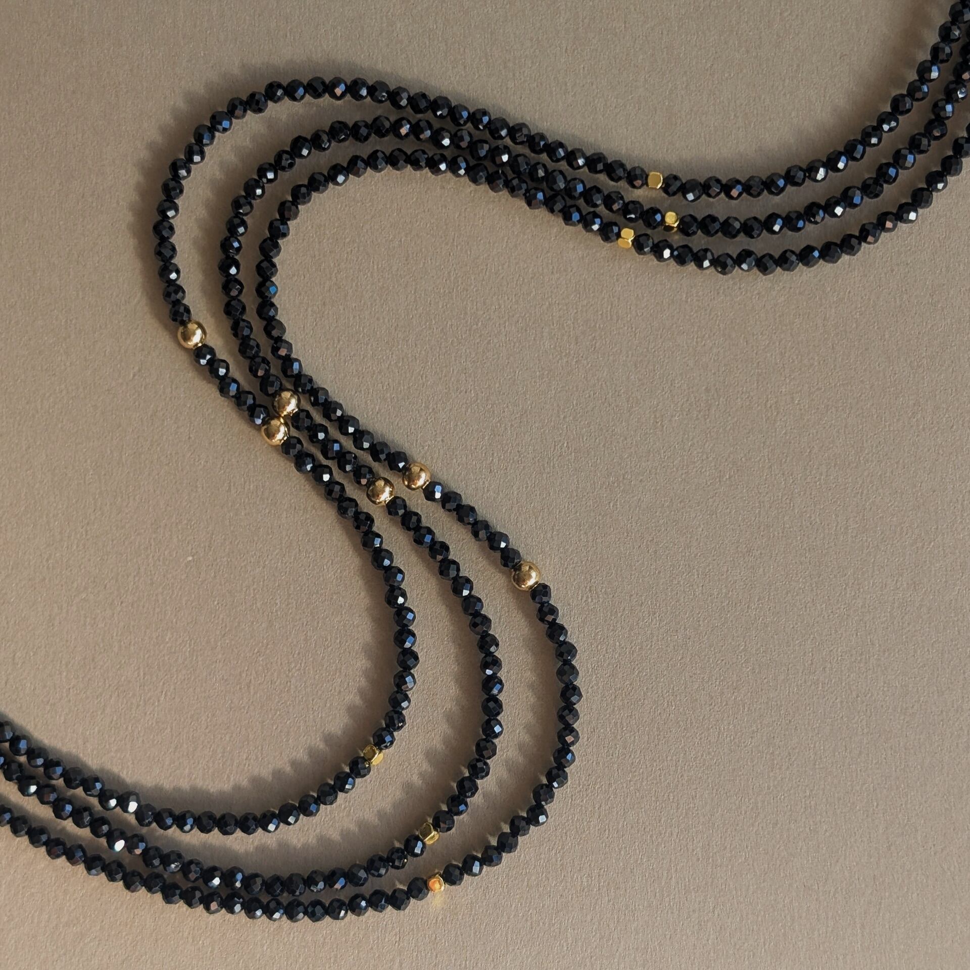 オニキスと似ているブラックスピネルですが、オニキスより硬質で強い輝きを持っています。
