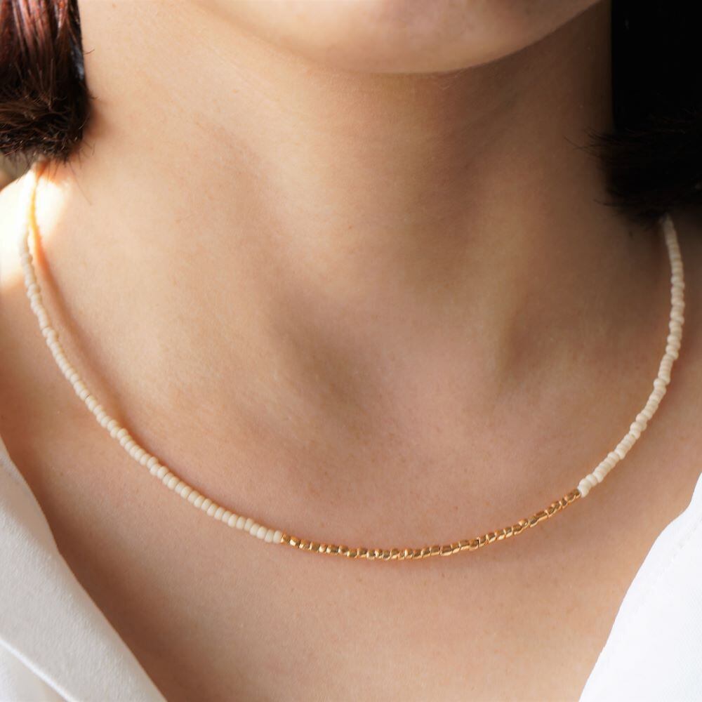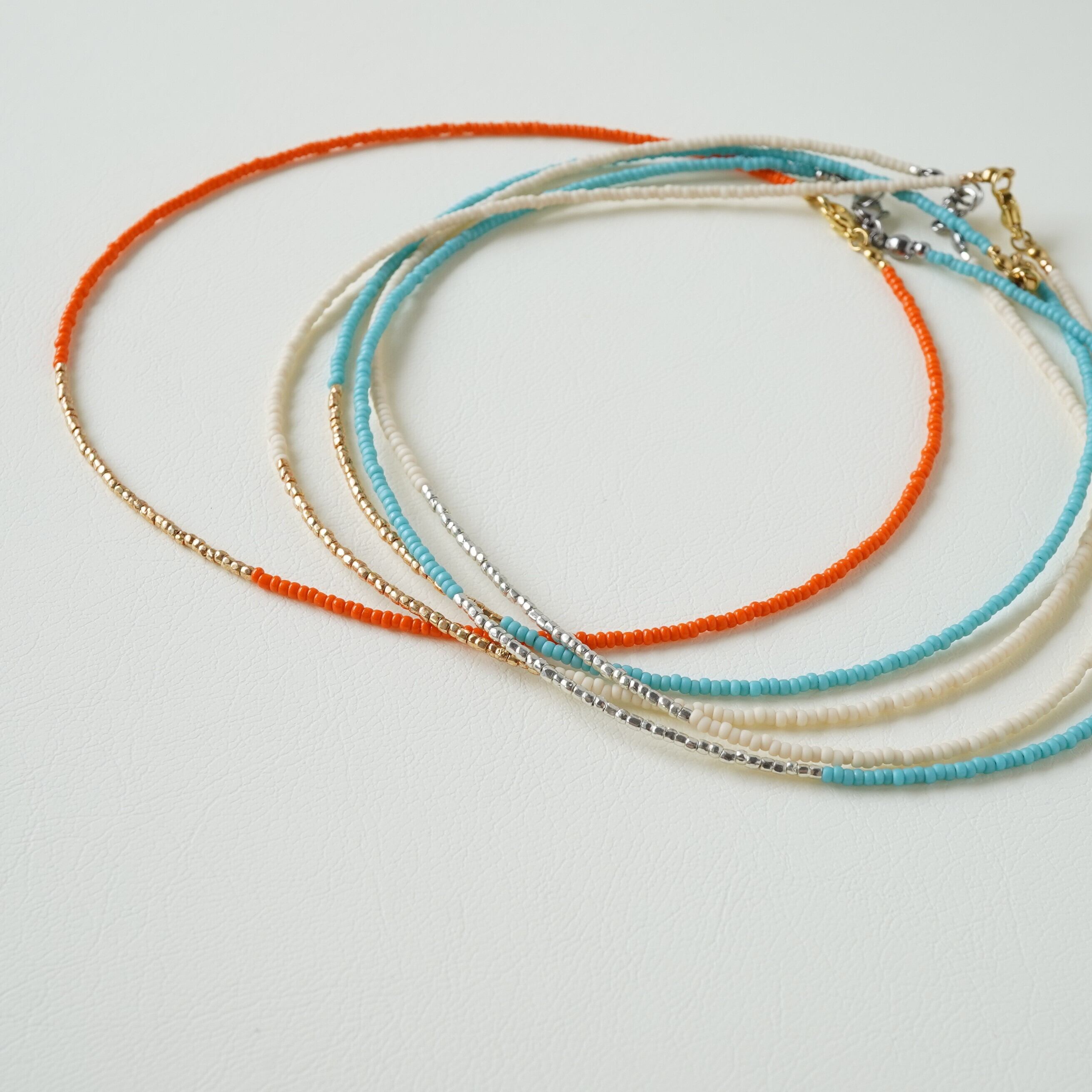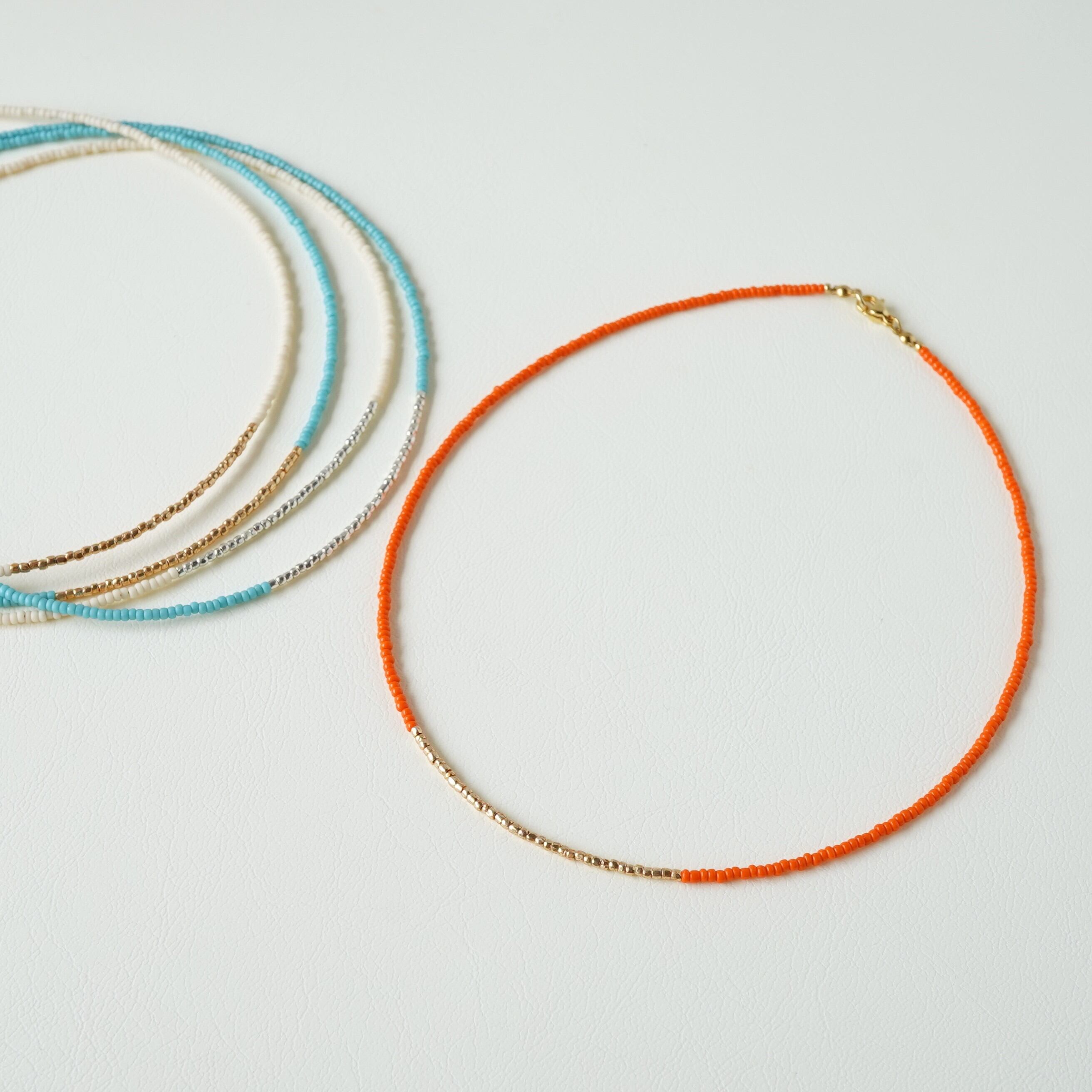 2㎜の小さなビーズを使った細めのチョーカーネックレス。