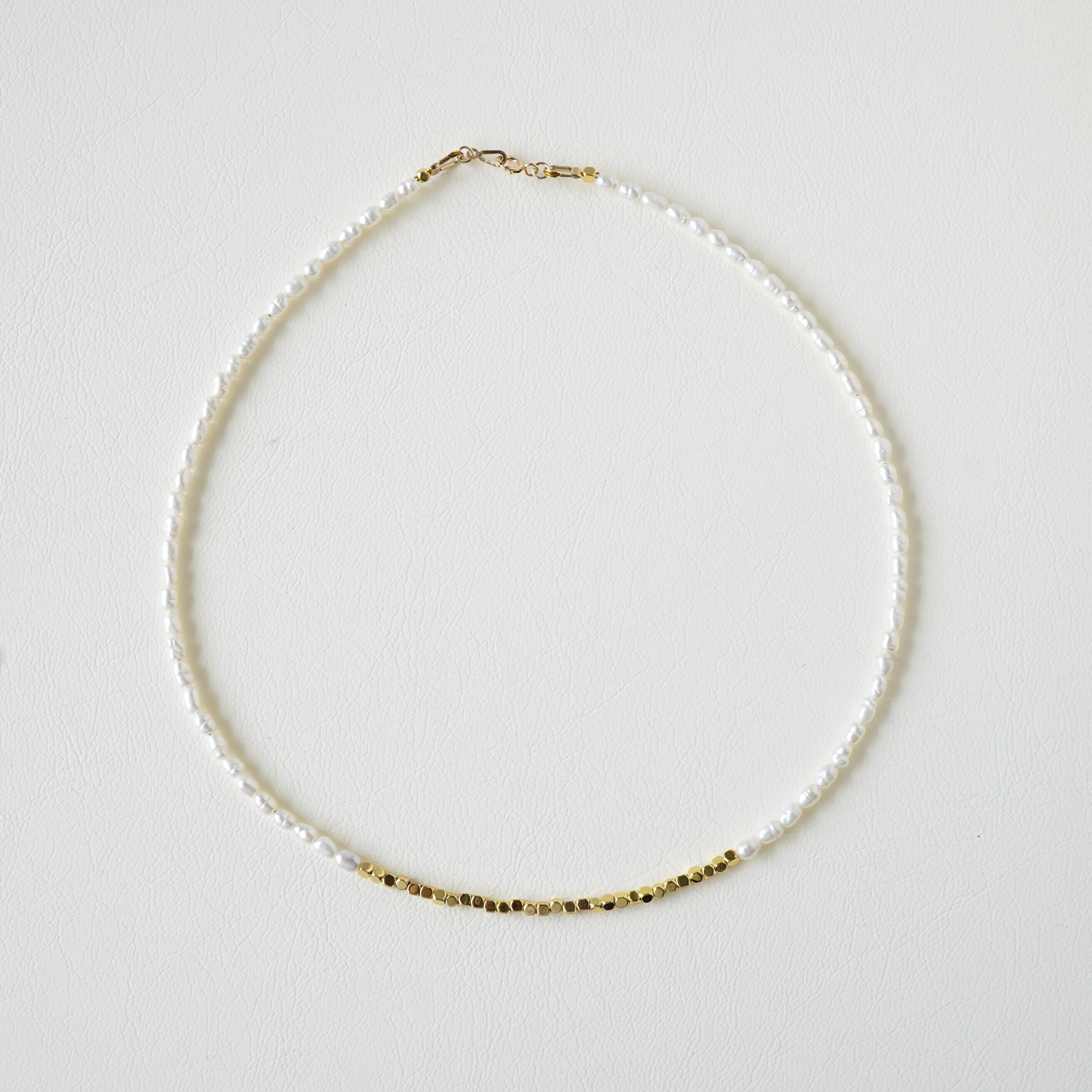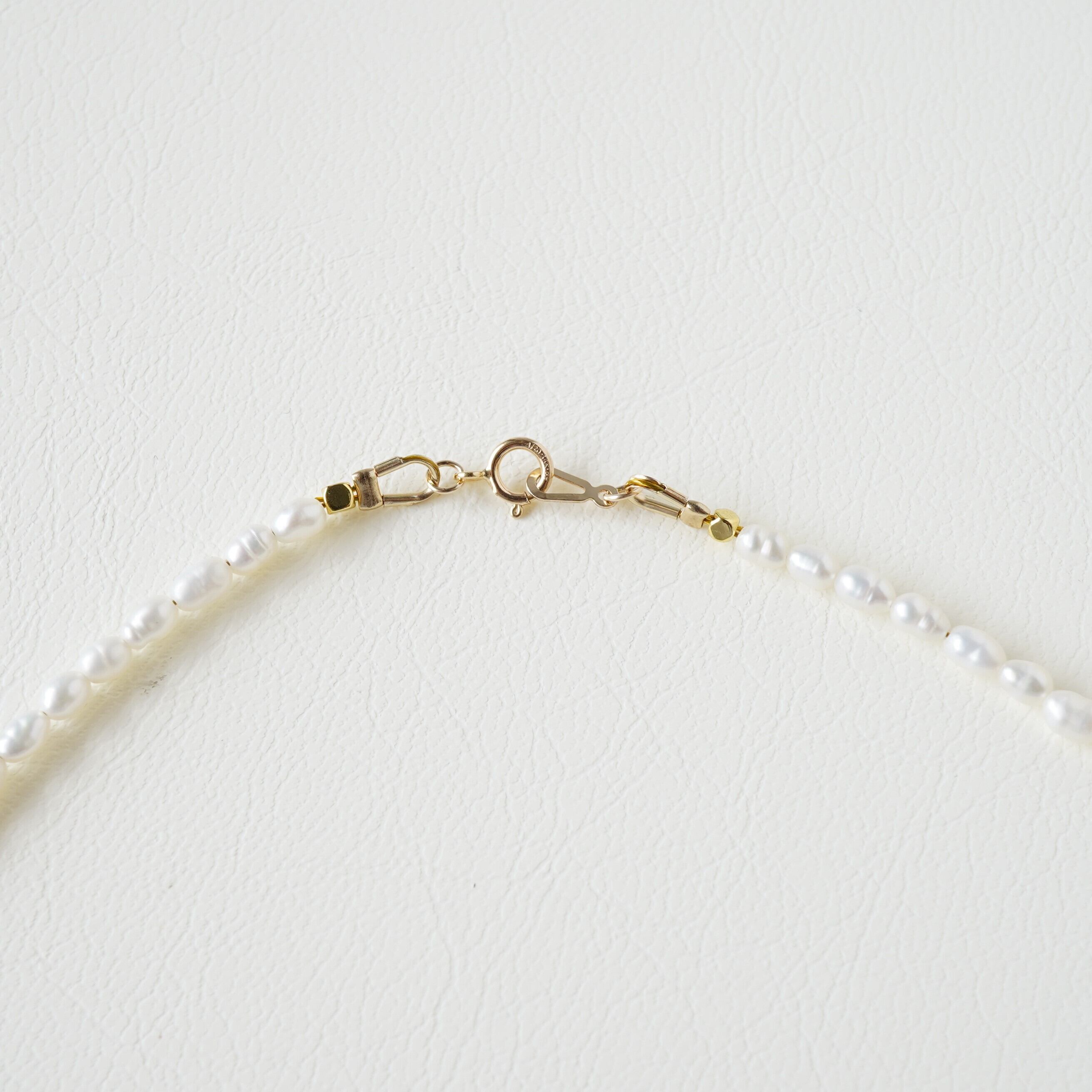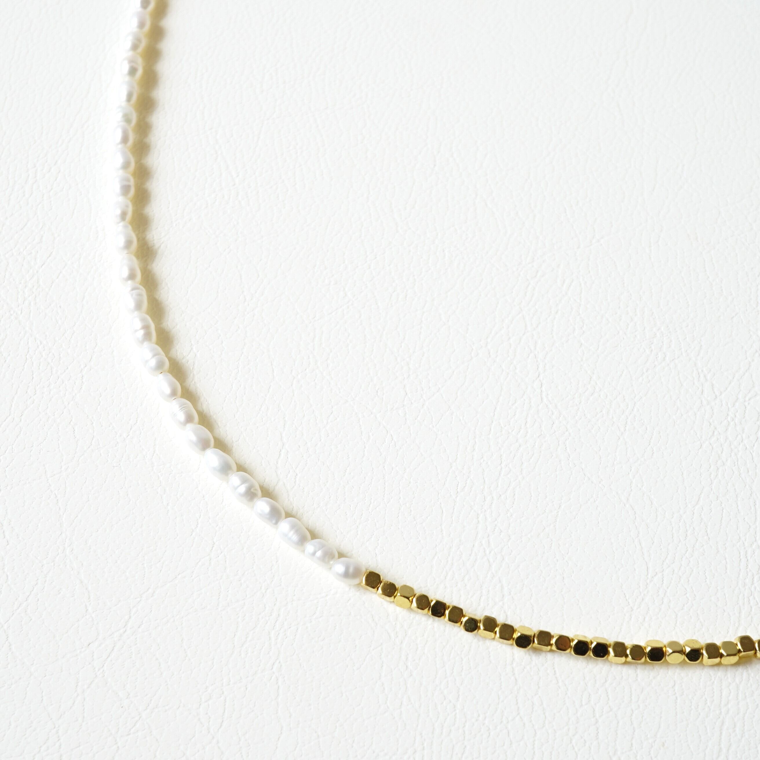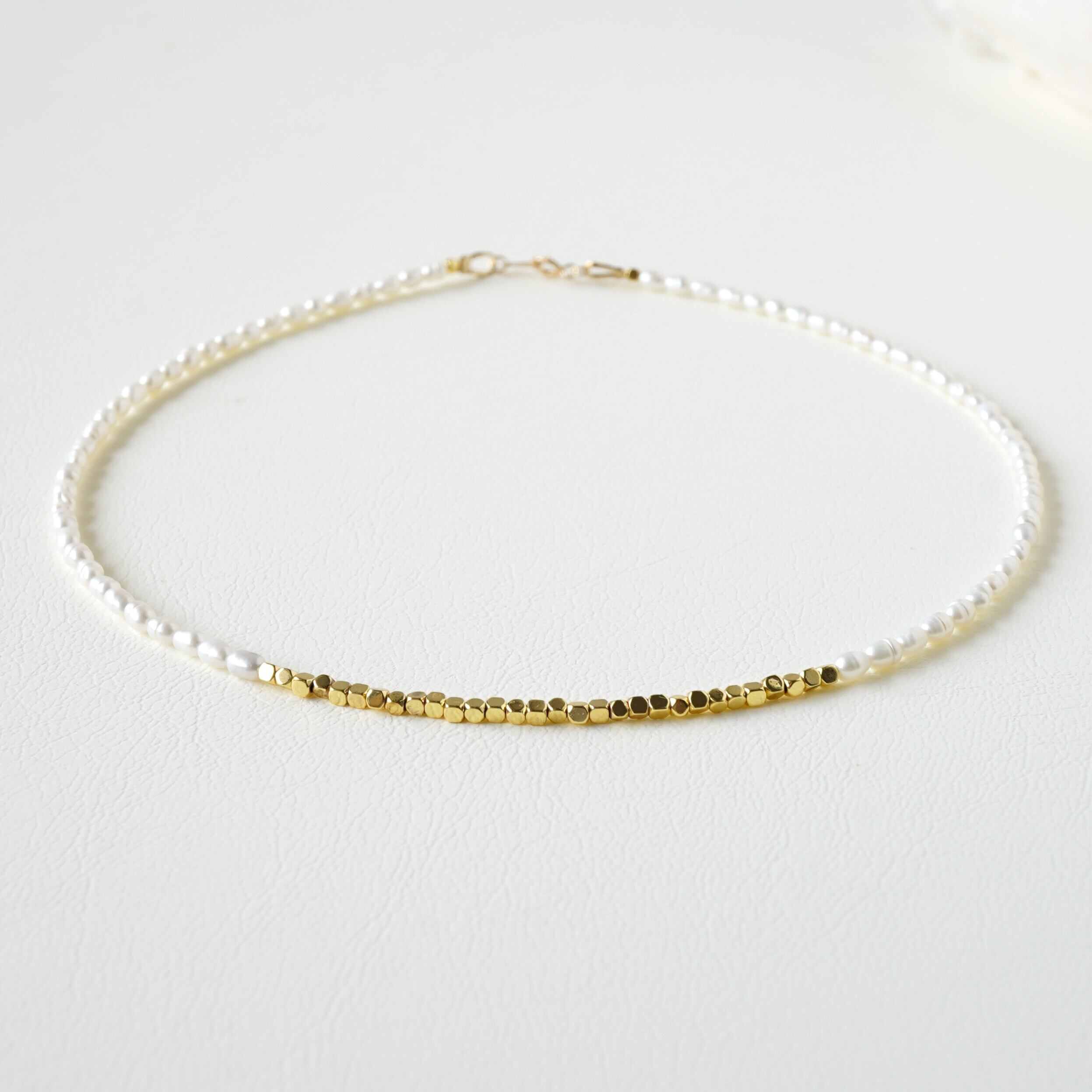 上質な小粒パールに中央のみアクセントでヘマタイトをいれたチョーカーです。