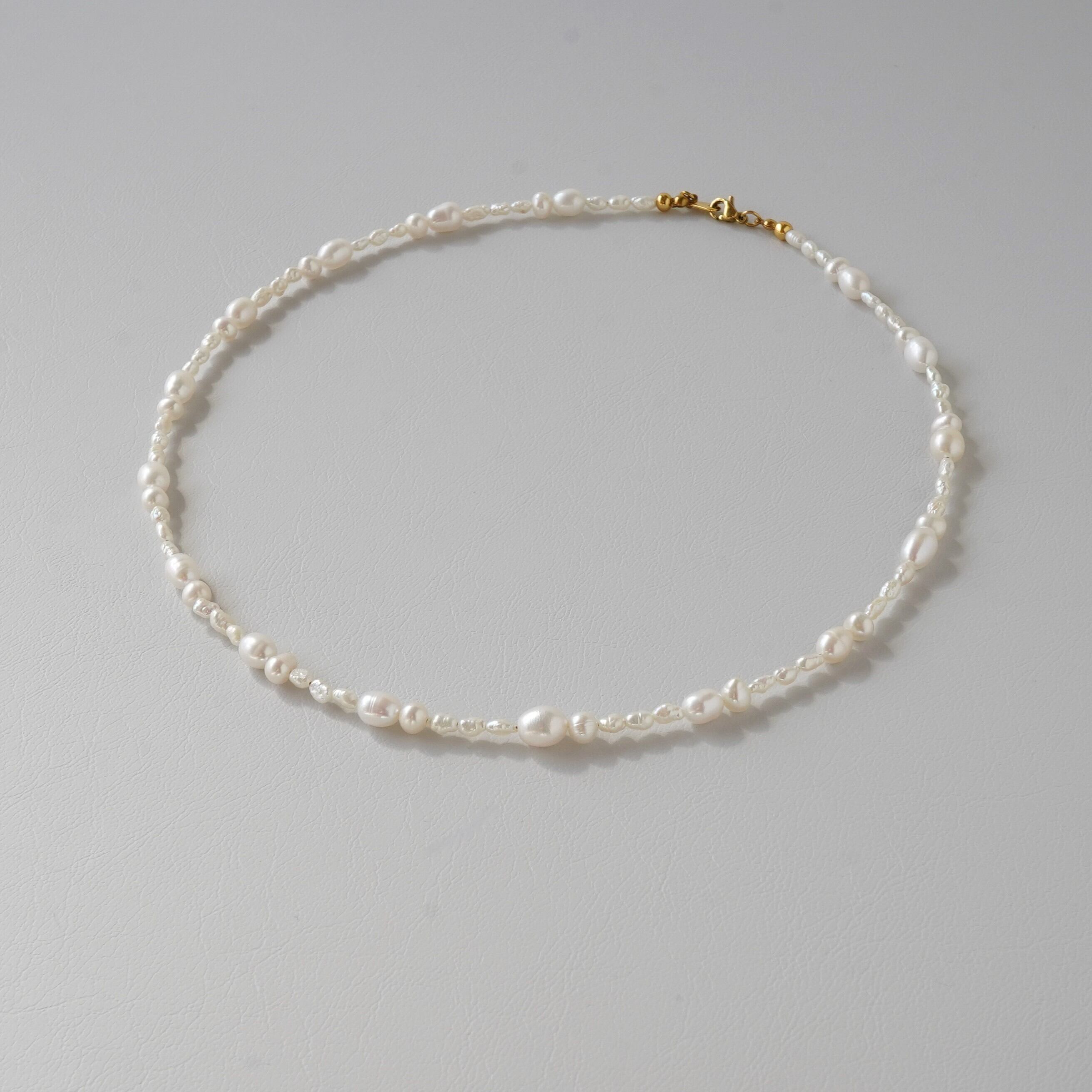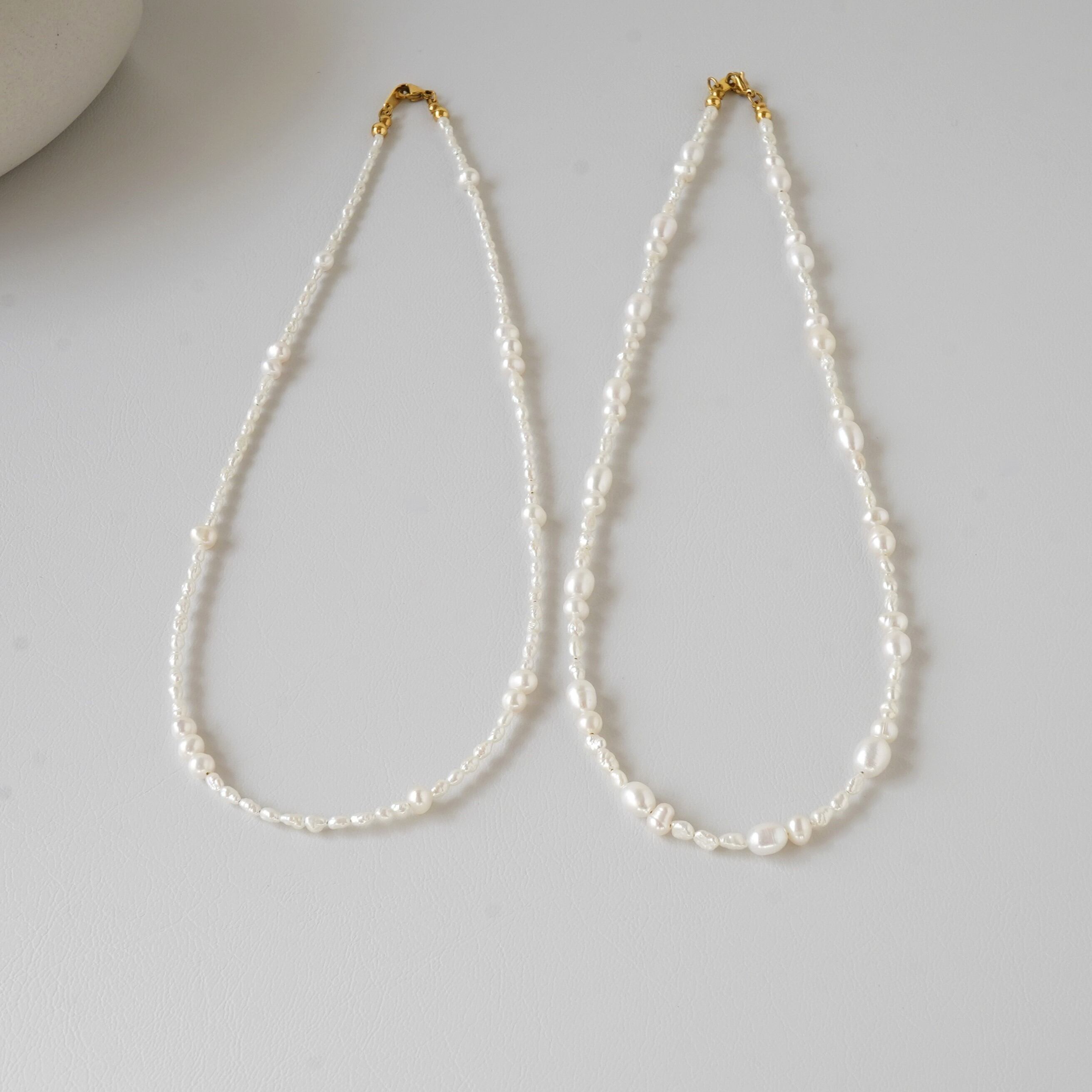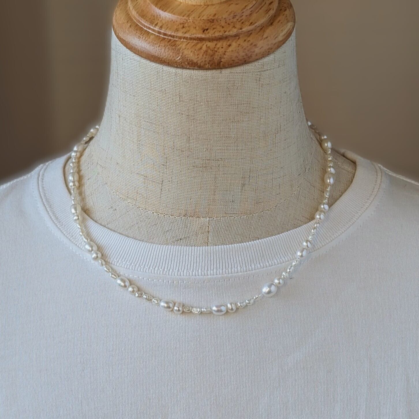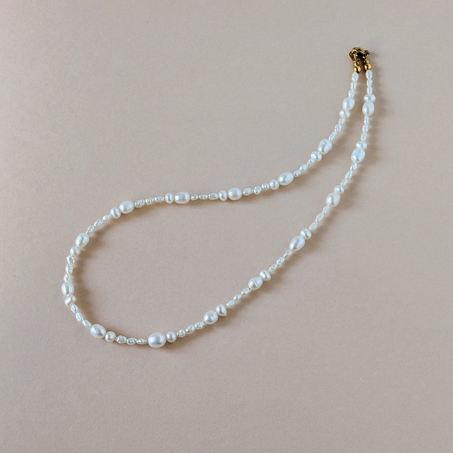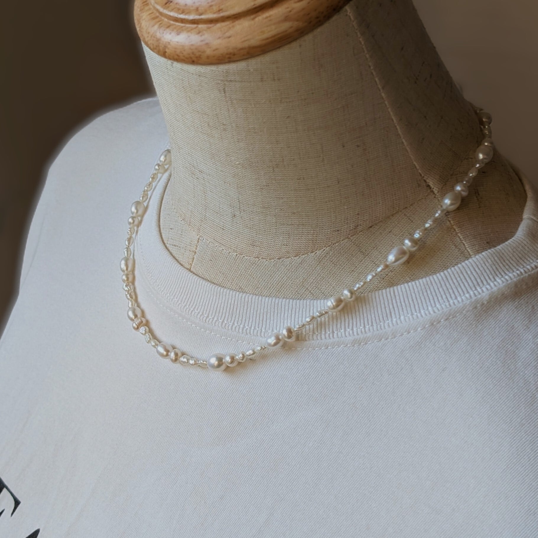 大きさの違う淡水パールを組み合わせたシンプルなネックレスです。