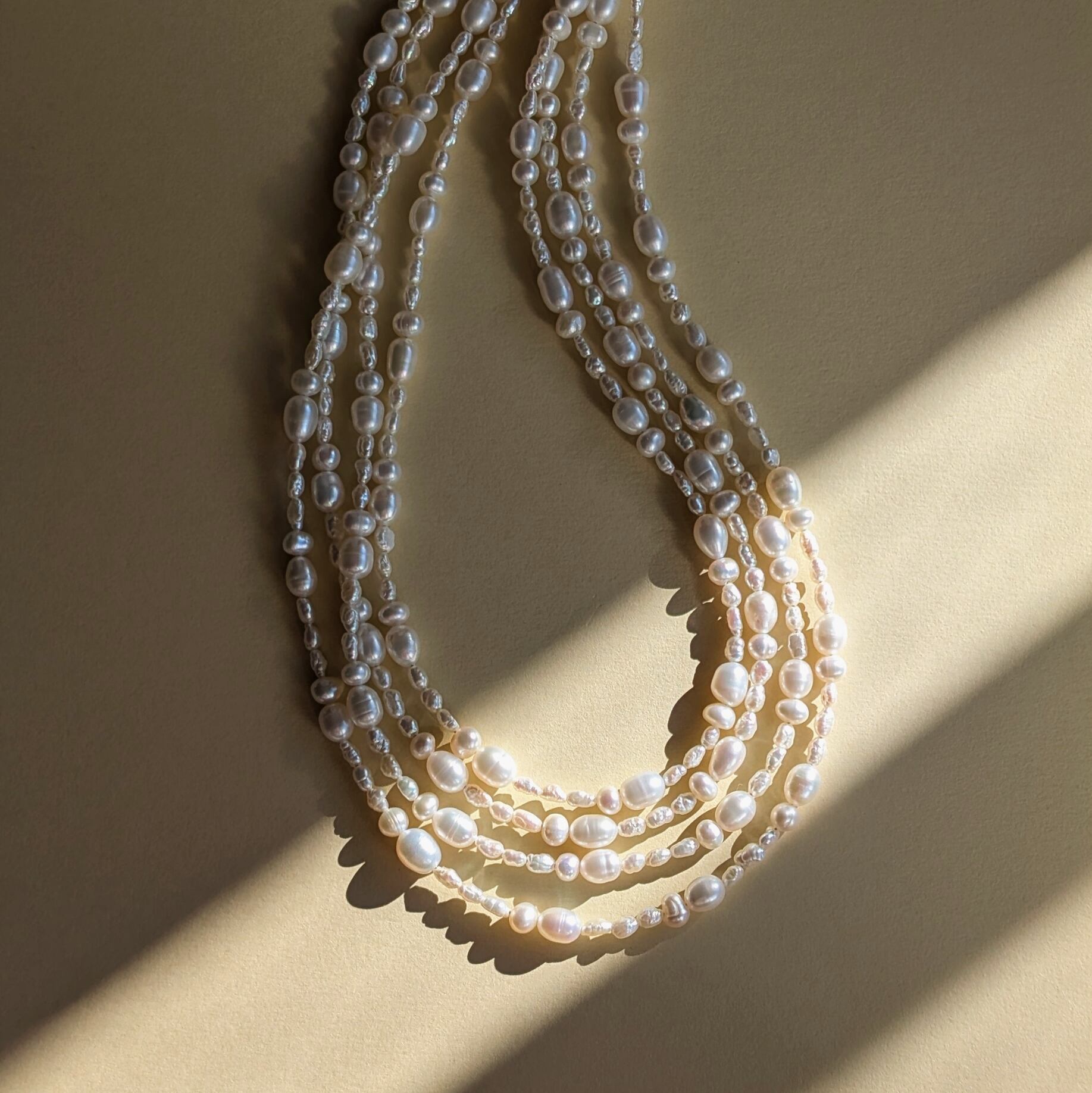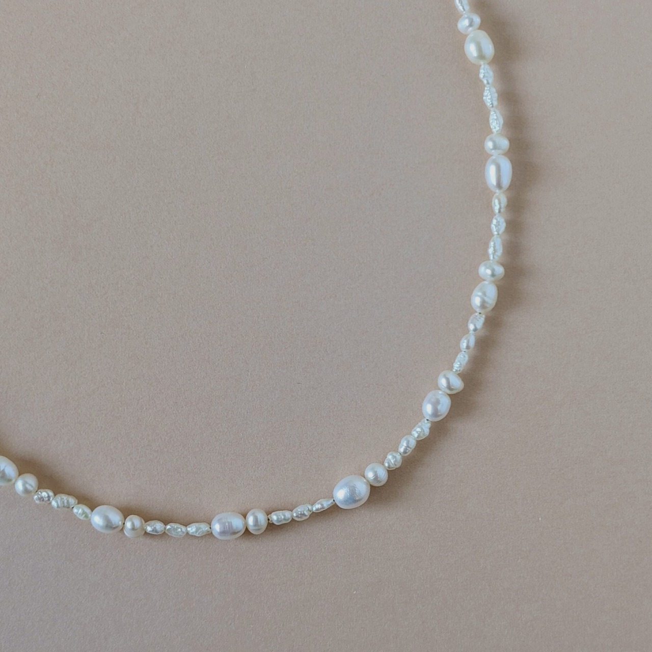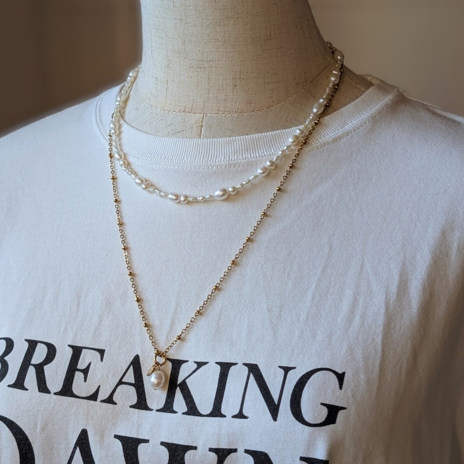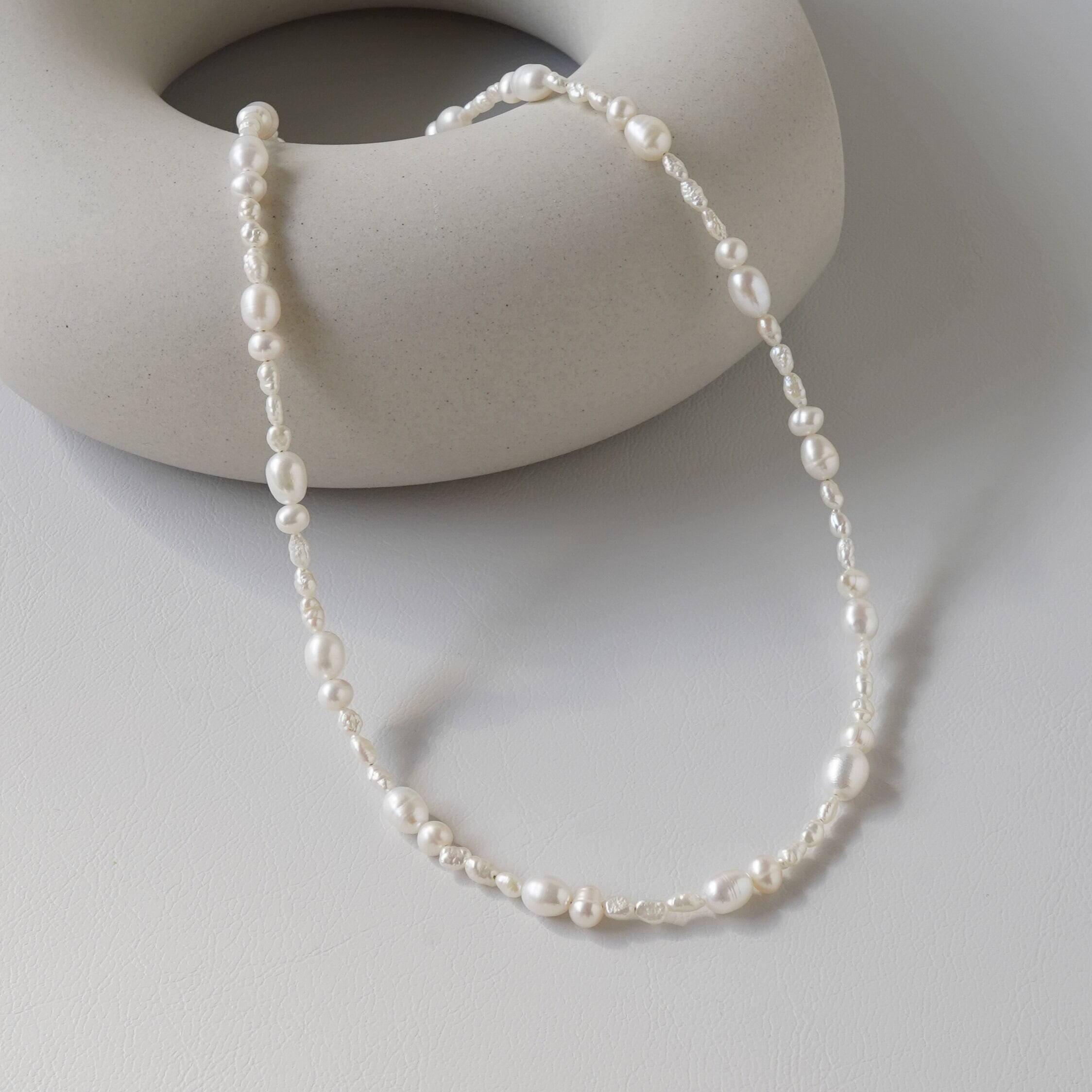 大きさの違う淡水パールを組み合わせたシンプルなネックレスです。