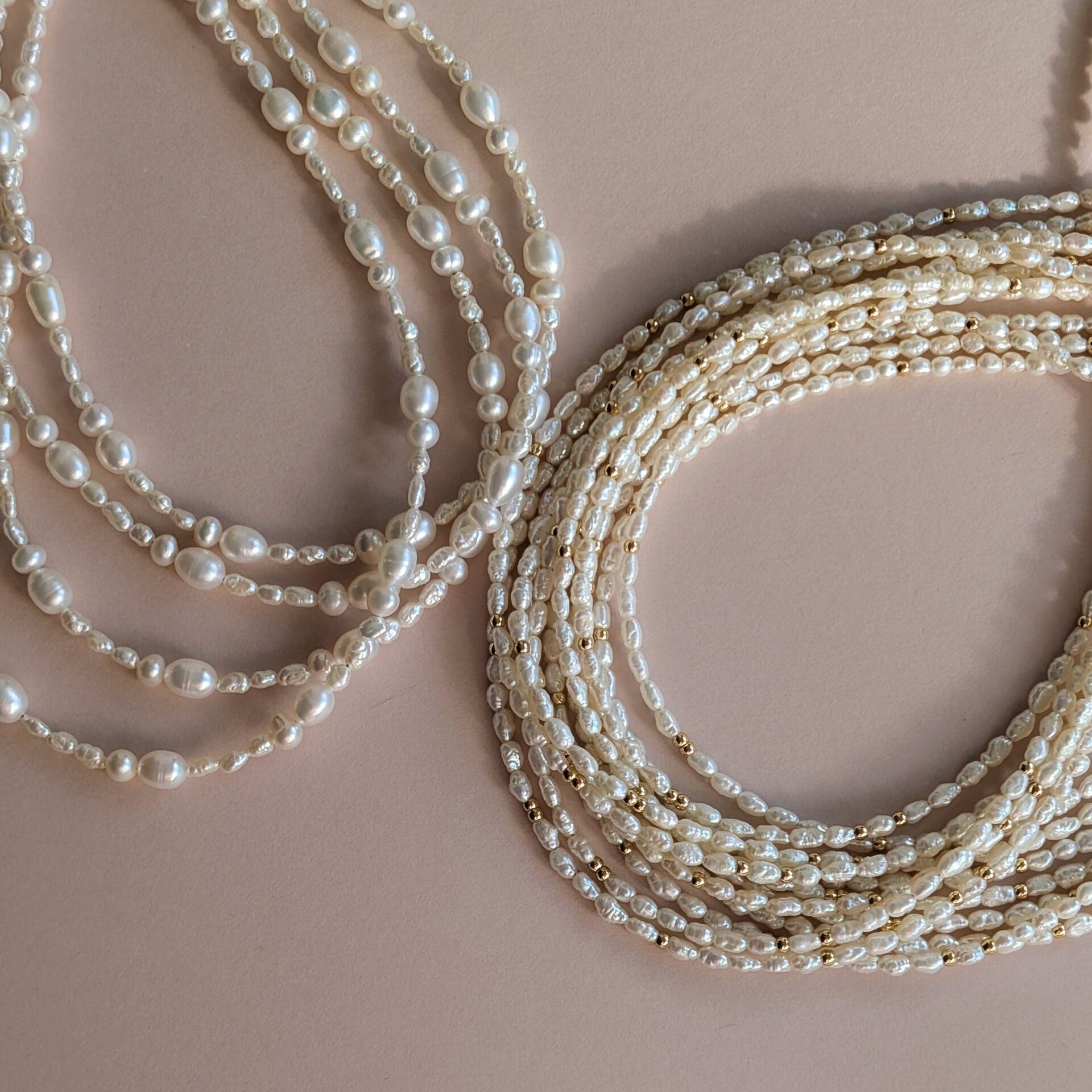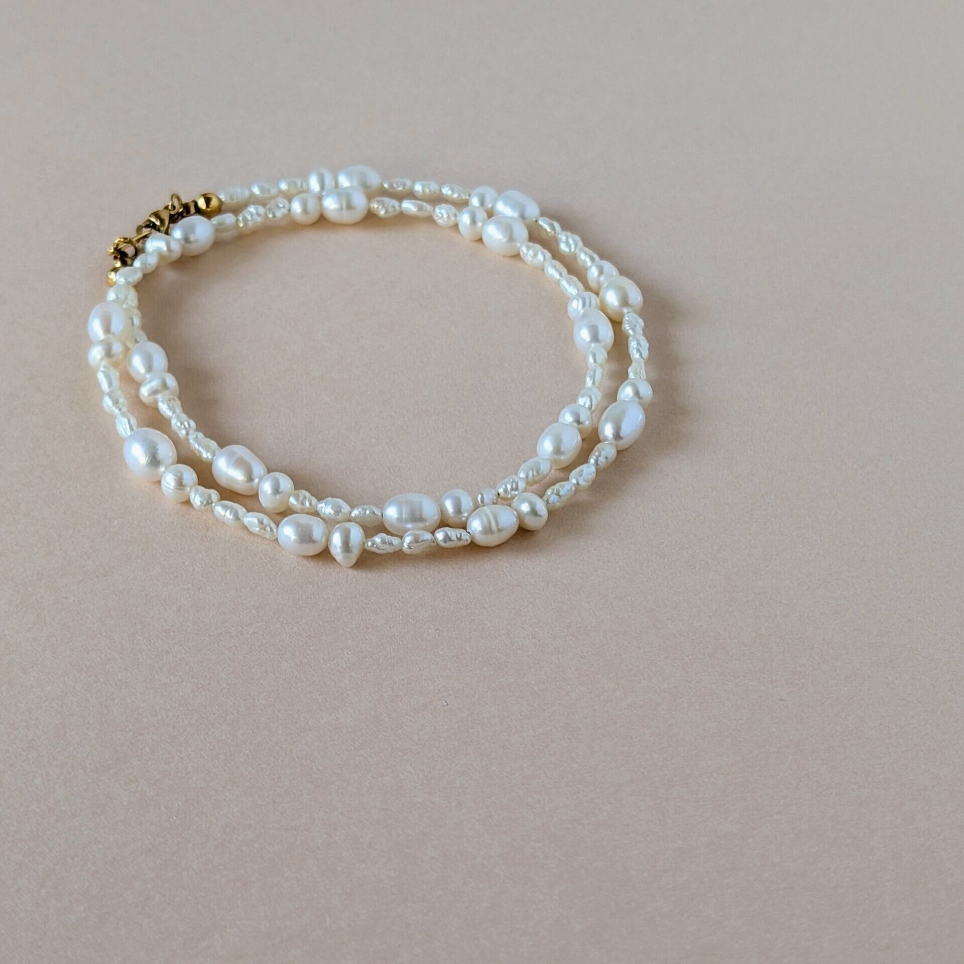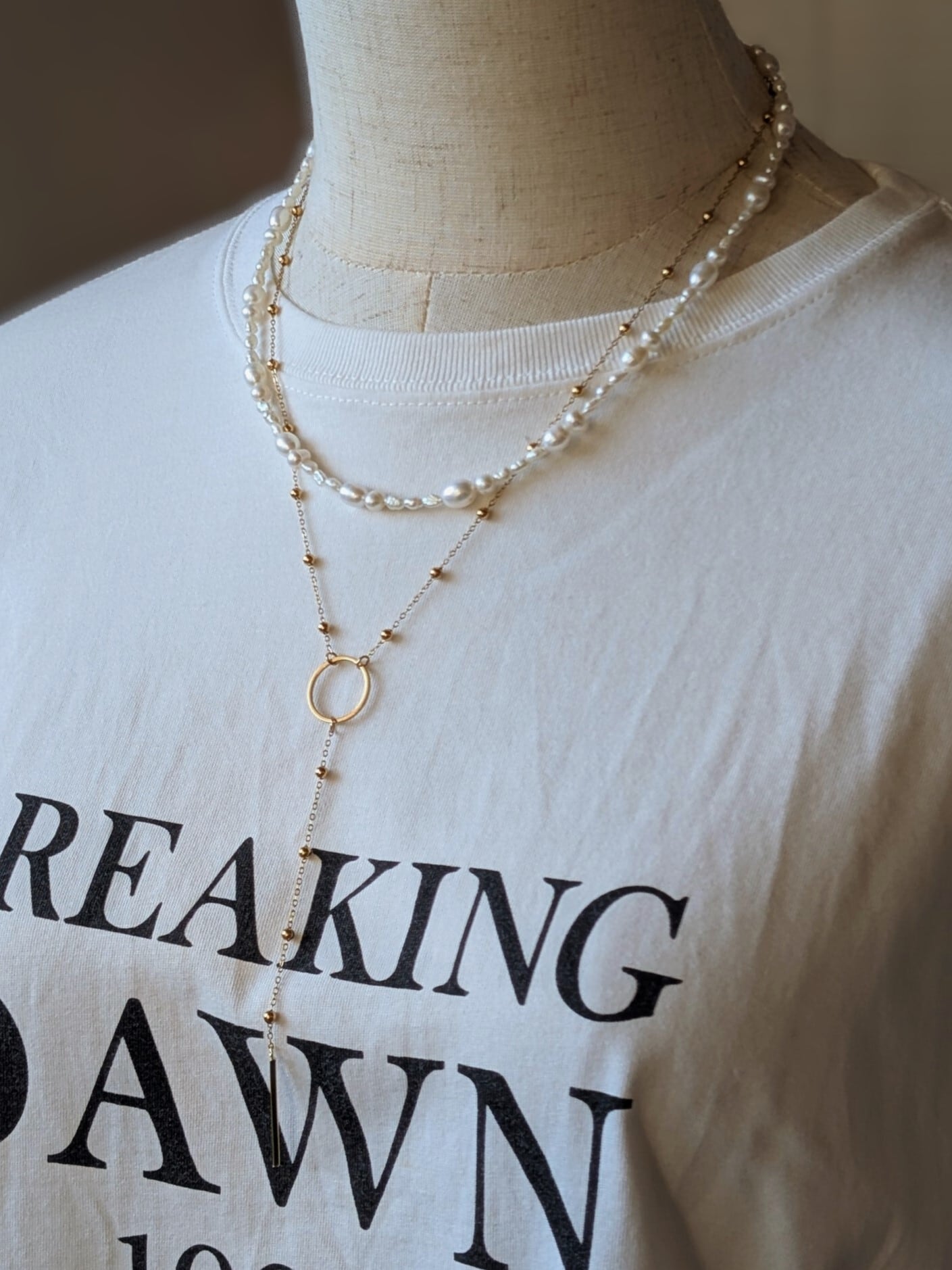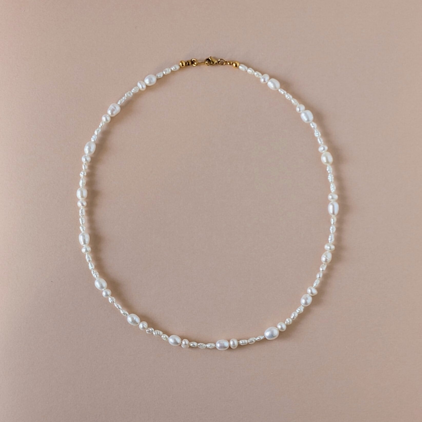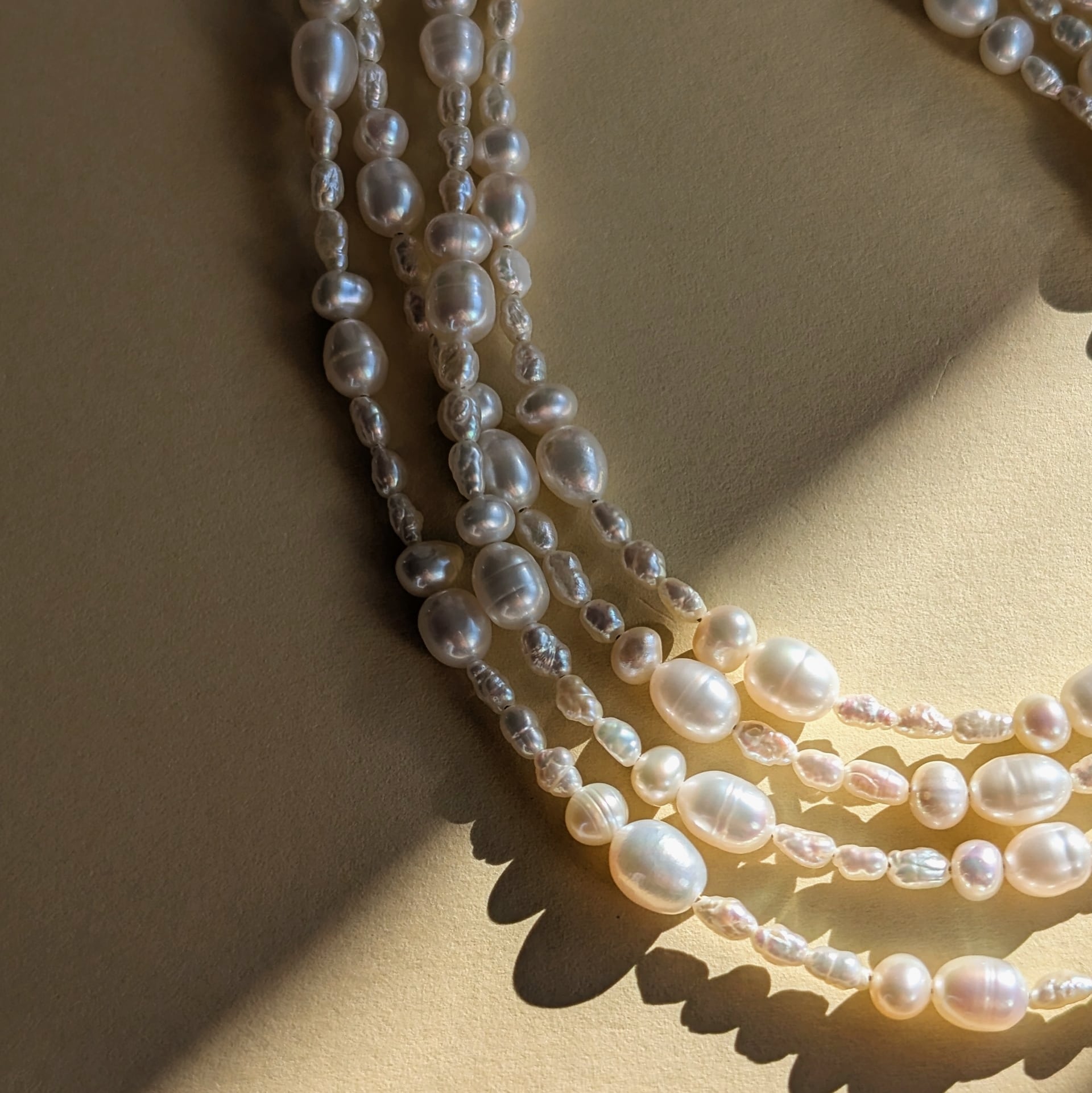 大きさの違う淡水パールを組み合わせたシンプルなネックレスです。