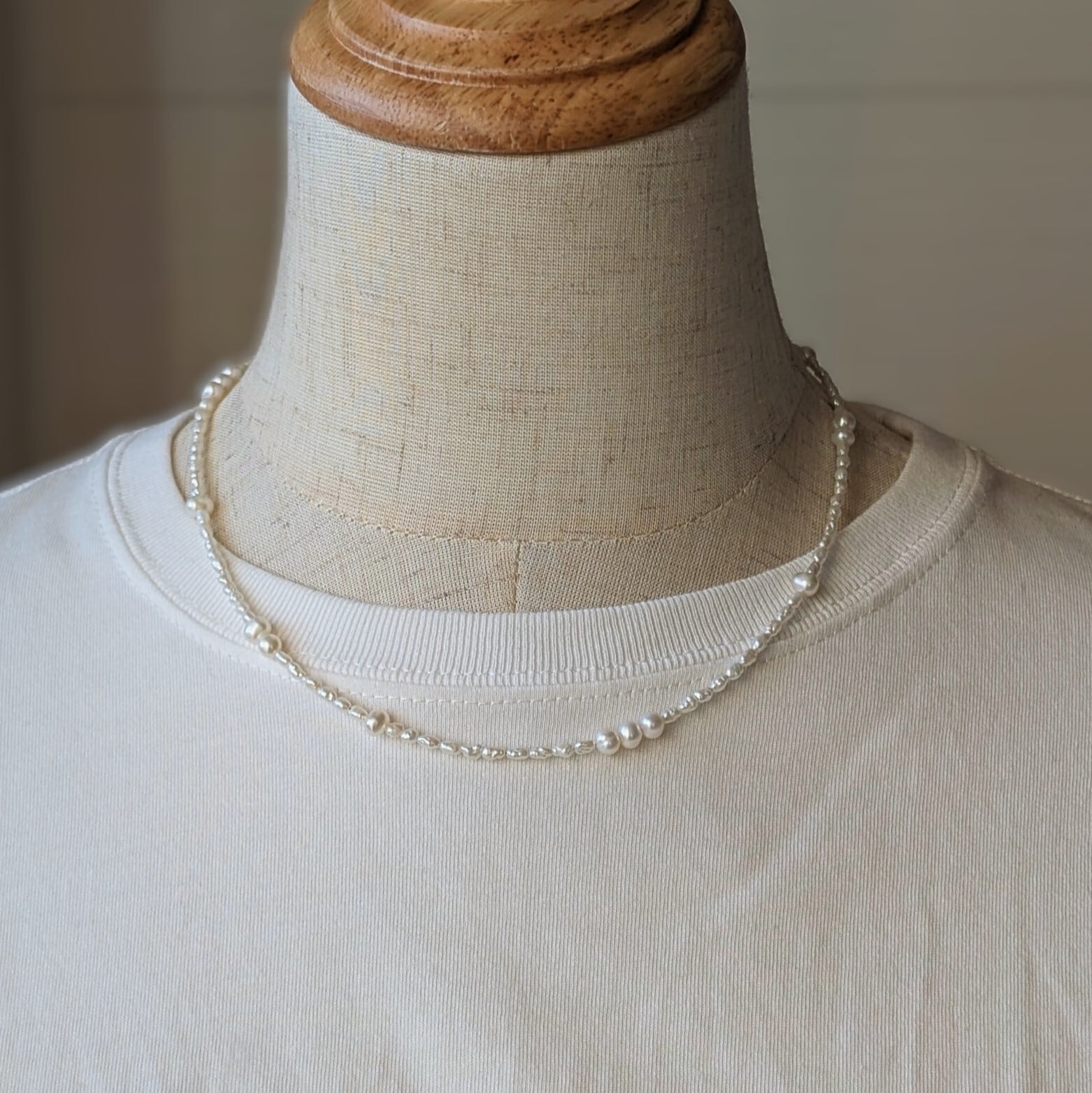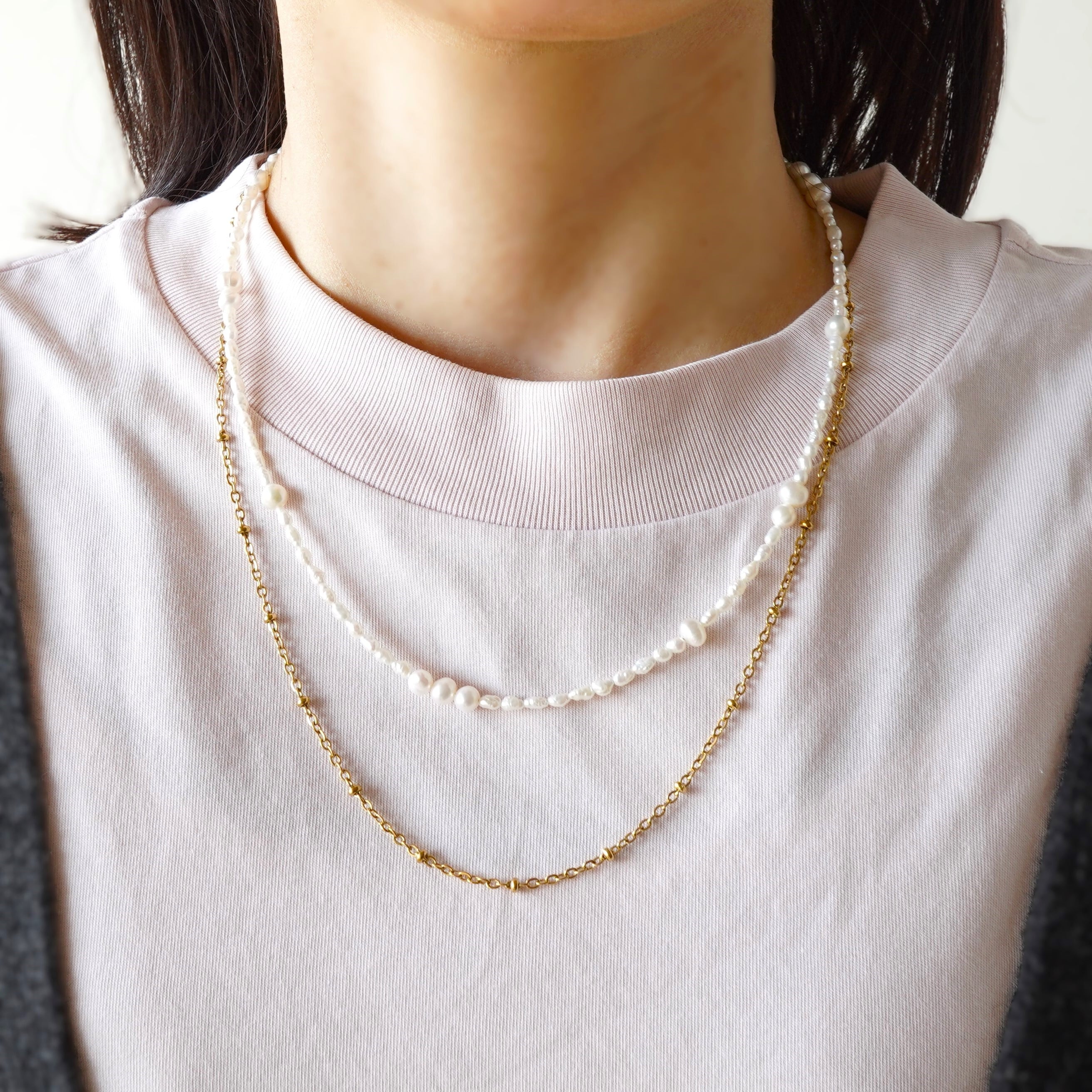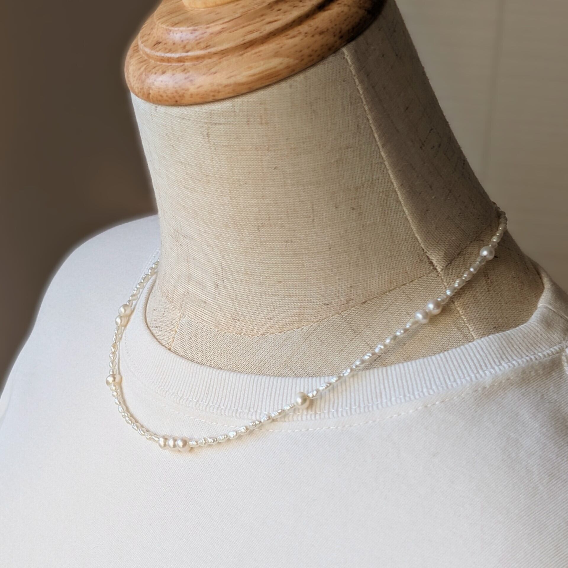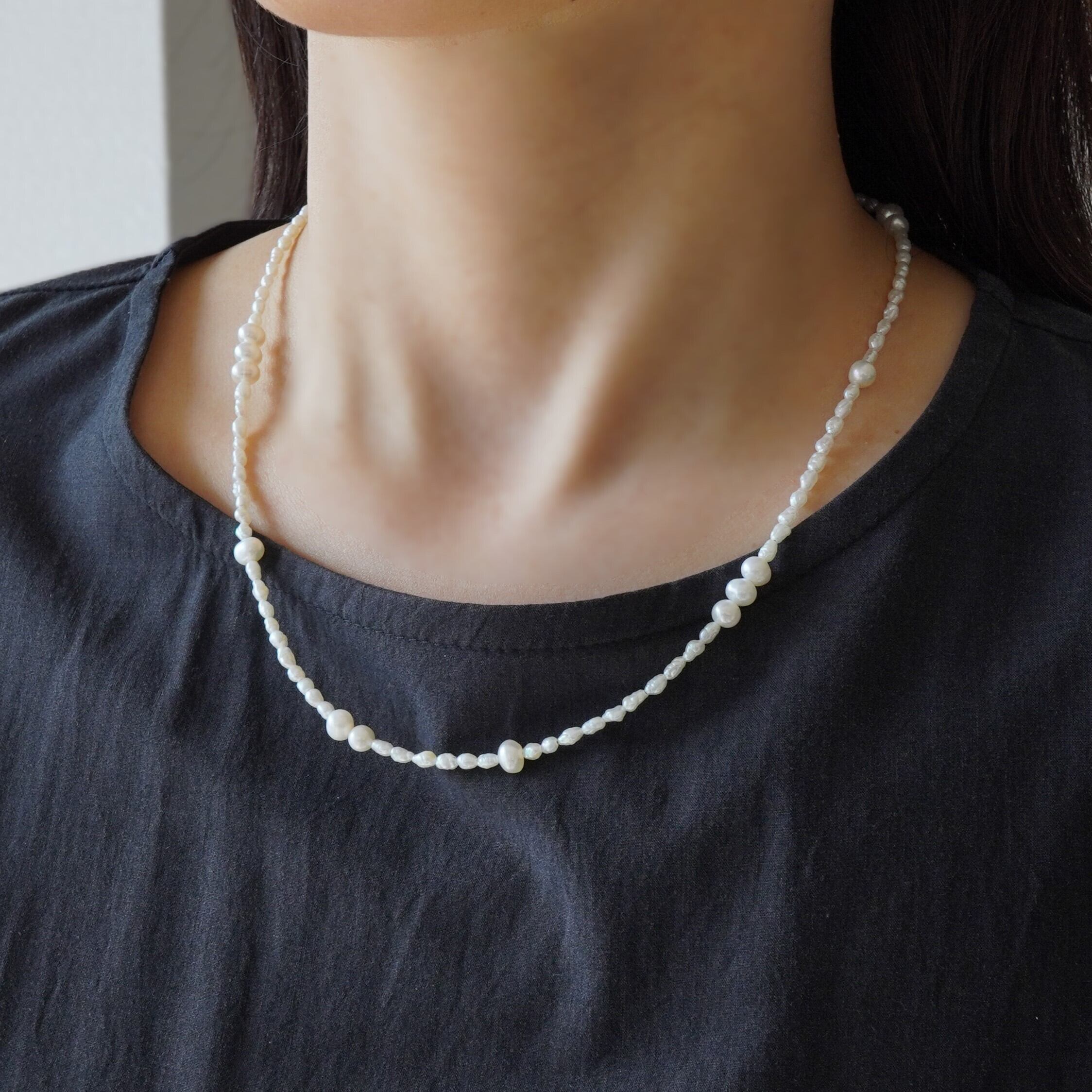 大きさの違う淡水パールを組み合わせたシンプルなネックレスです。