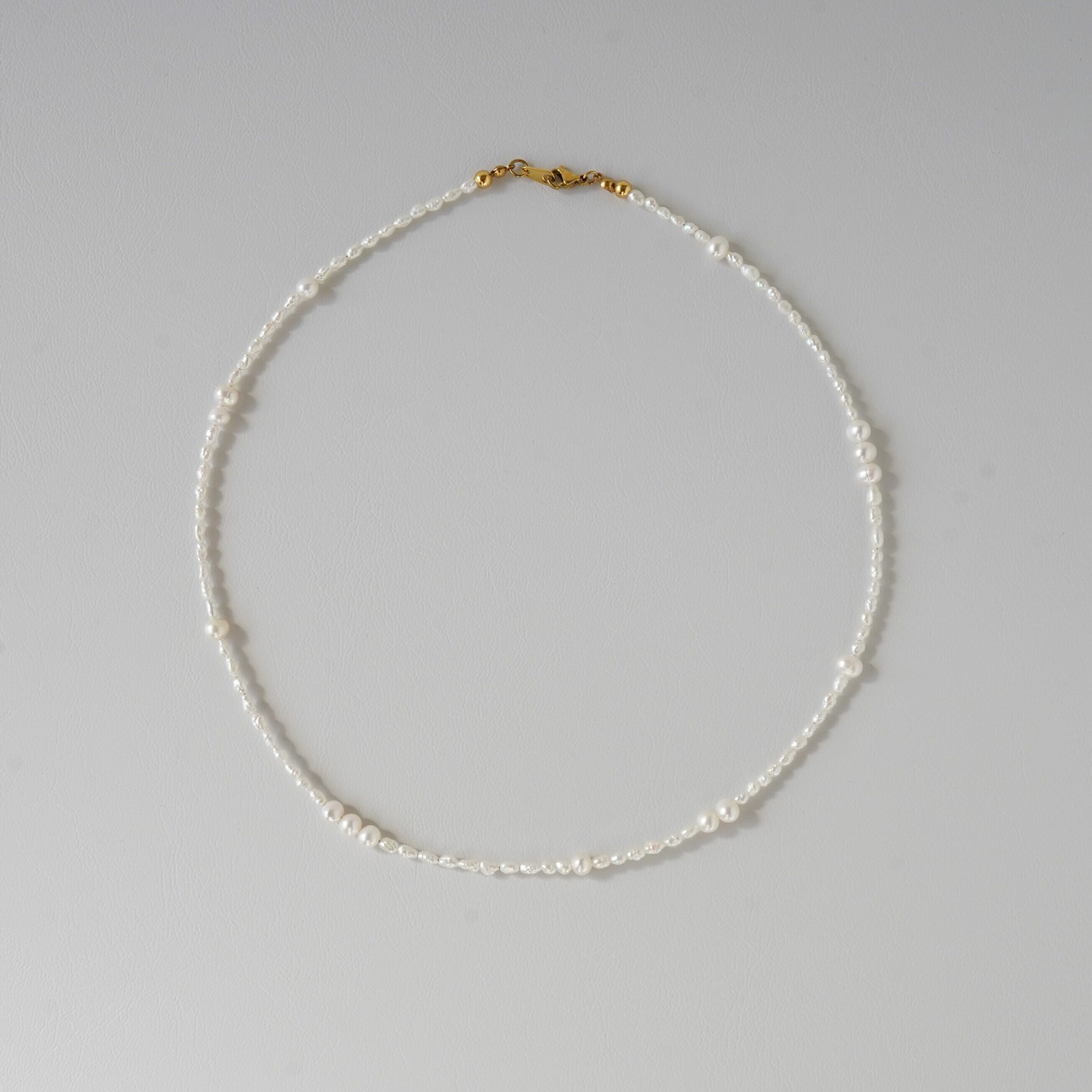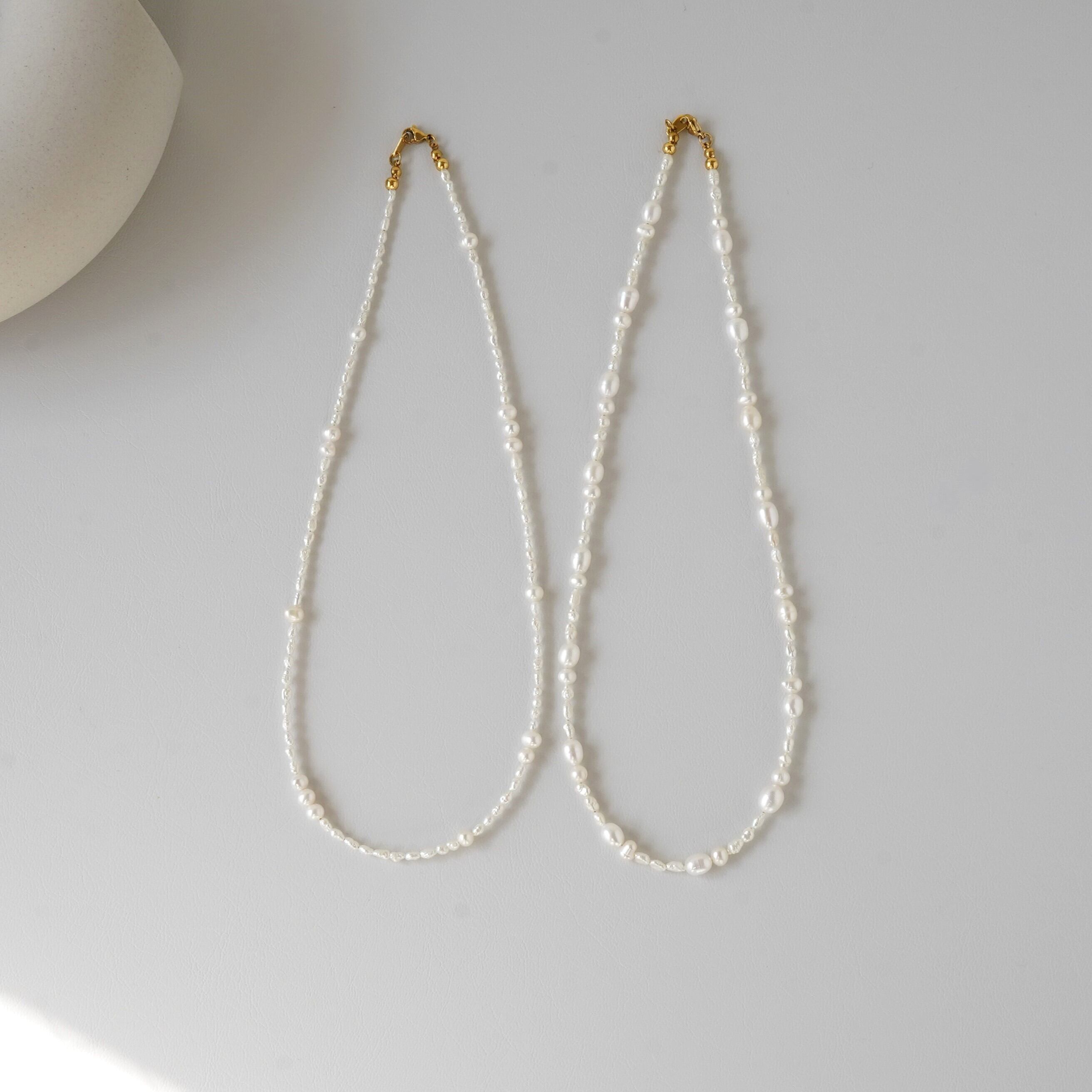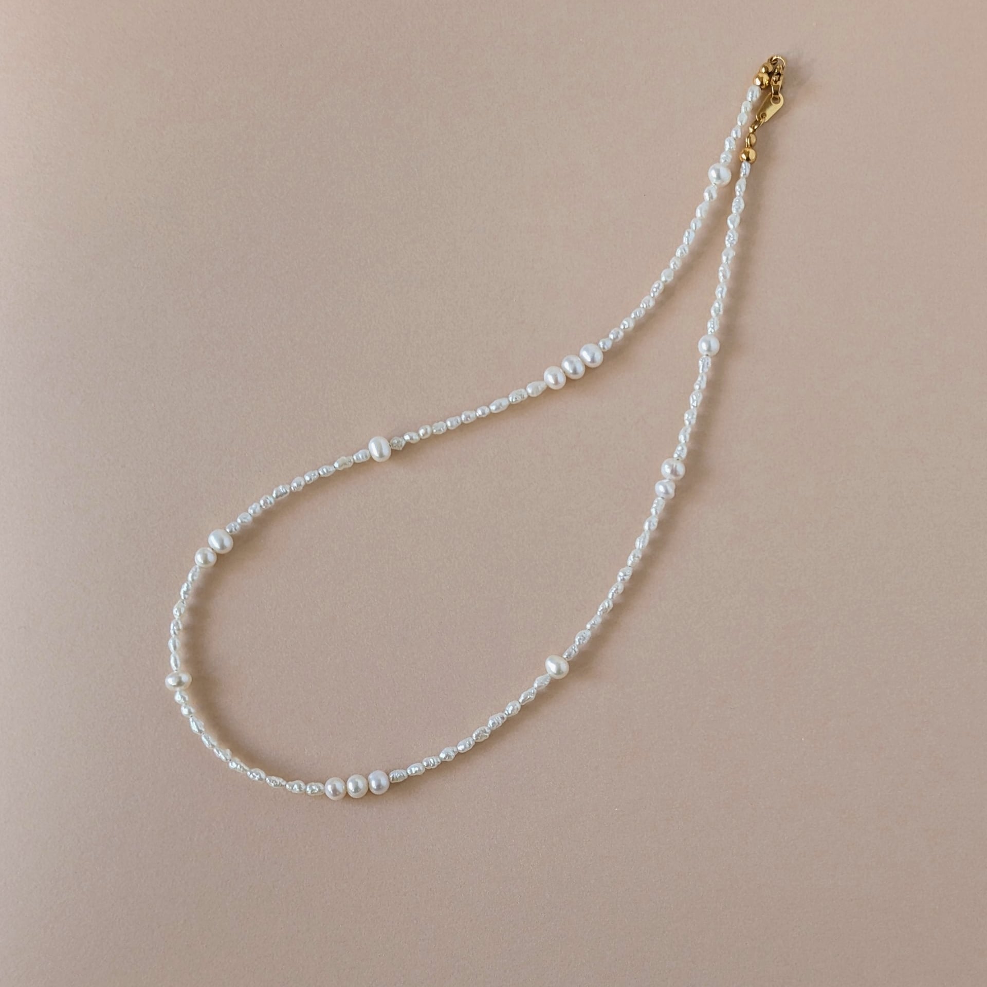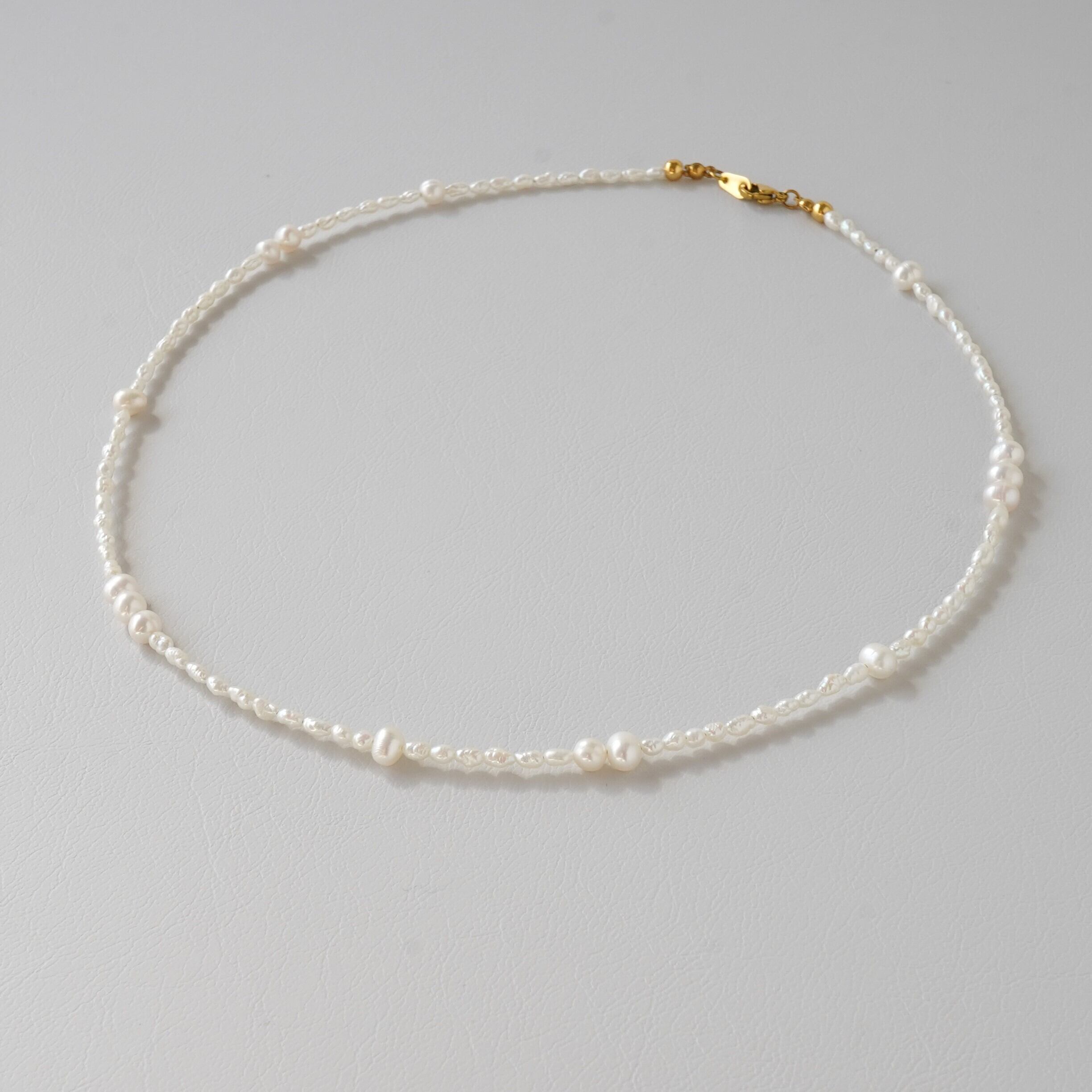 大きさの違う淡水パールを組み合わせたシンプルなネックレスです。