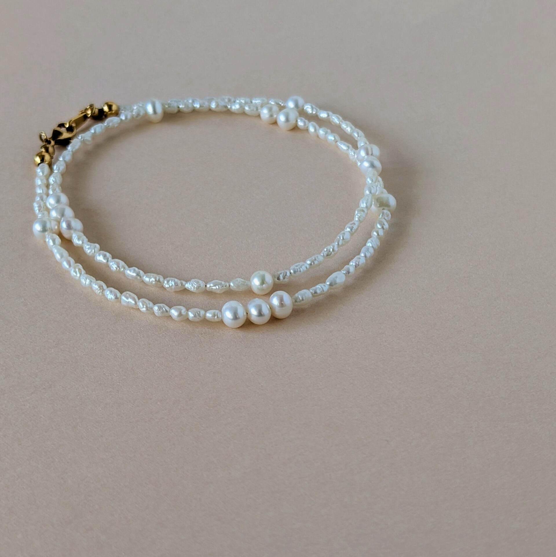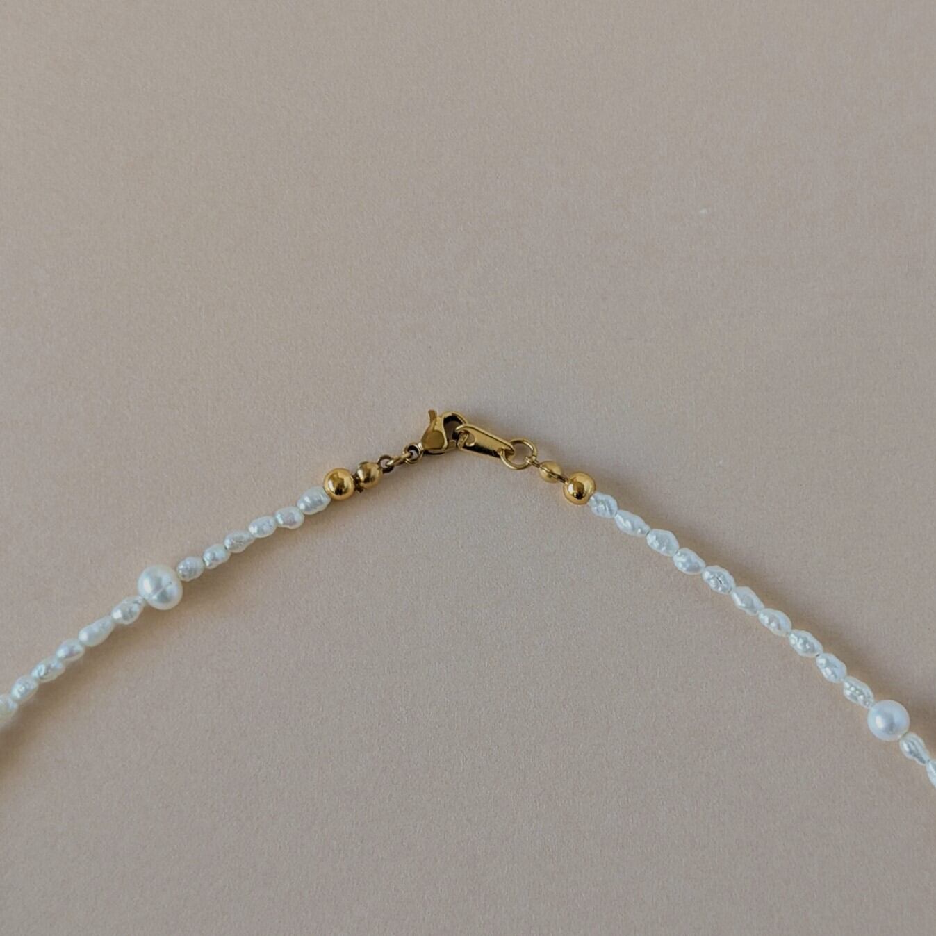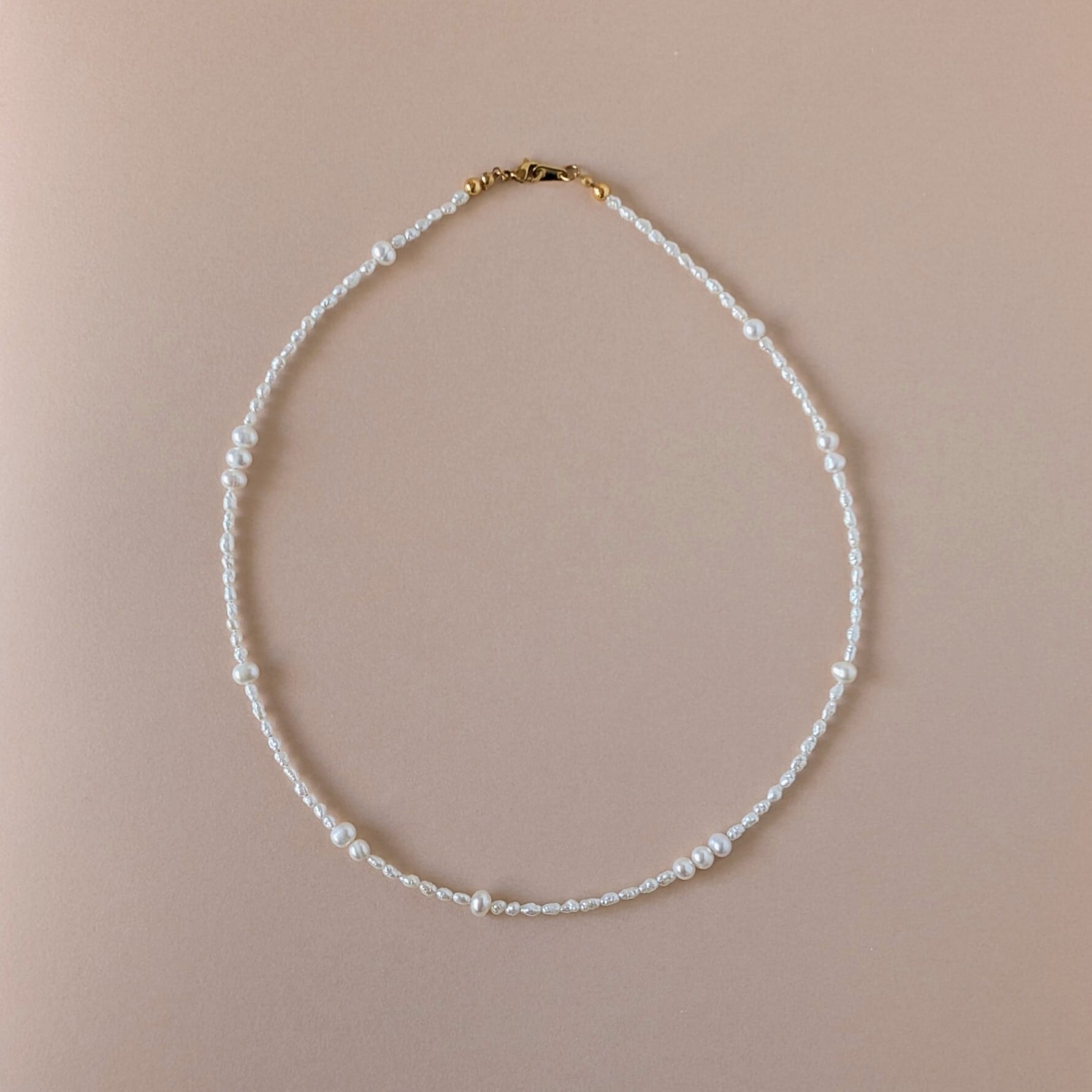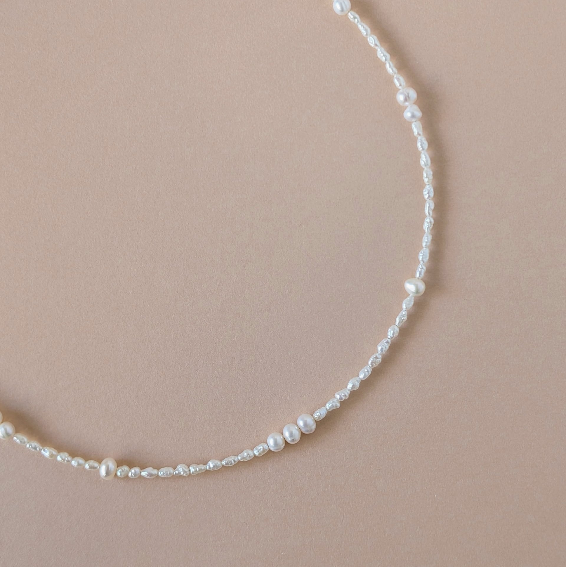 大きさの違う淡水パールを組み合わせたシンプルなネックレスです。