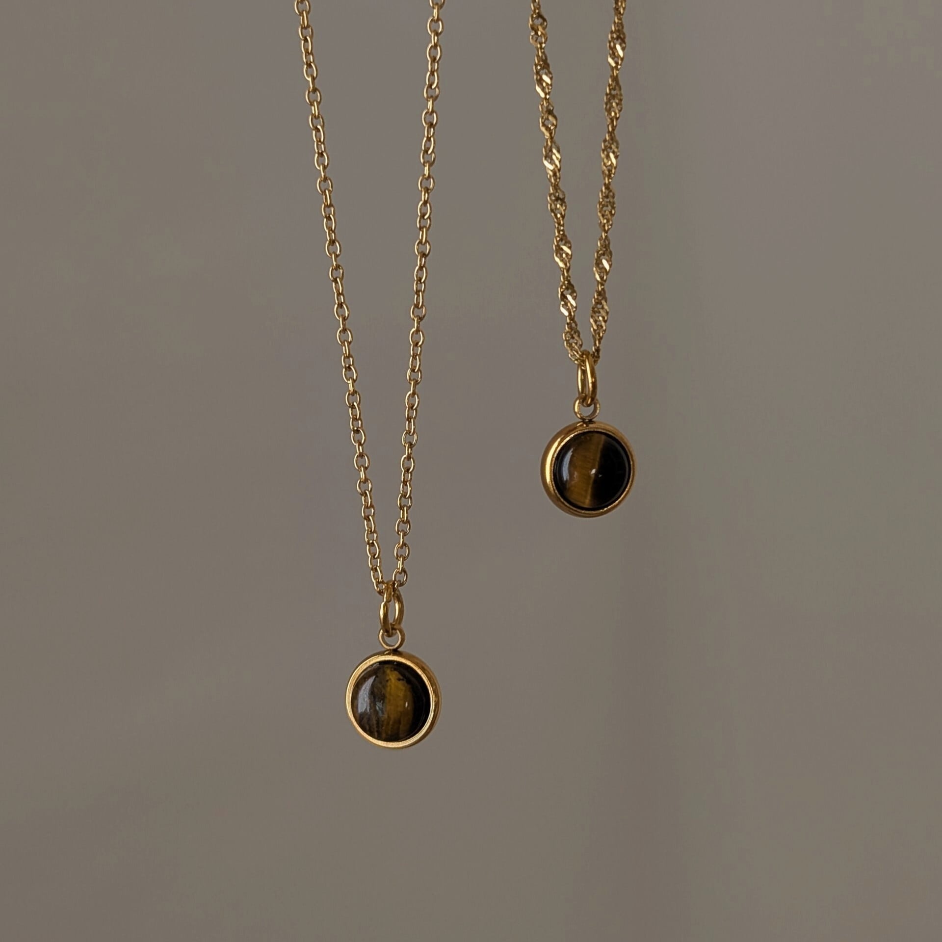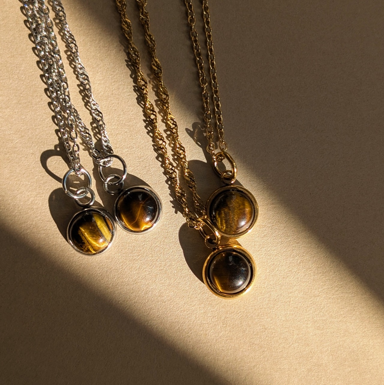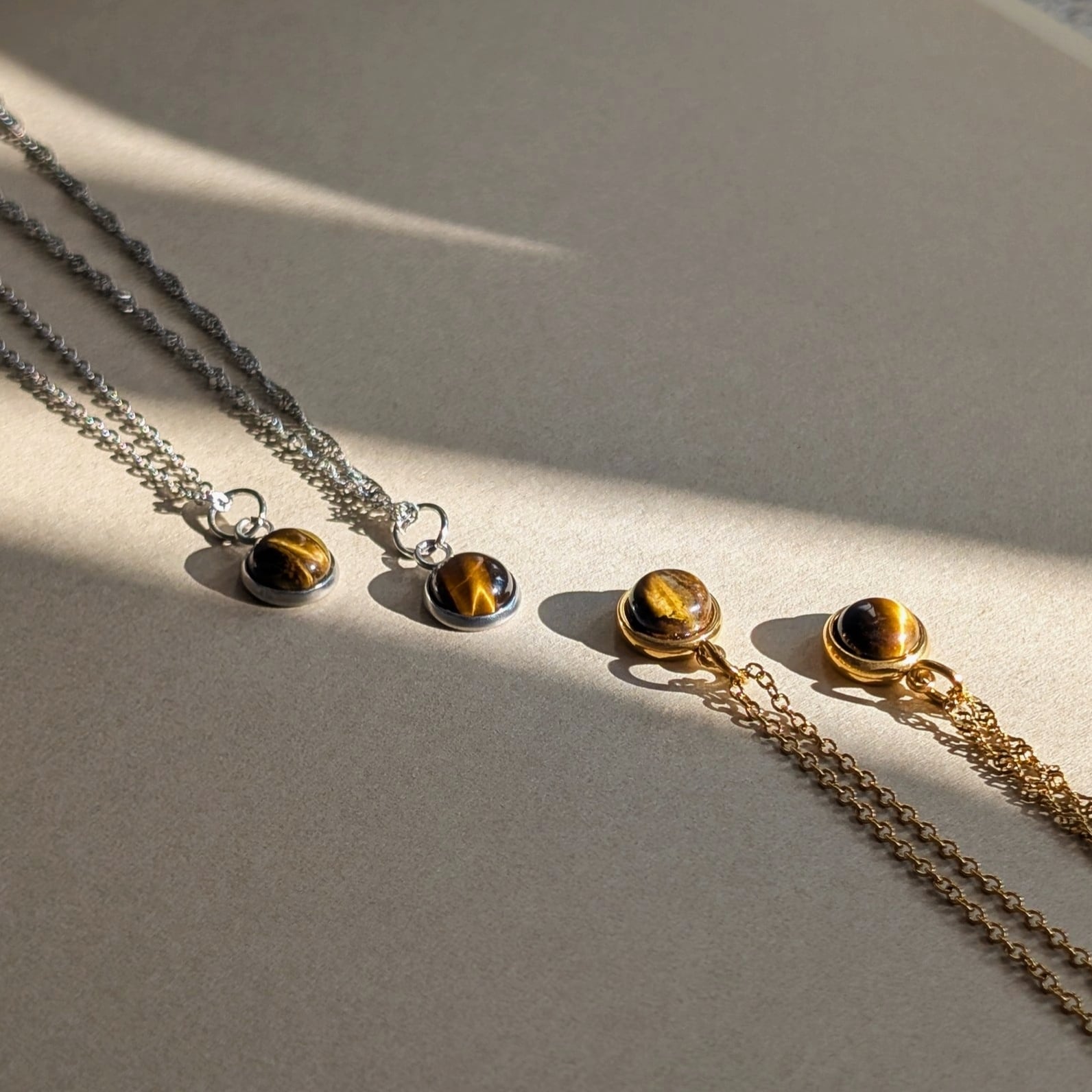 グレードA。半円ドームのタイガーアイを使用したネックレスです。