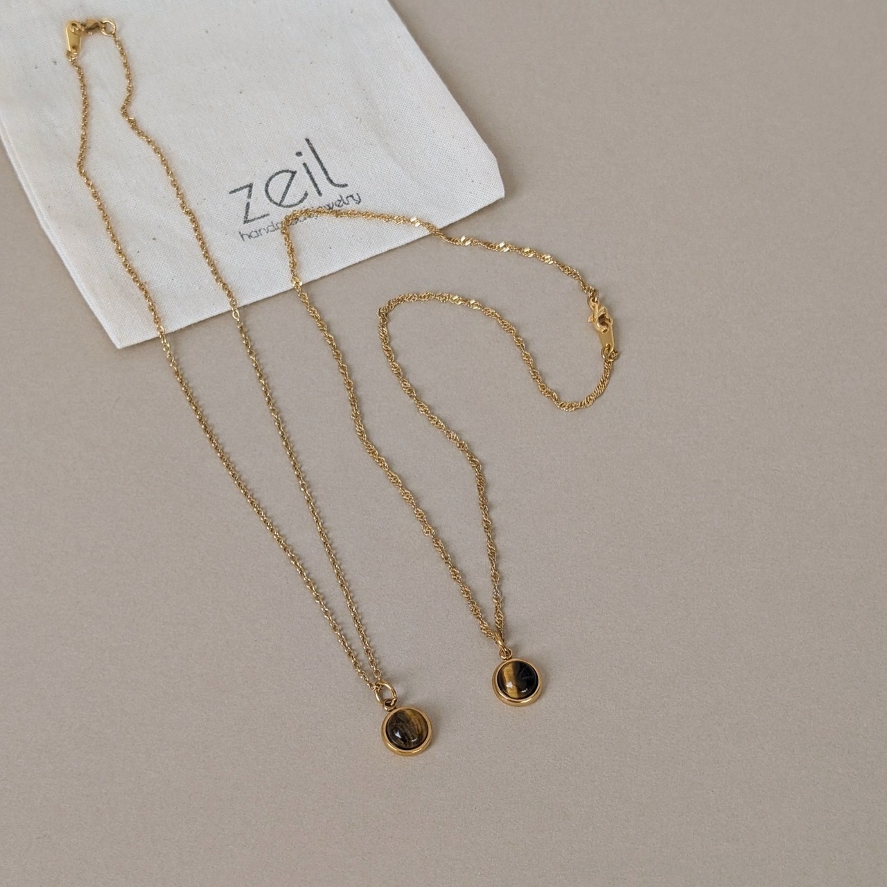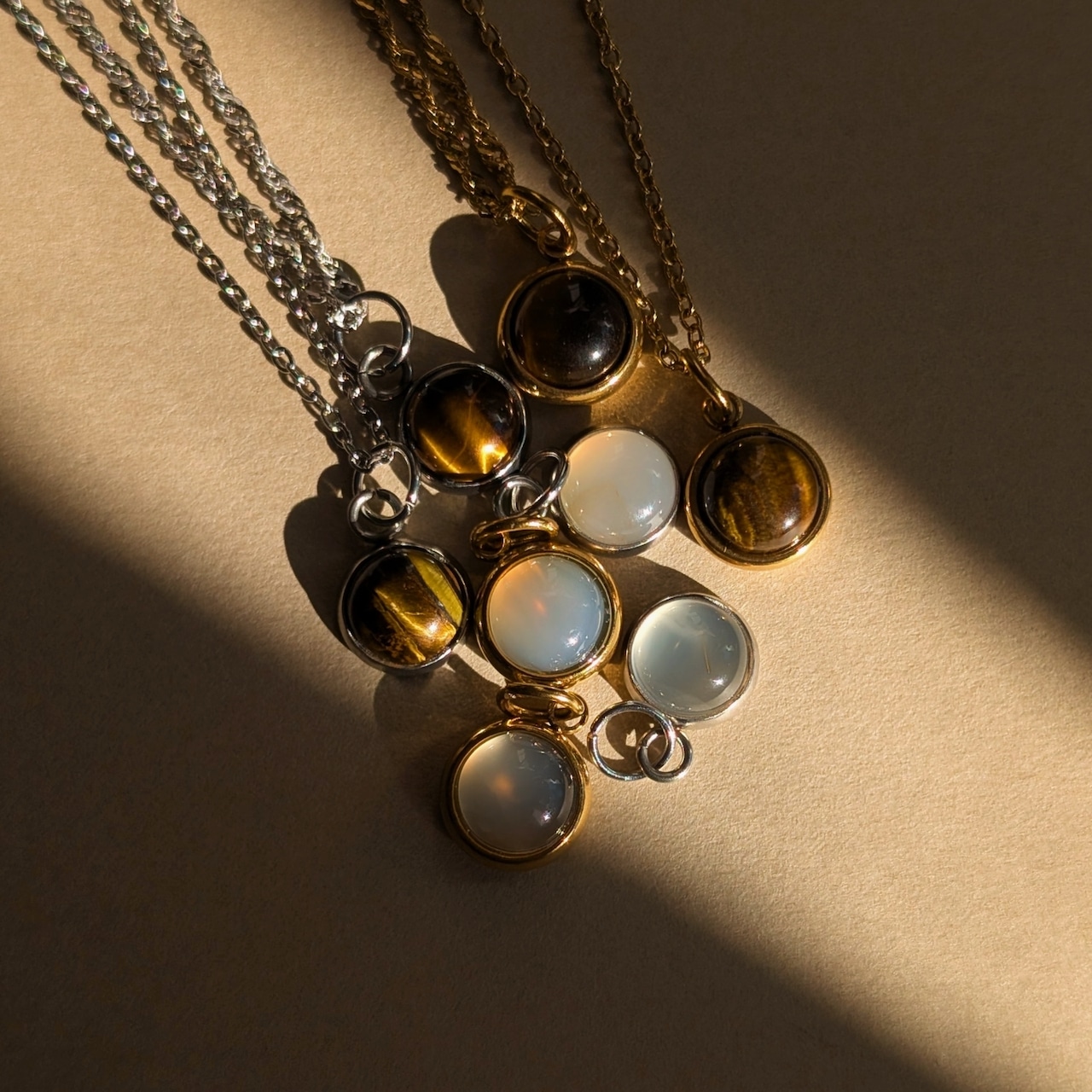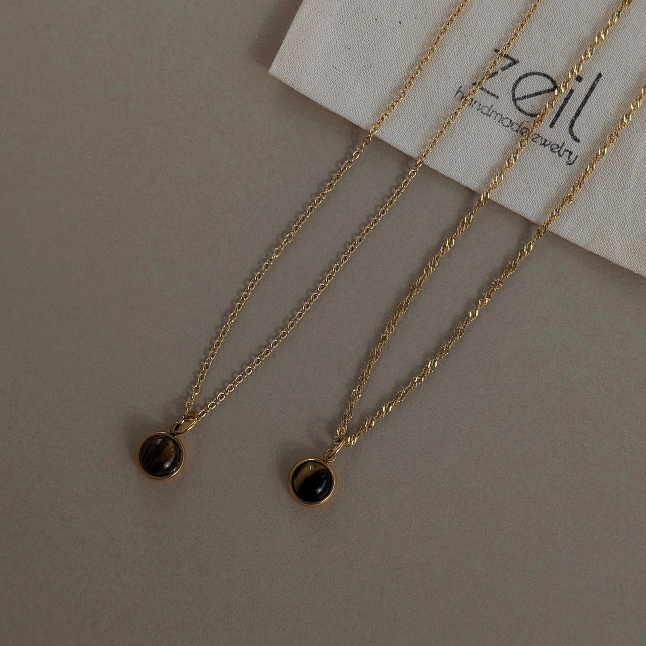 グレードA。半円ドームのタイガーアイを使用したネックレスです。
