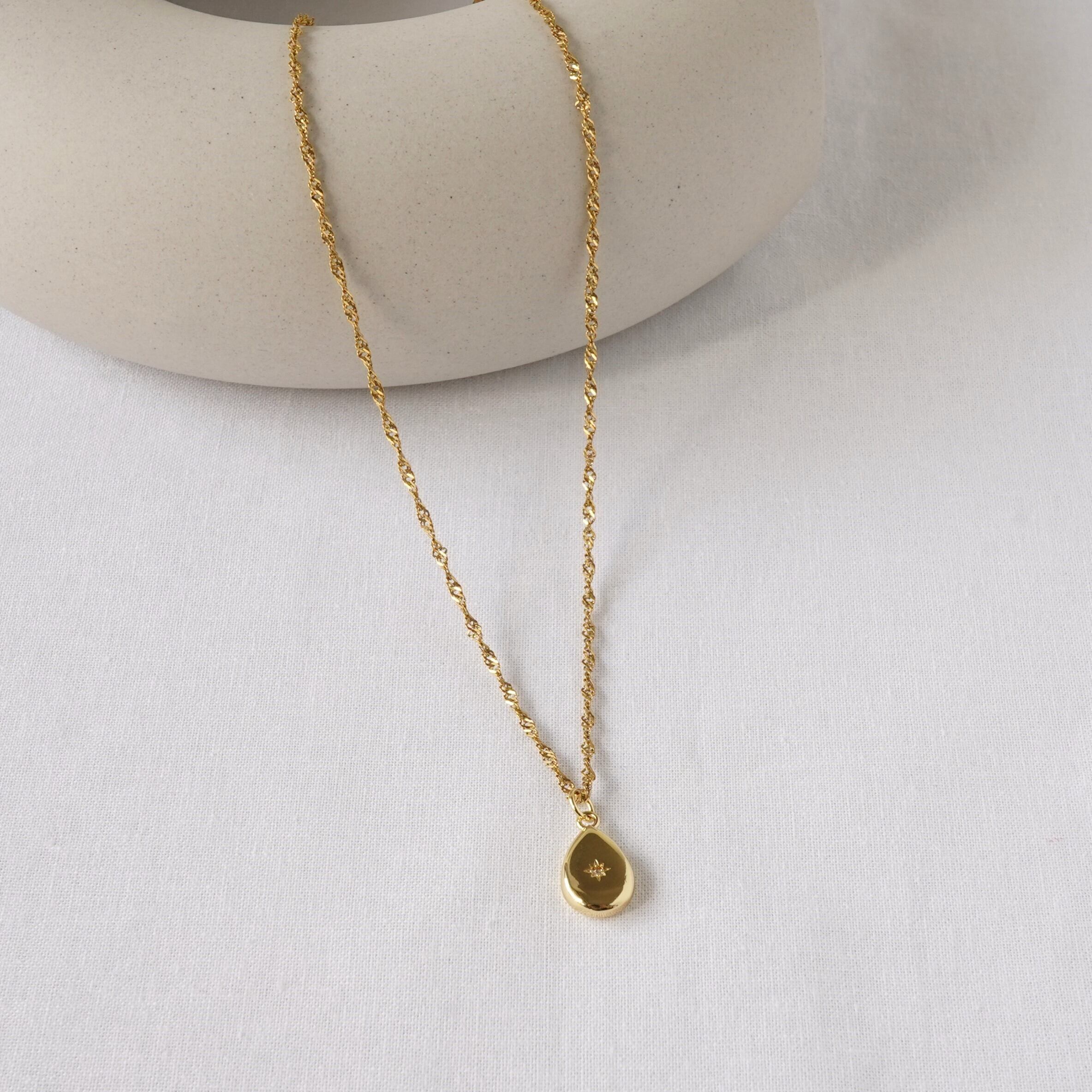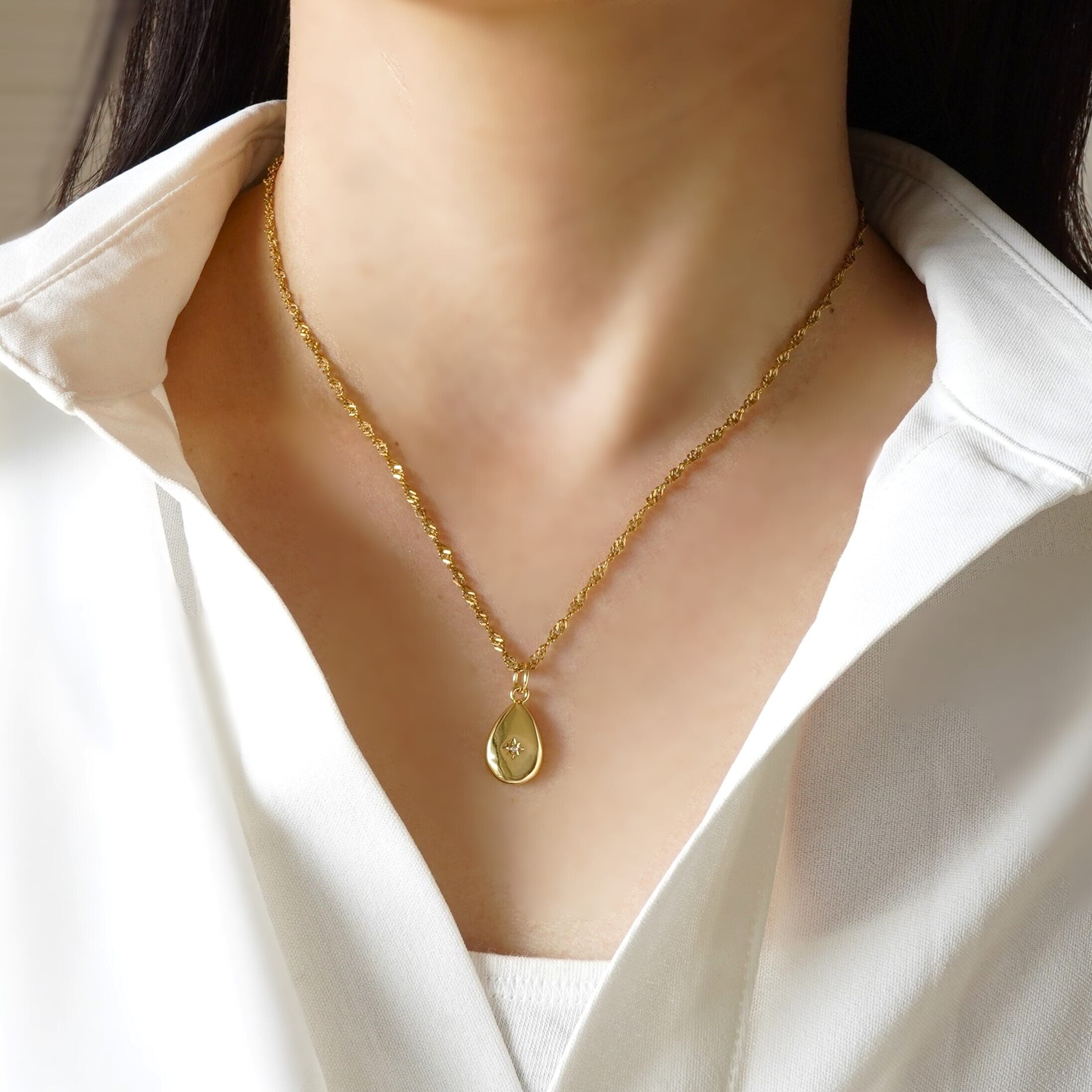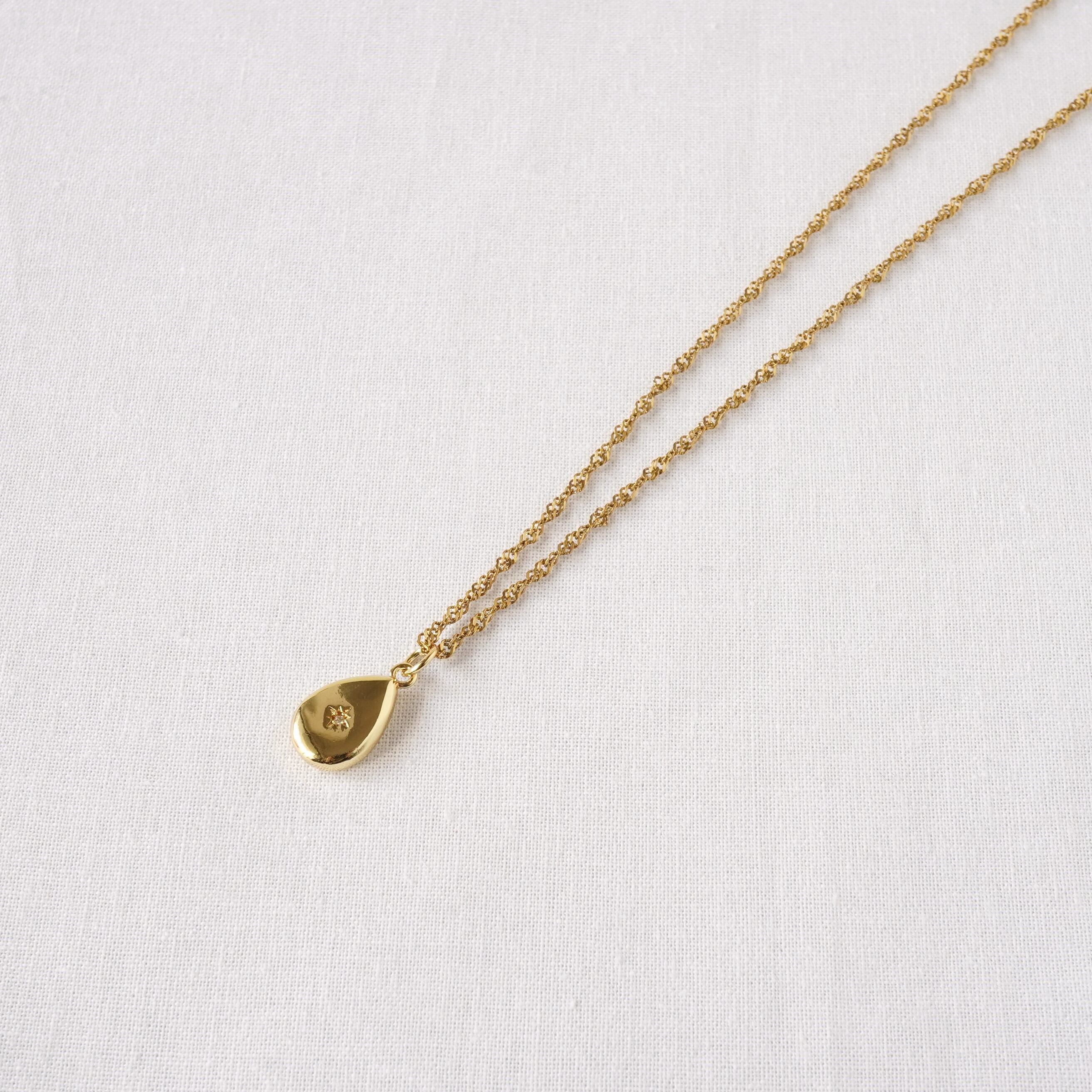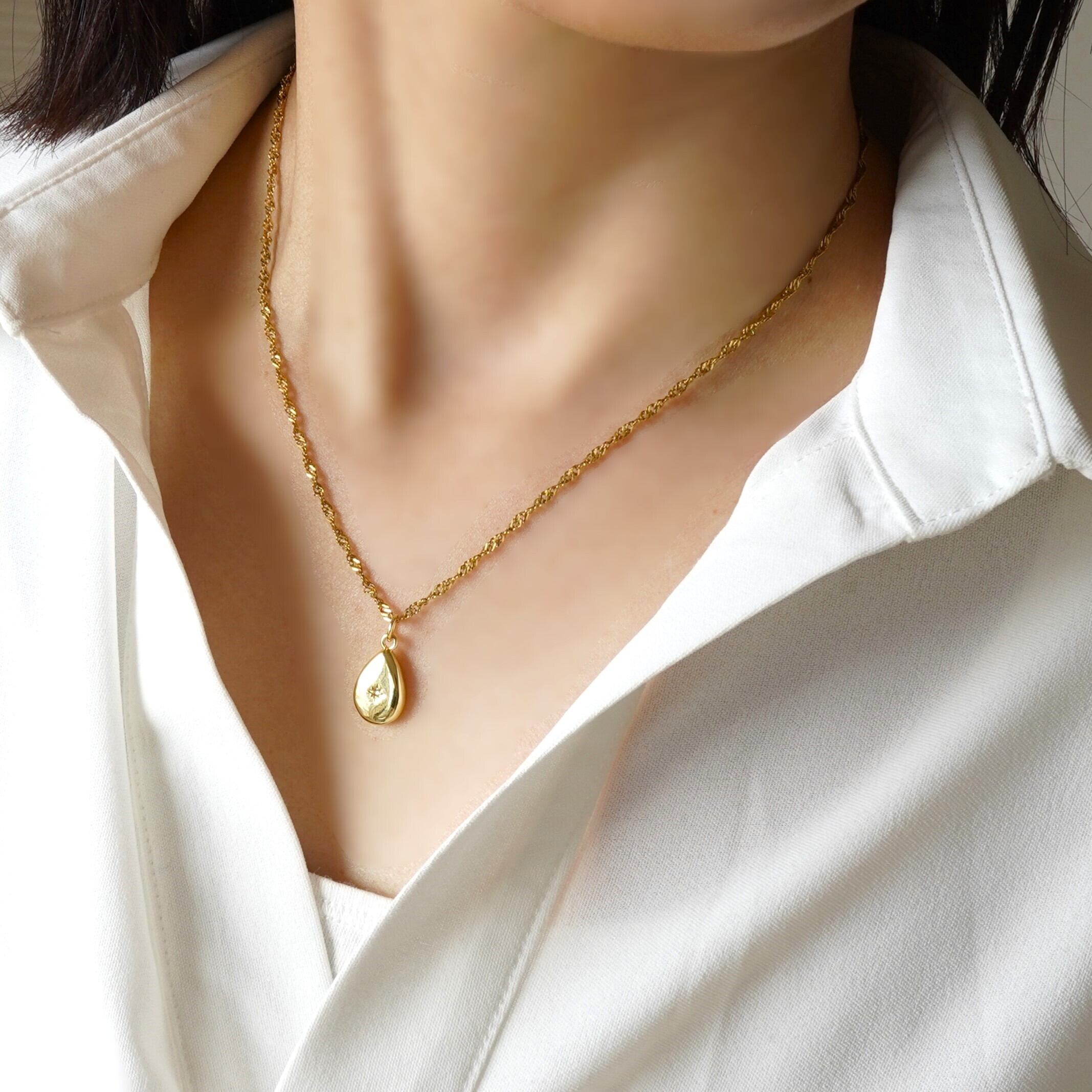 ワンポイントのキュービックジルコニアにつるりとしたフォルムに厚みもあり、高級感のあるペンダントネックレスです。