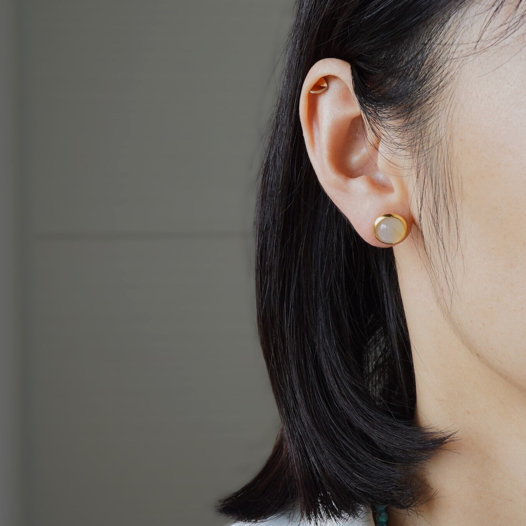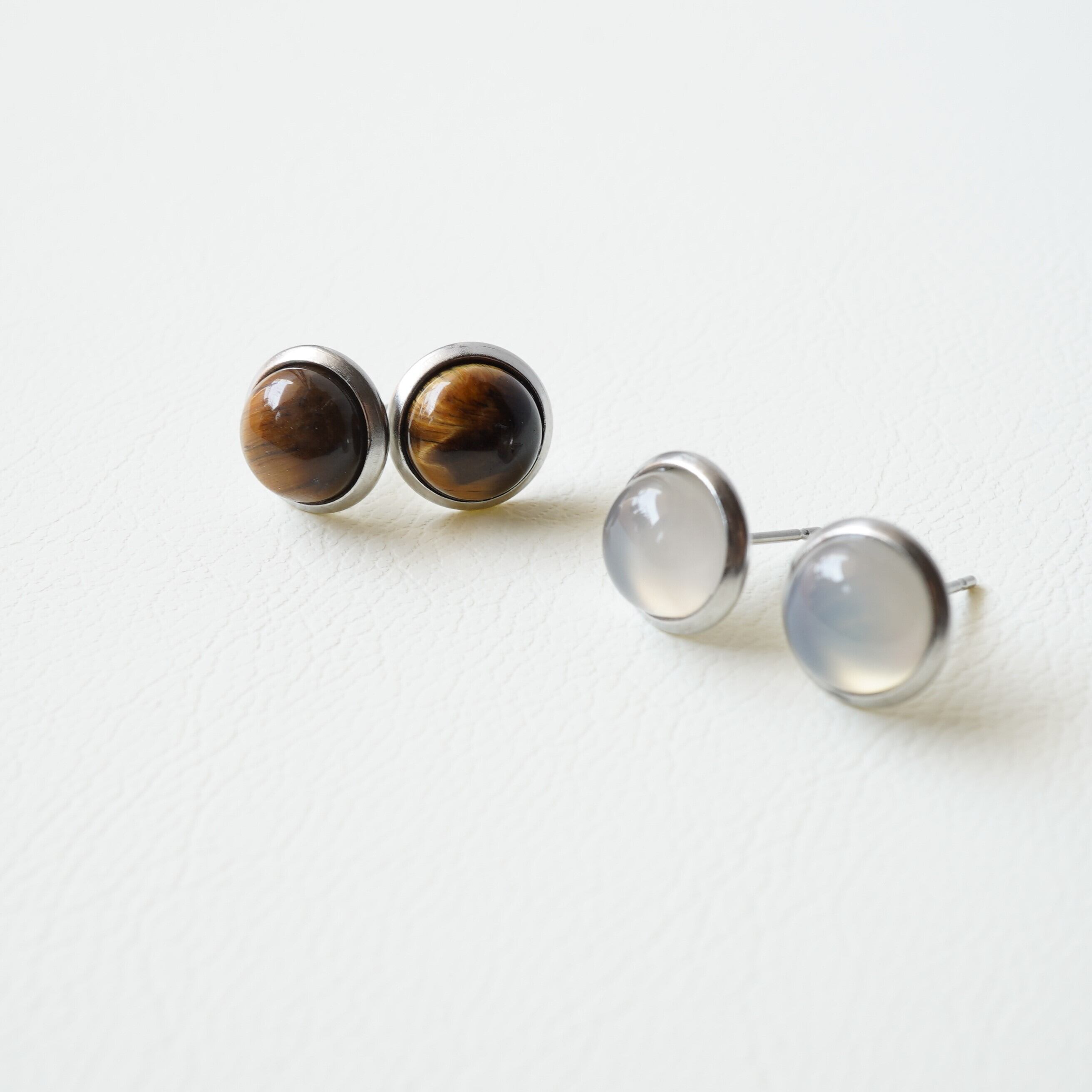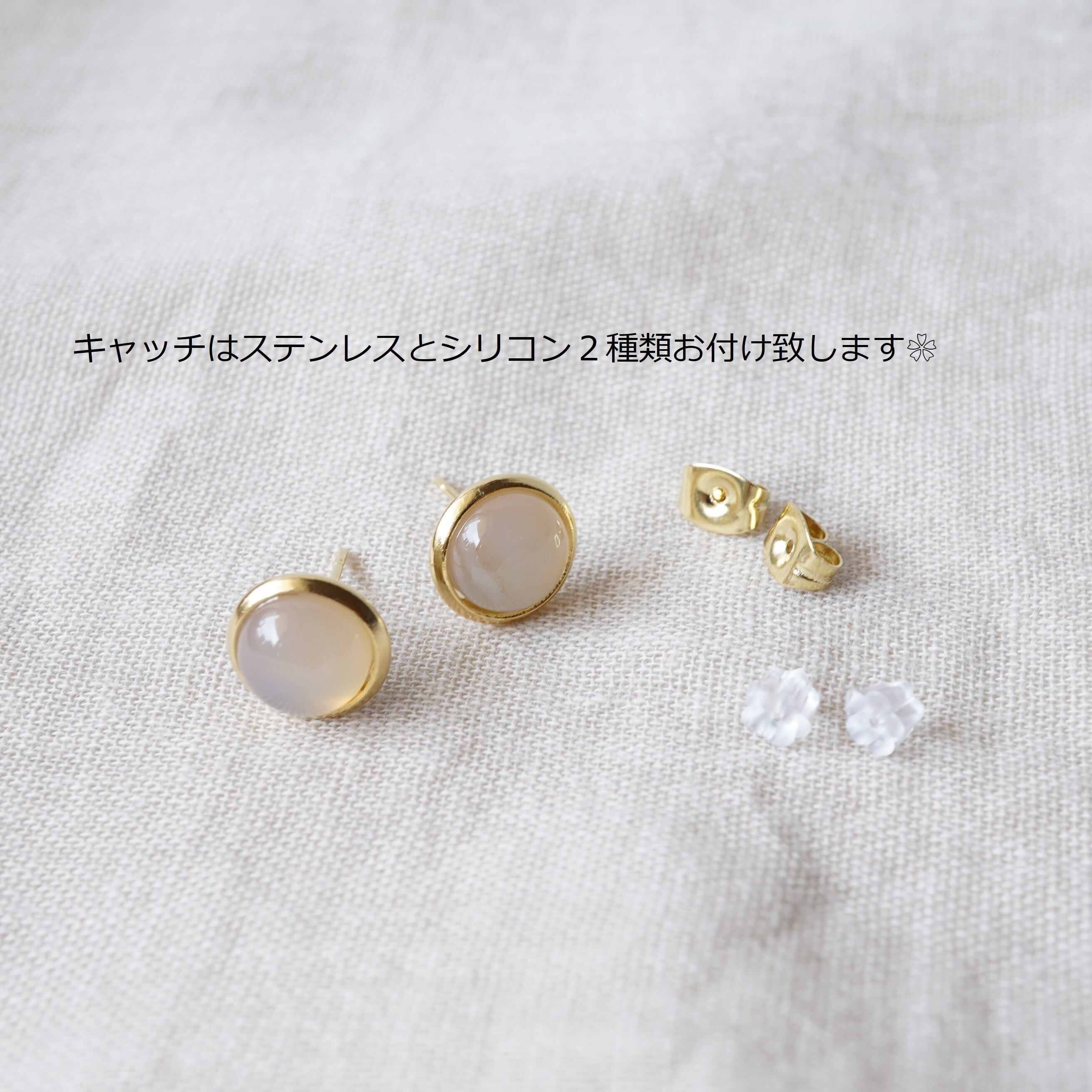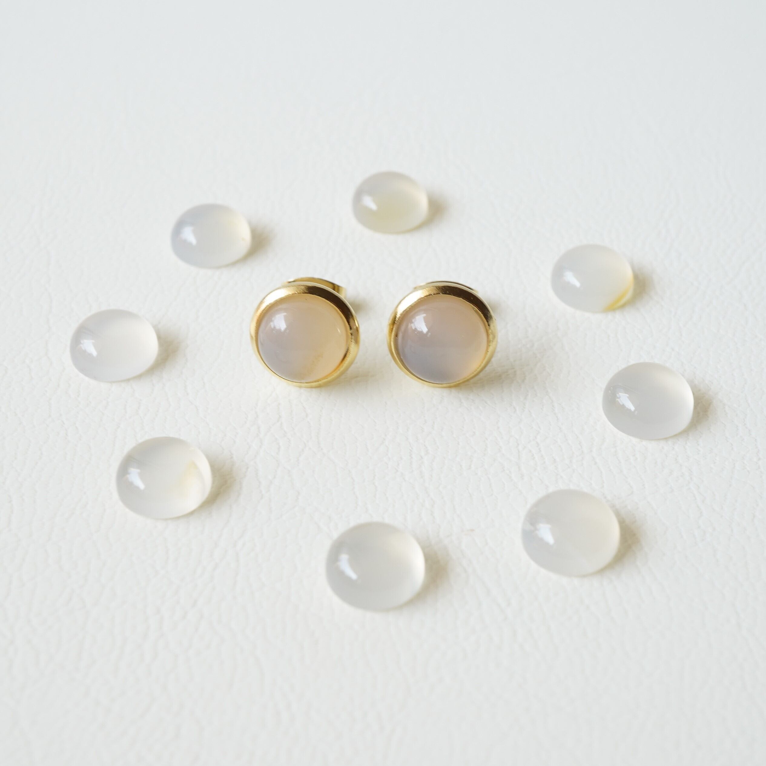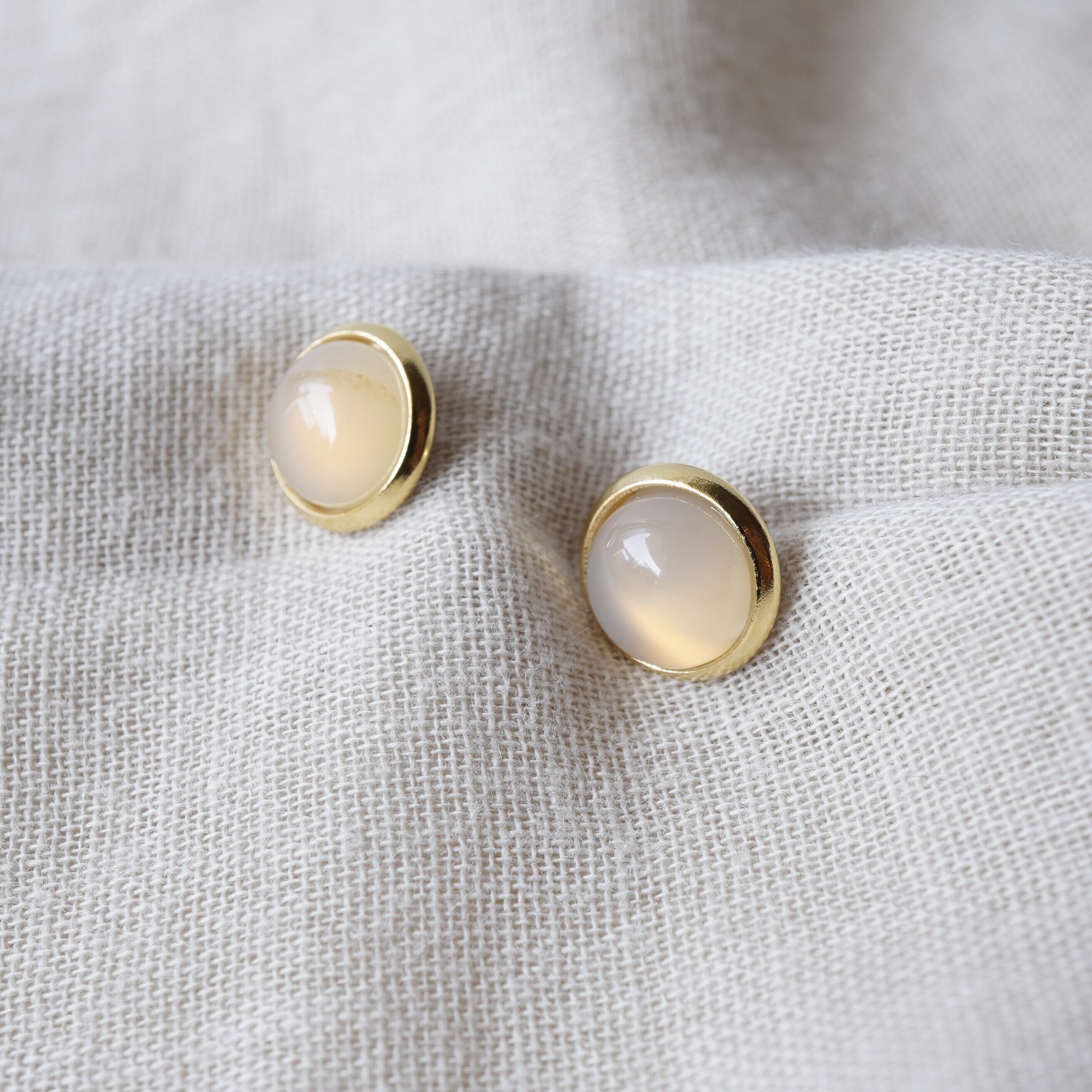 天然ホワイトアゲートを使用したシンプルなスタッドピアスです。