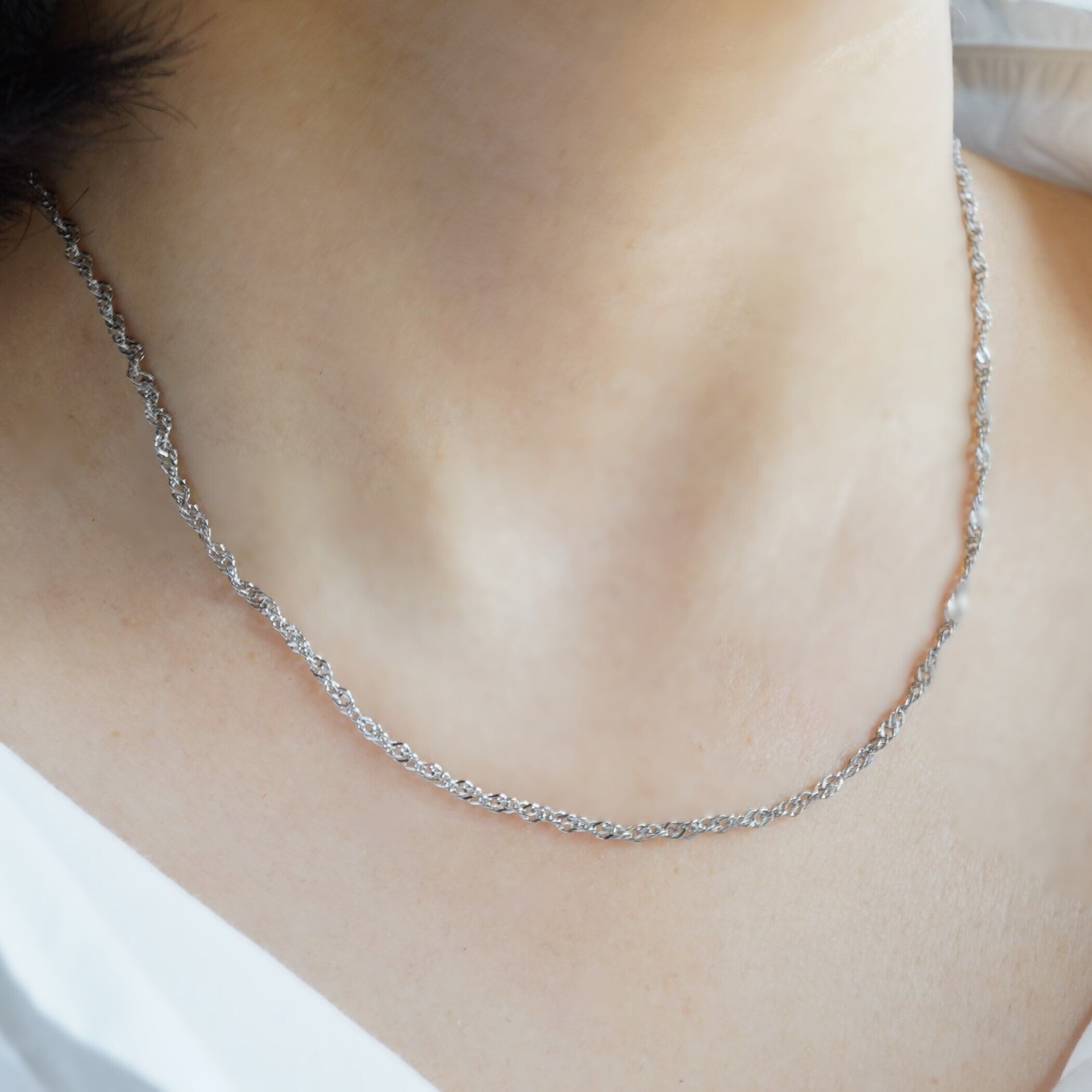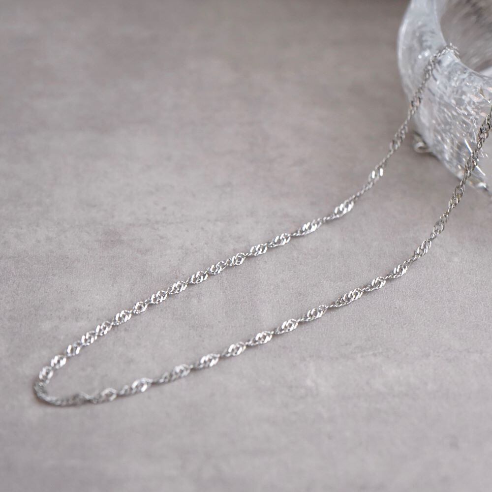 #水の波 #サージカルステンレス #金属アレルギー対応 #チェーンネックレス #シンガポールチェーン #大人カジュアル #大人きれいめ #上品 #シンプル #シルバーネックレス #キラキラ #つけっぱななしOK #スクリューチェーン
