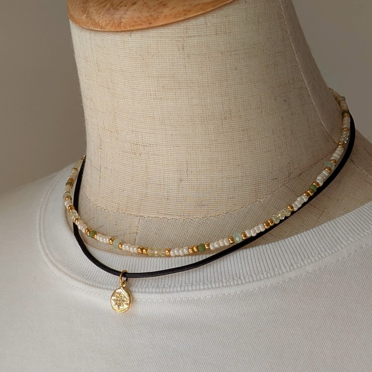 コインネックレスやパールネックレスとの重ね付けがおすすめです。