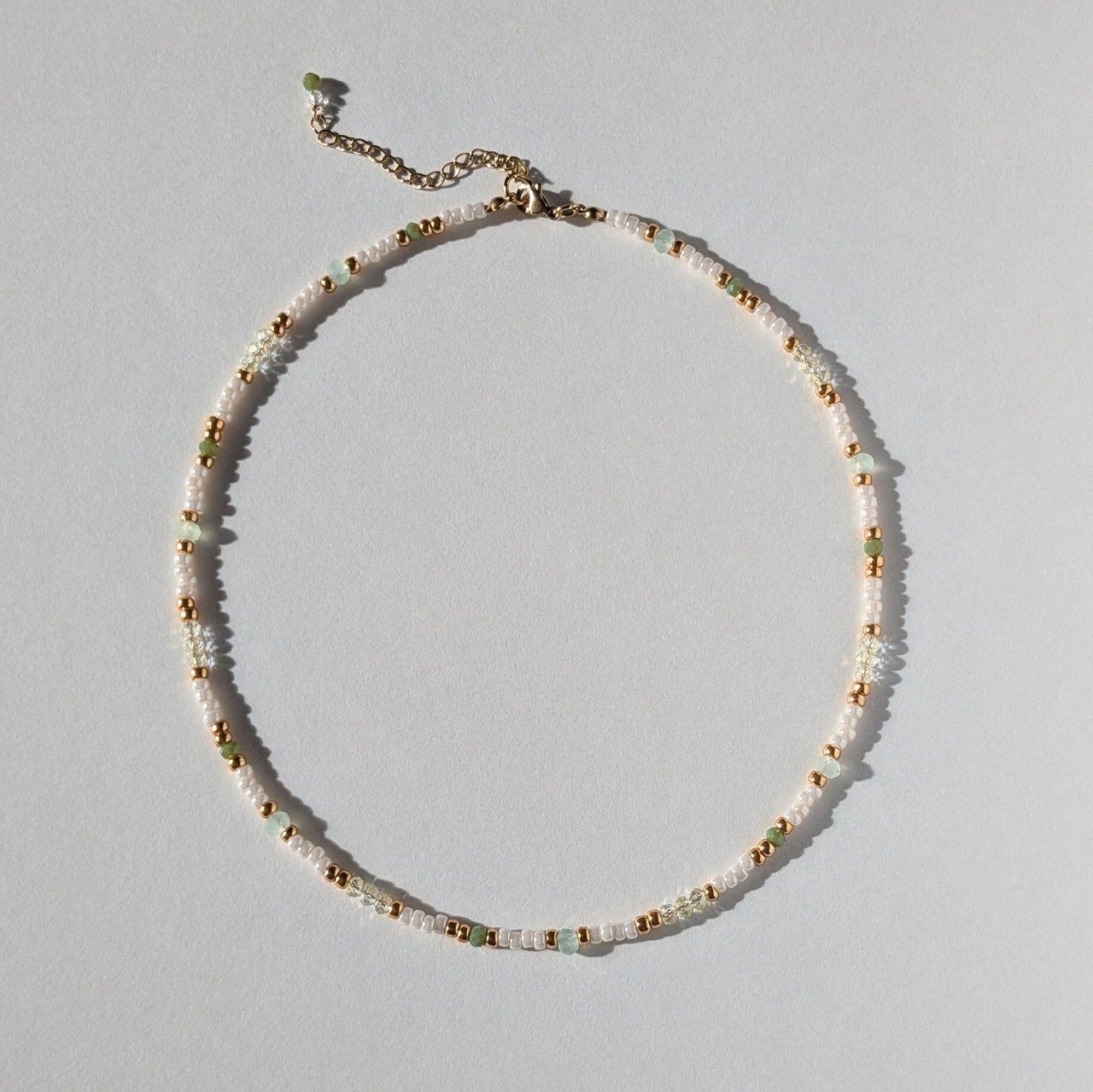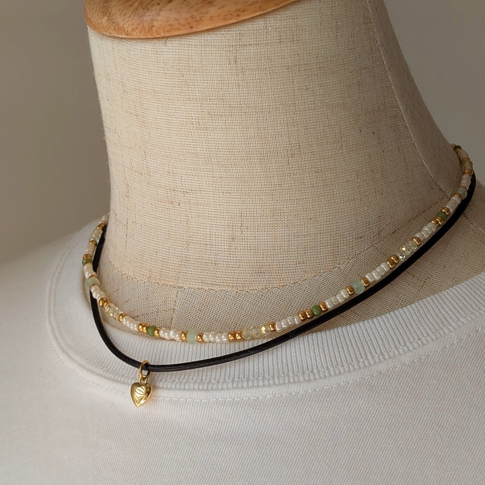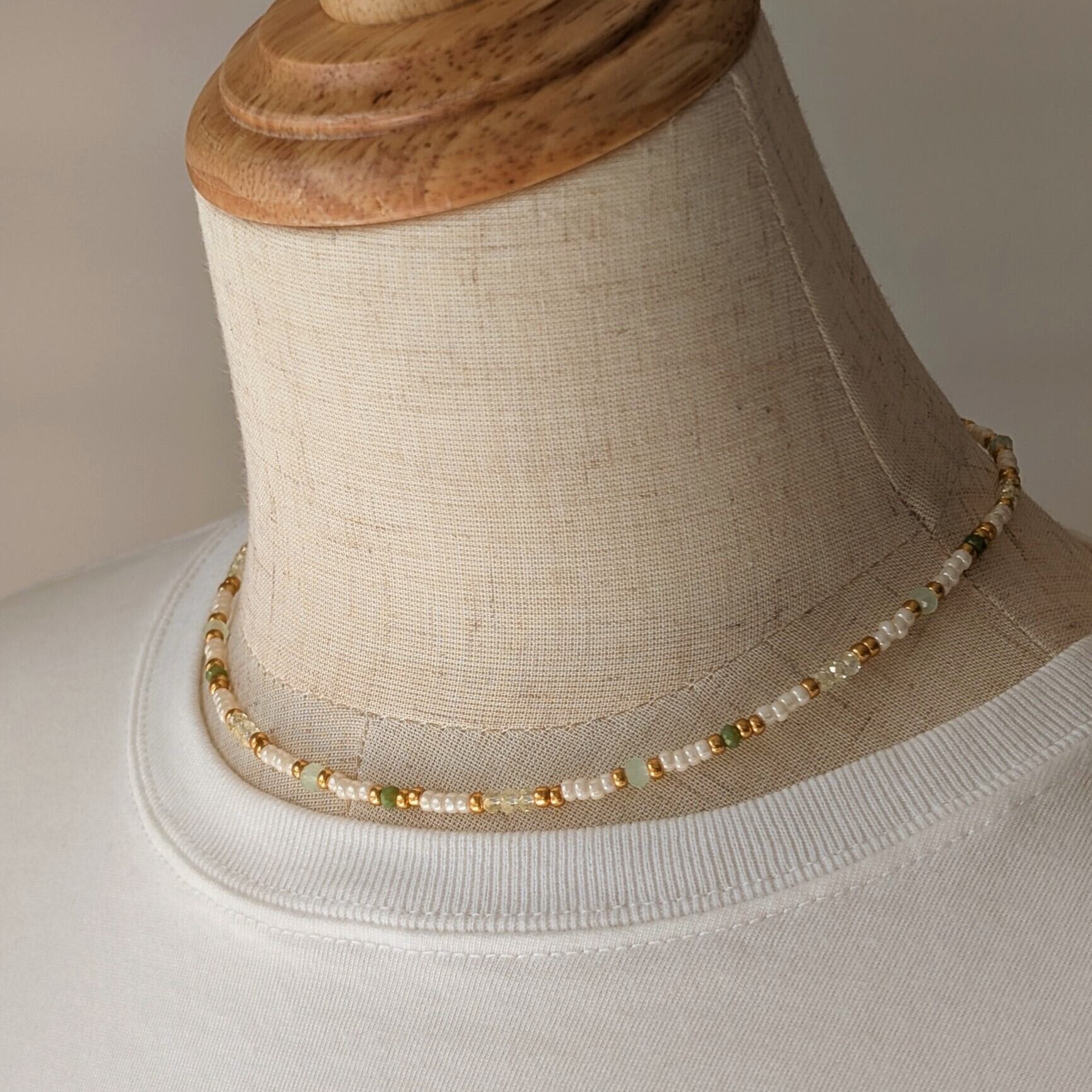 【再販します】ホワイト×グリーンネックレス ステンレス製