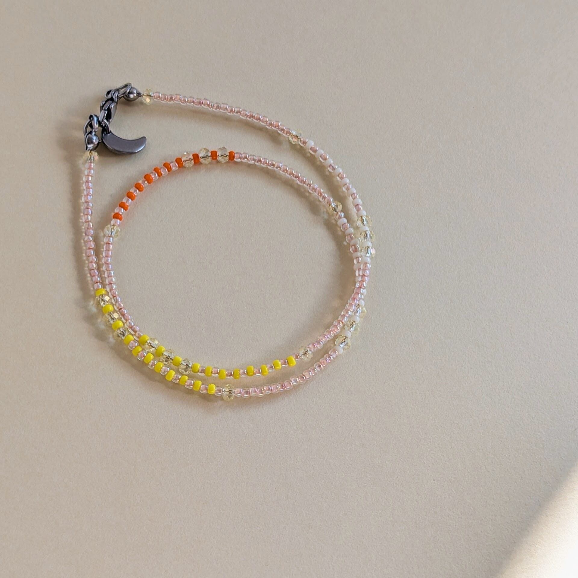 細めで大人っぽく着けて頂けます。月のチャームがアクセント。後ろ姿も可愛いです。