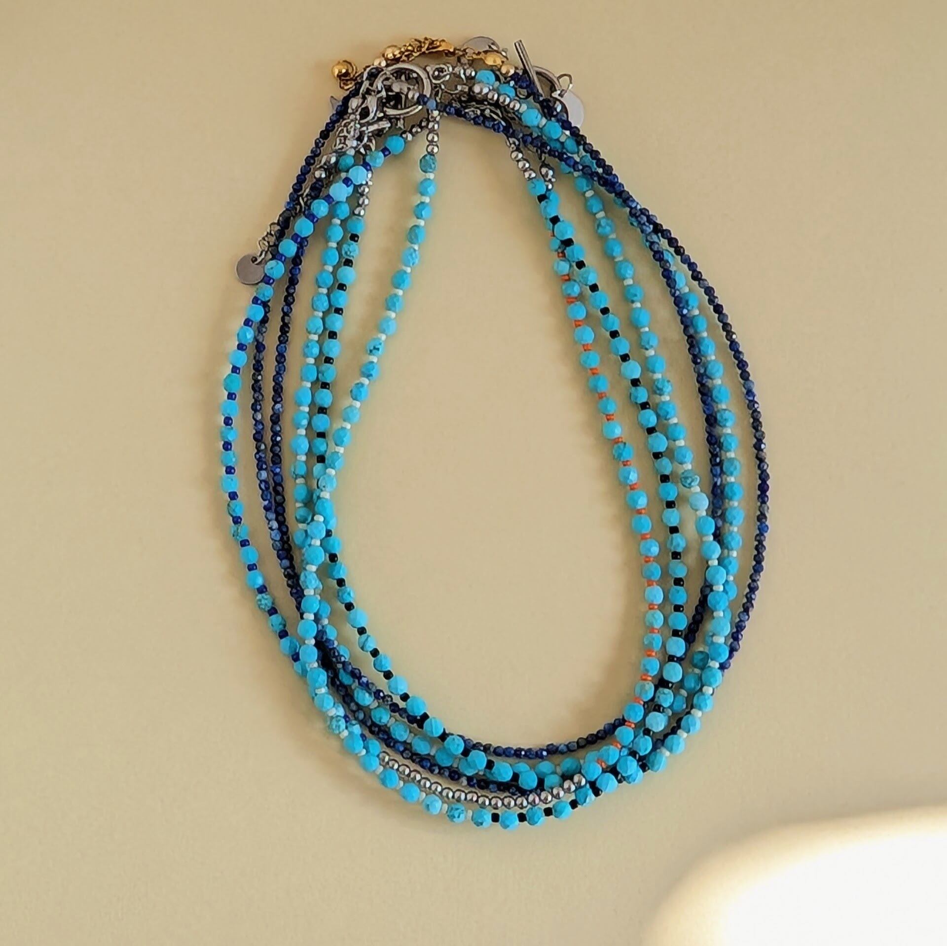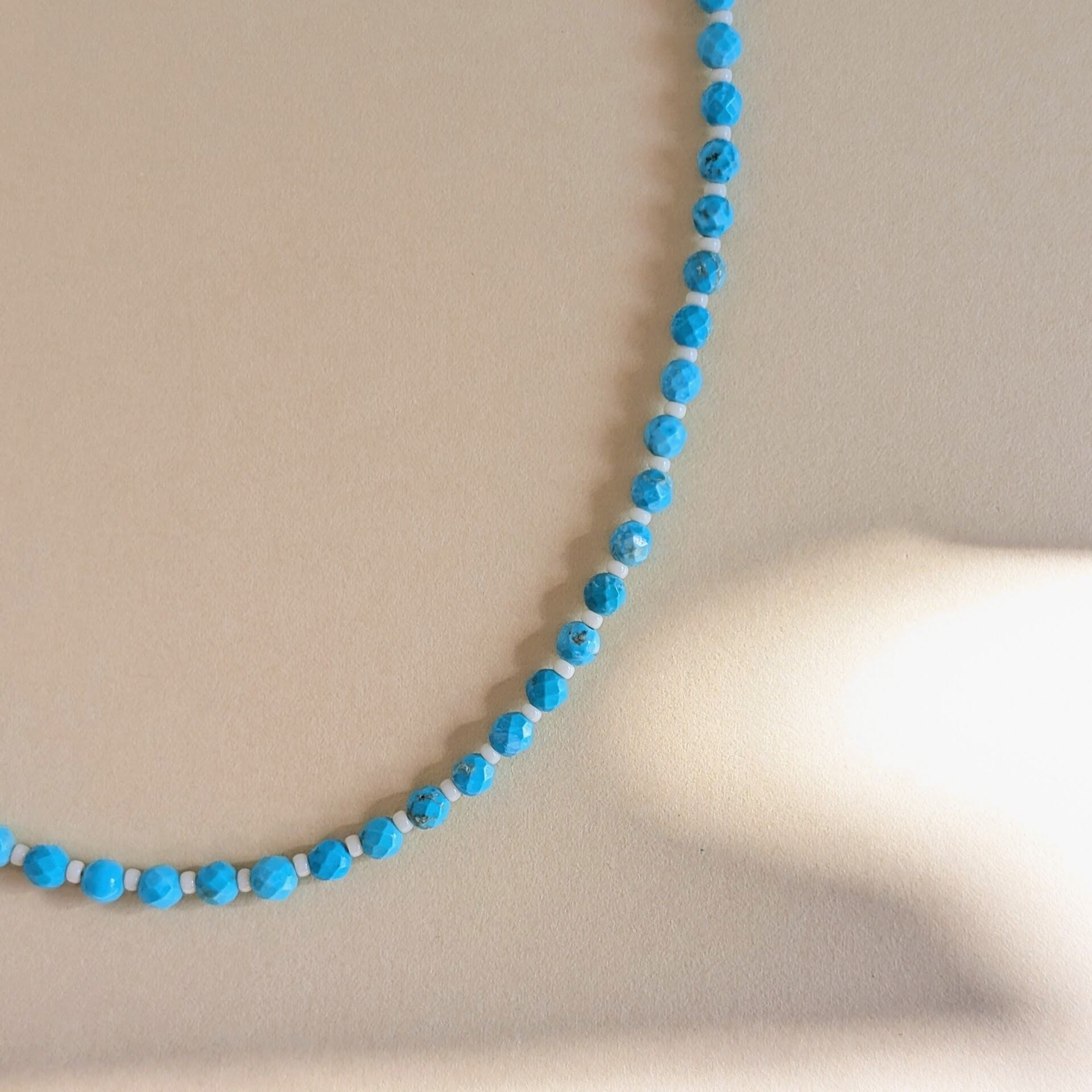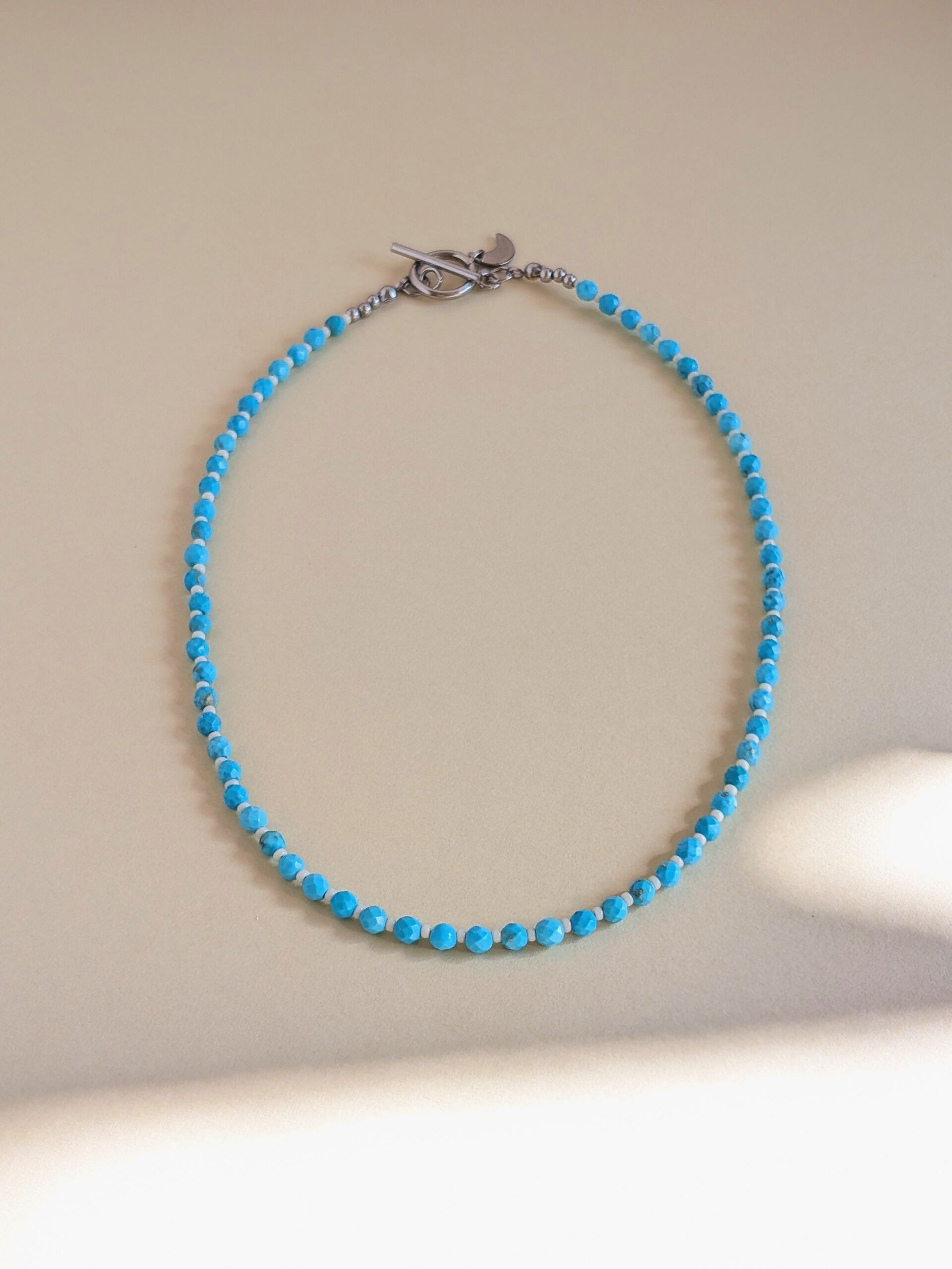 ターコイズにホワイトのガラスビーズを加えたネックレスです。