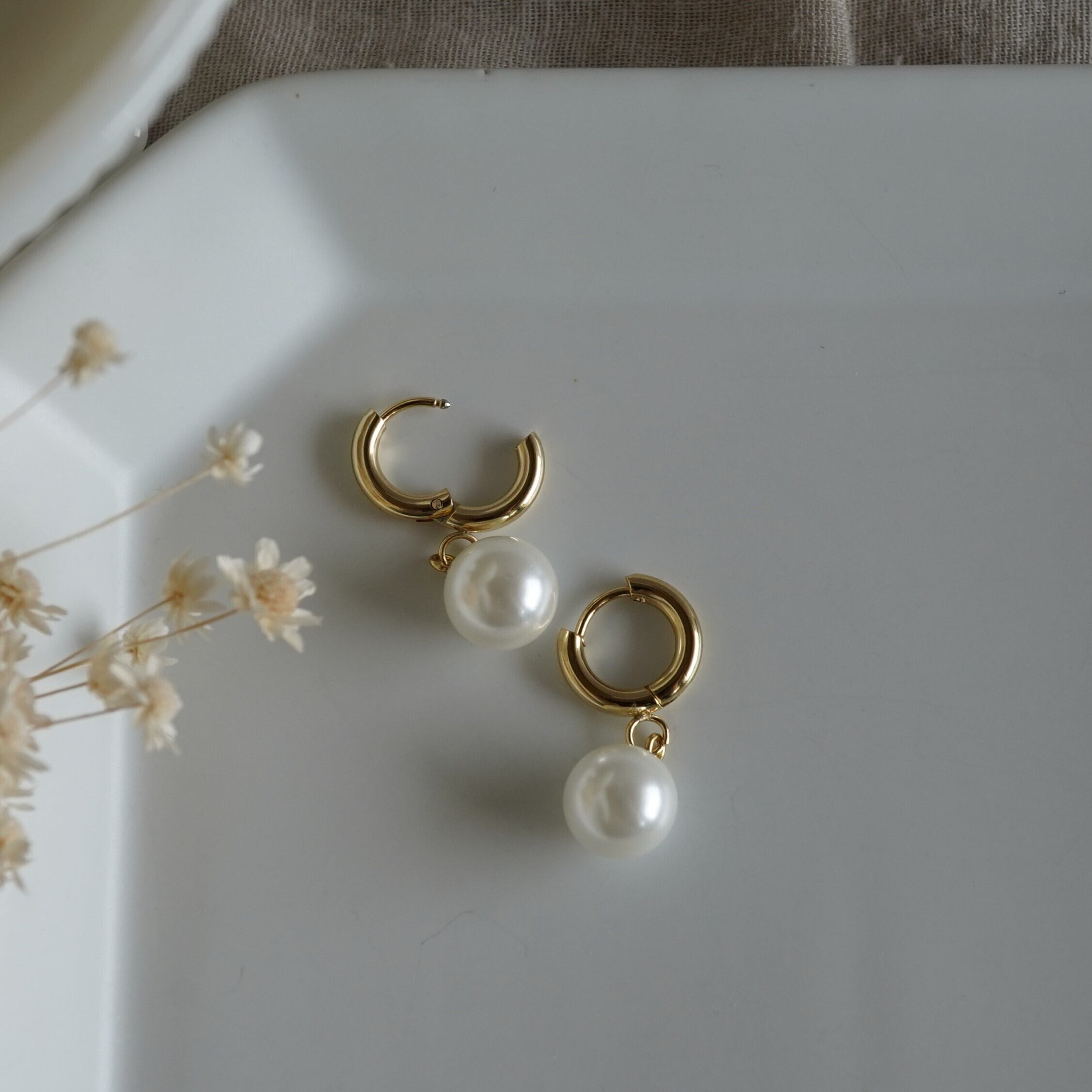 #ステンレスピアス #ゴールドピアス #パールピアス #ハギーフープピアス