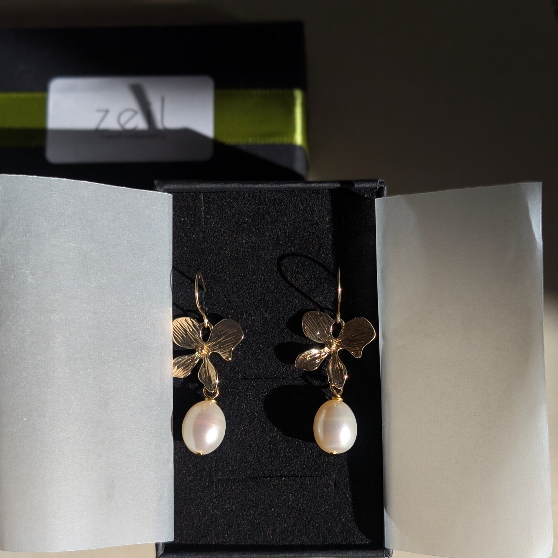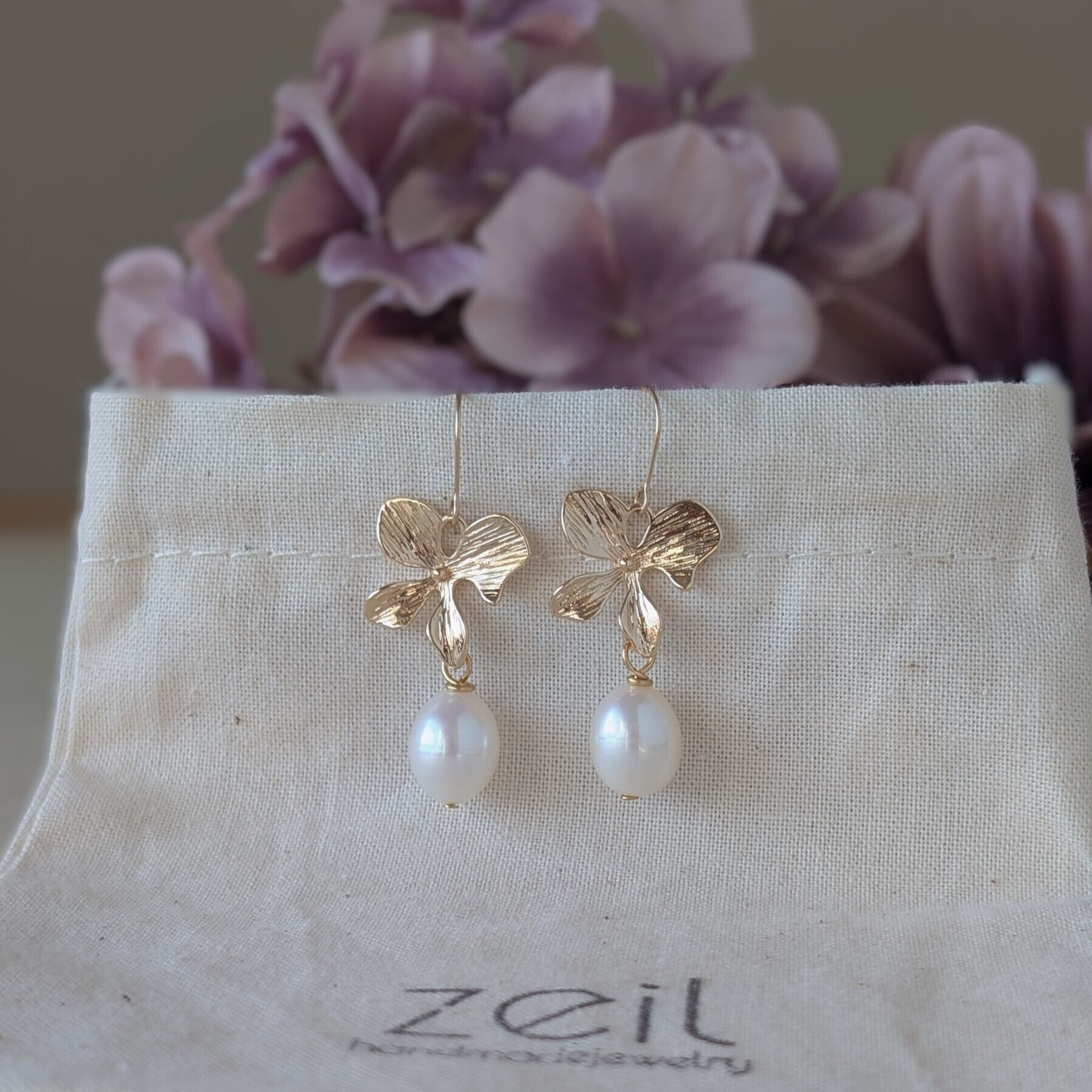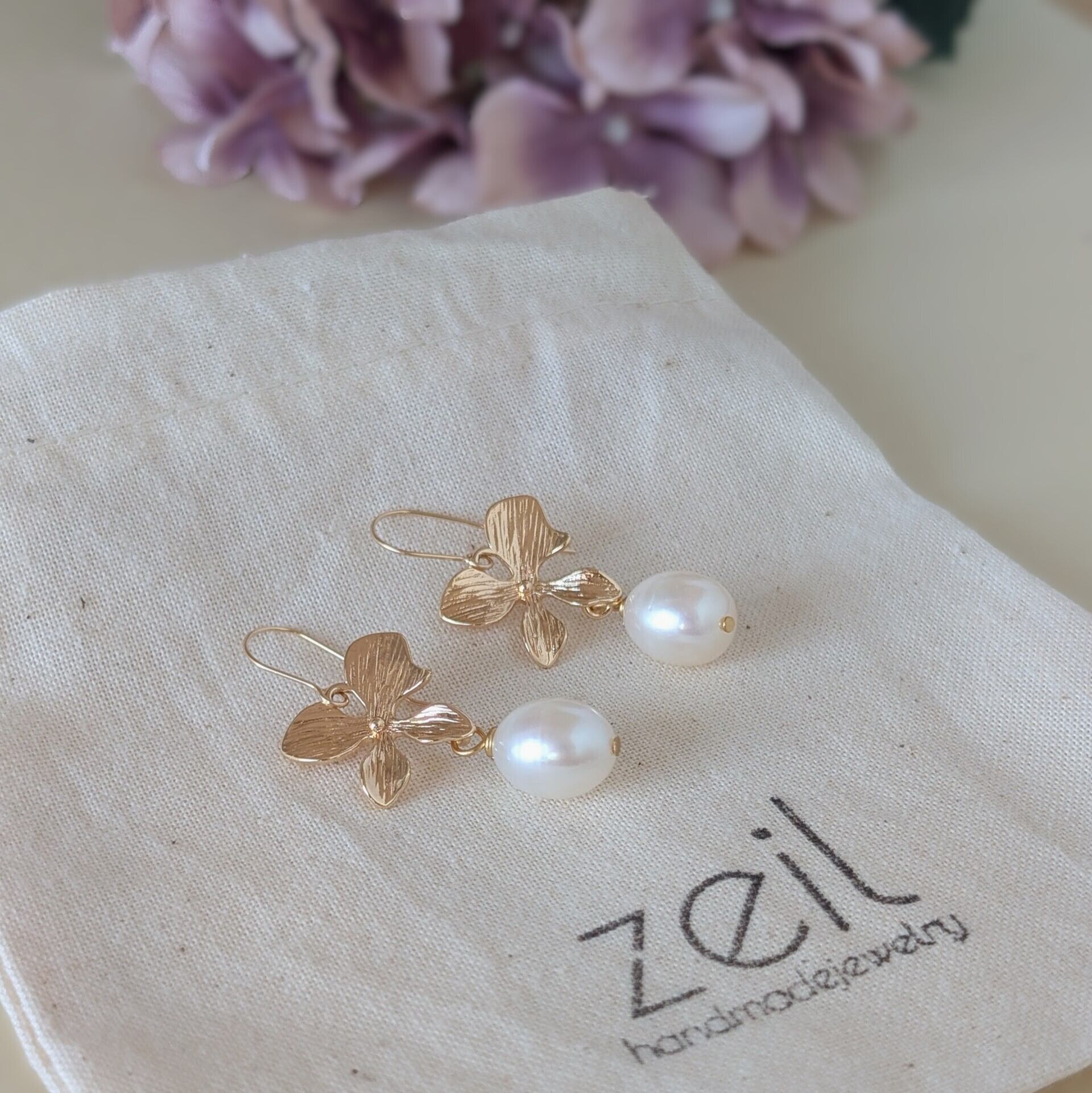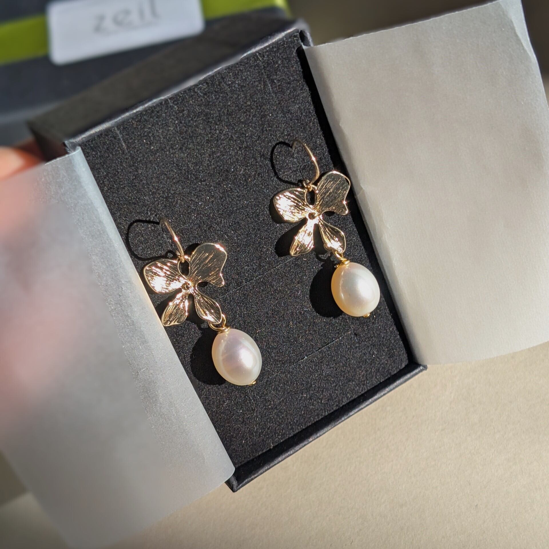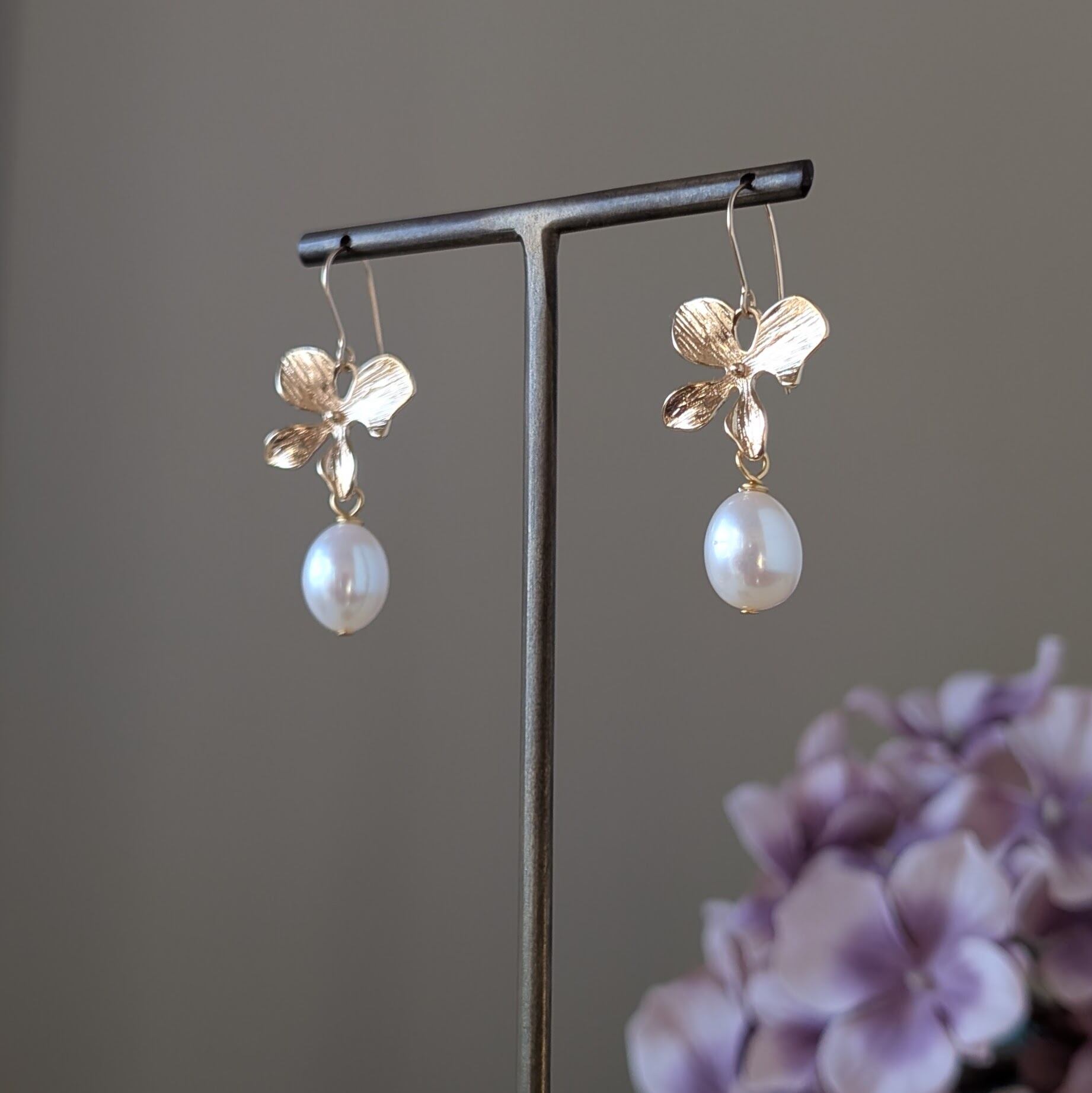 ふっくらと艶のある天然淡水パールを使用したお花のピアスです。
