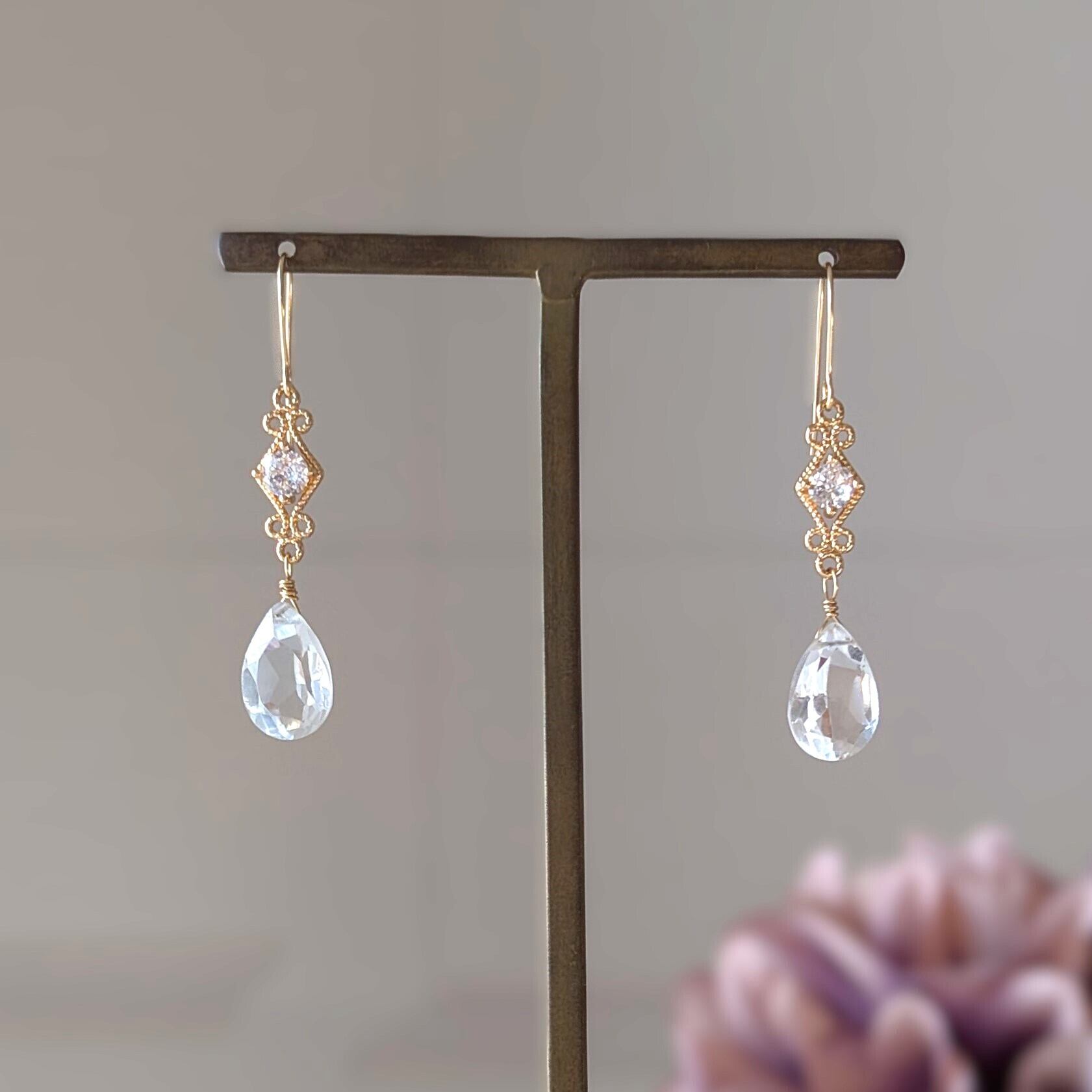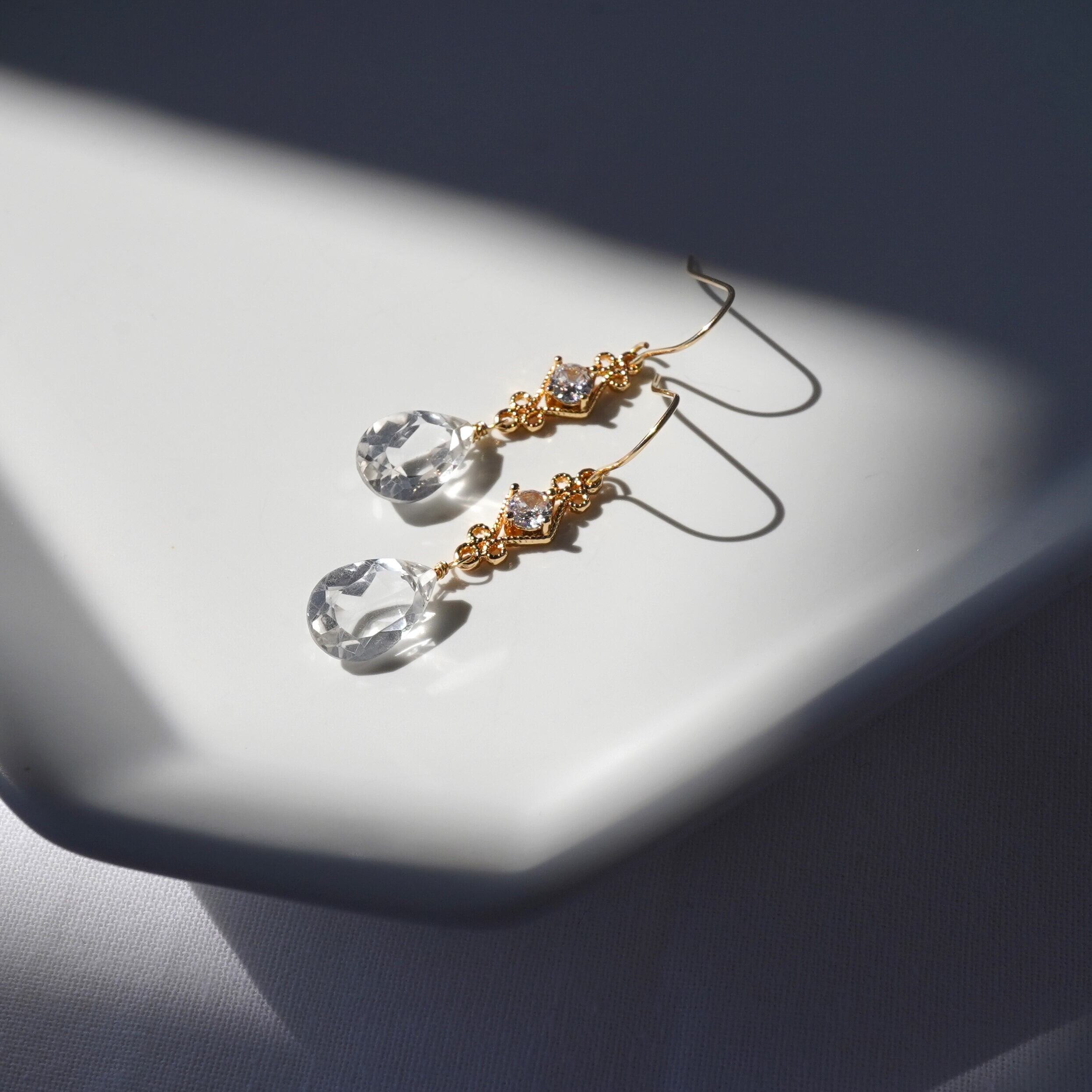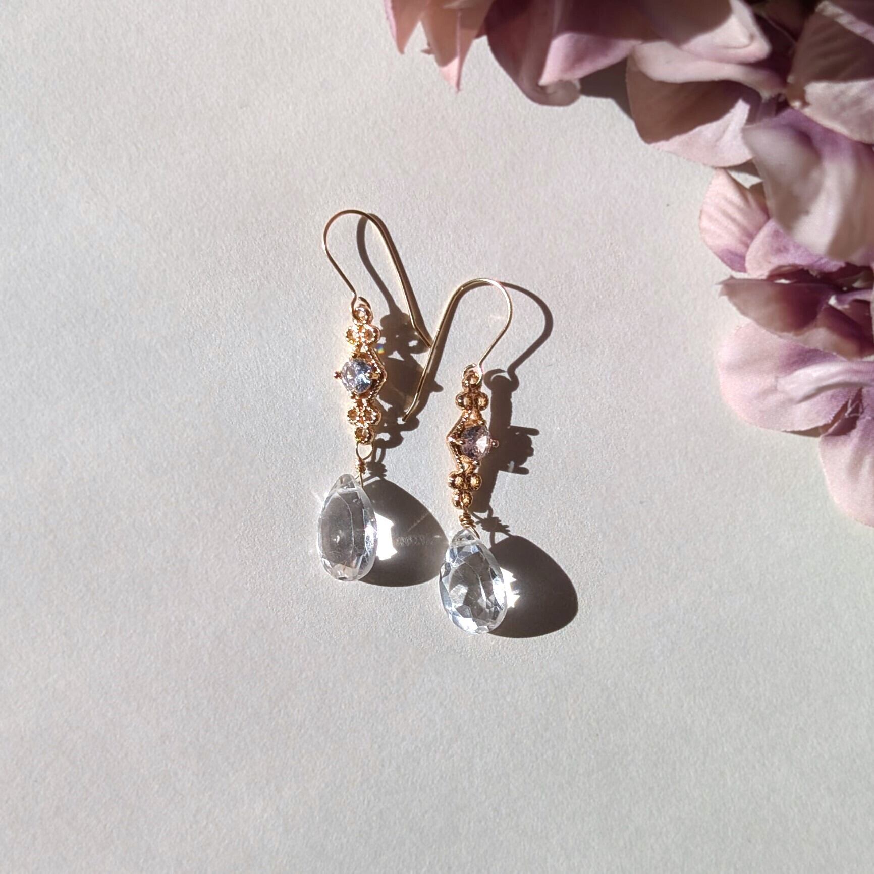 特別な日のピアス 水晶と菱形上品チャームのピアス⑱ 14kgfフックピアス