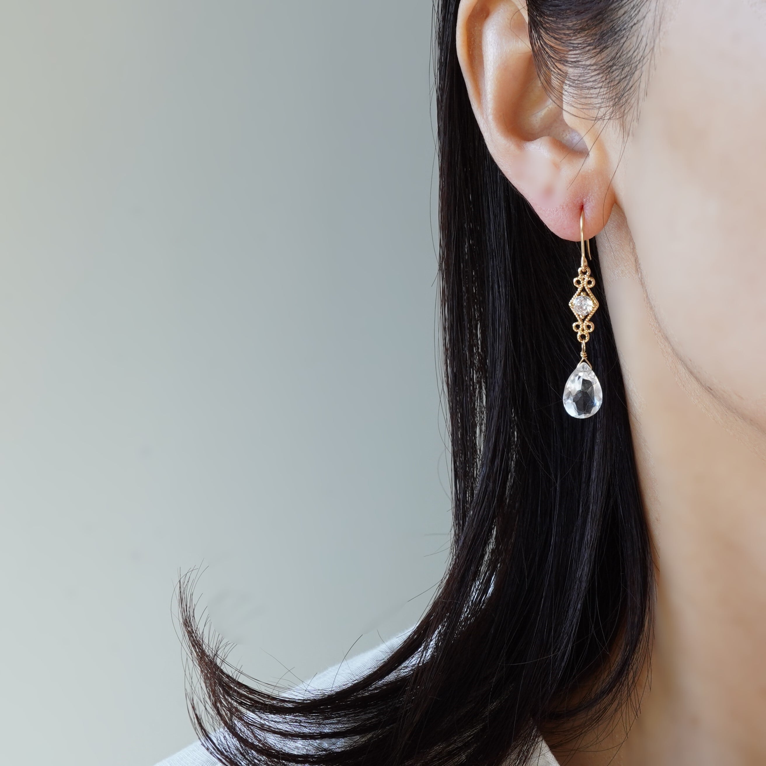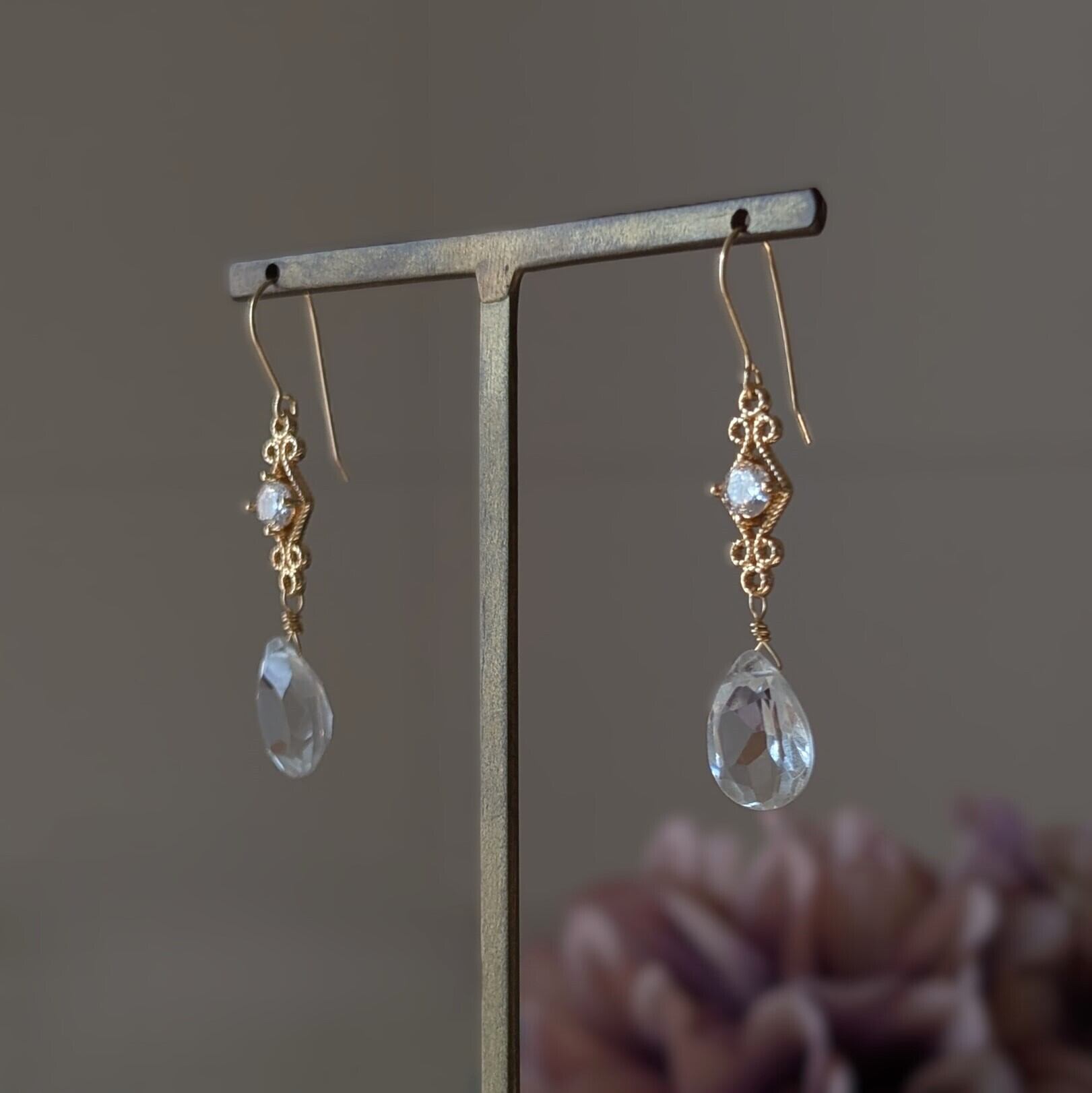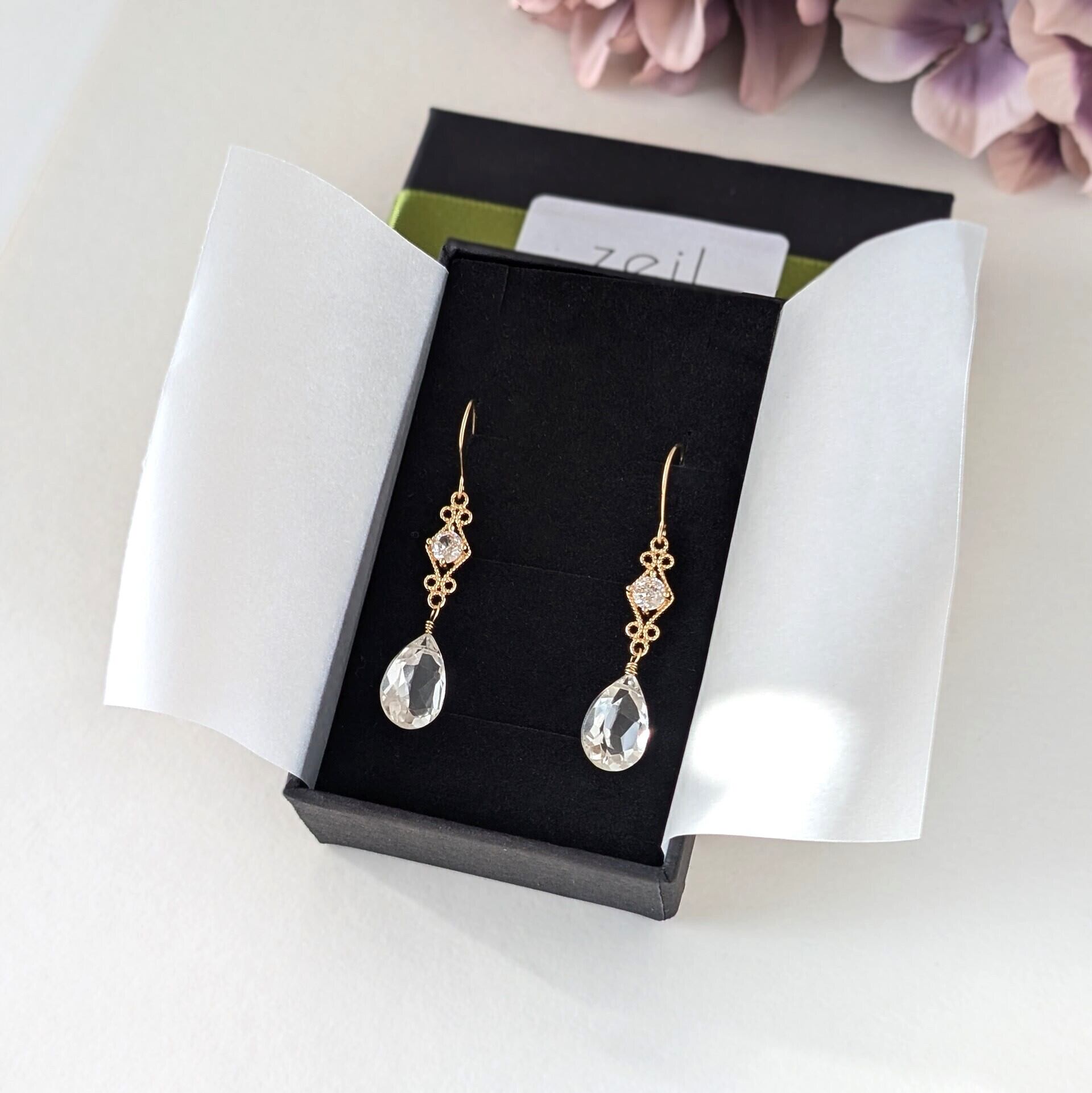 特別な日のピアス 水晶と菱形上品チャームのピアス⑱ 14kgfフックピアス