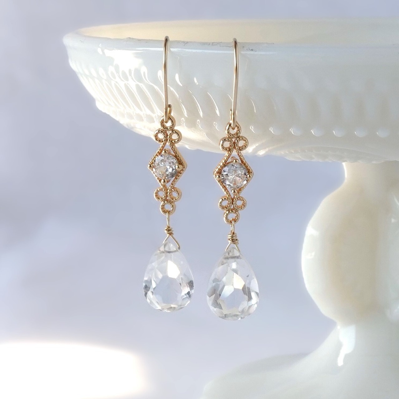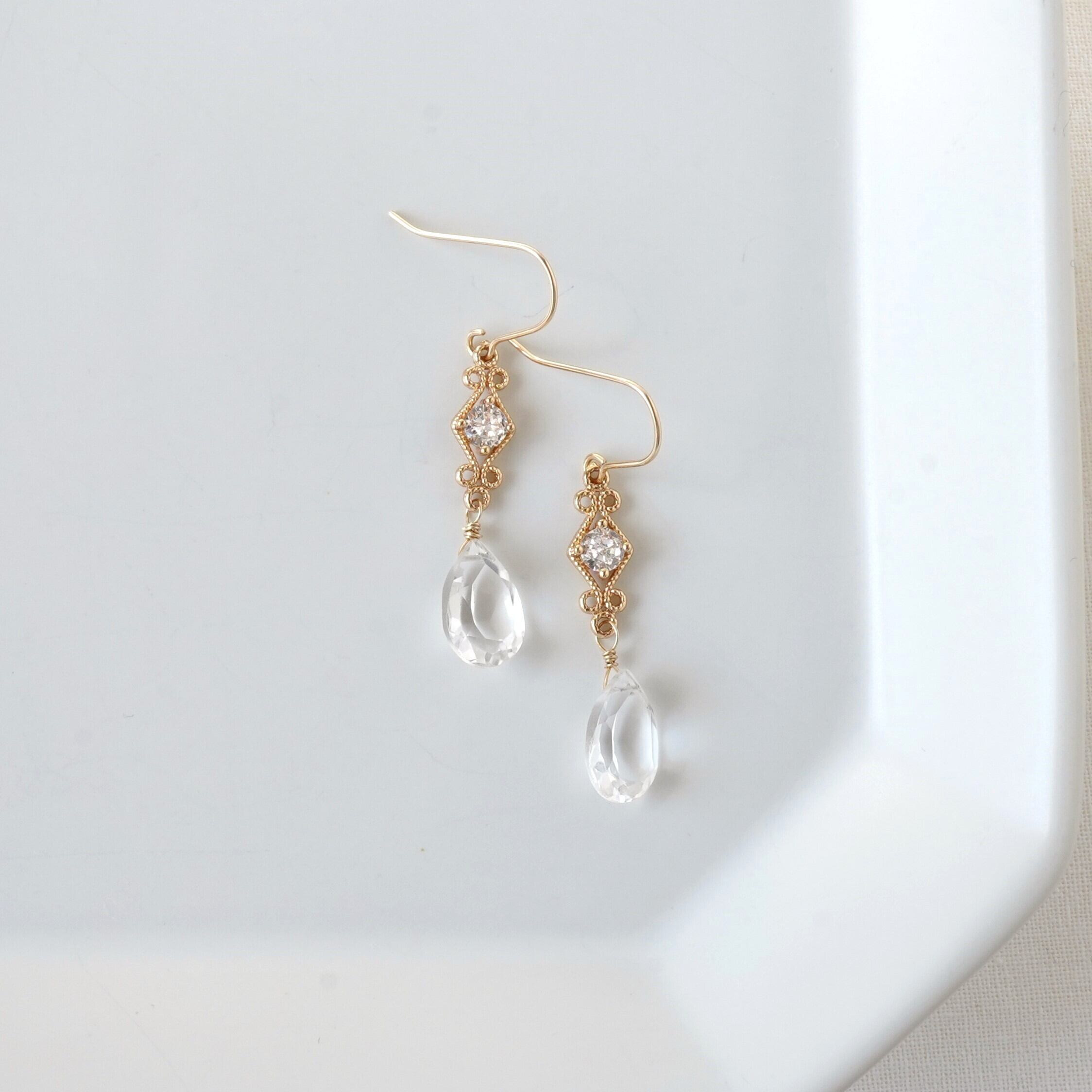 宝石質ブラジル産クリスタルのペアシェイプカットです。 透明度が高く、内傷も少ない高品質のクリスタルを使用。 裏面が尖ったファセットカットですので、より美しくカットが輝きます。