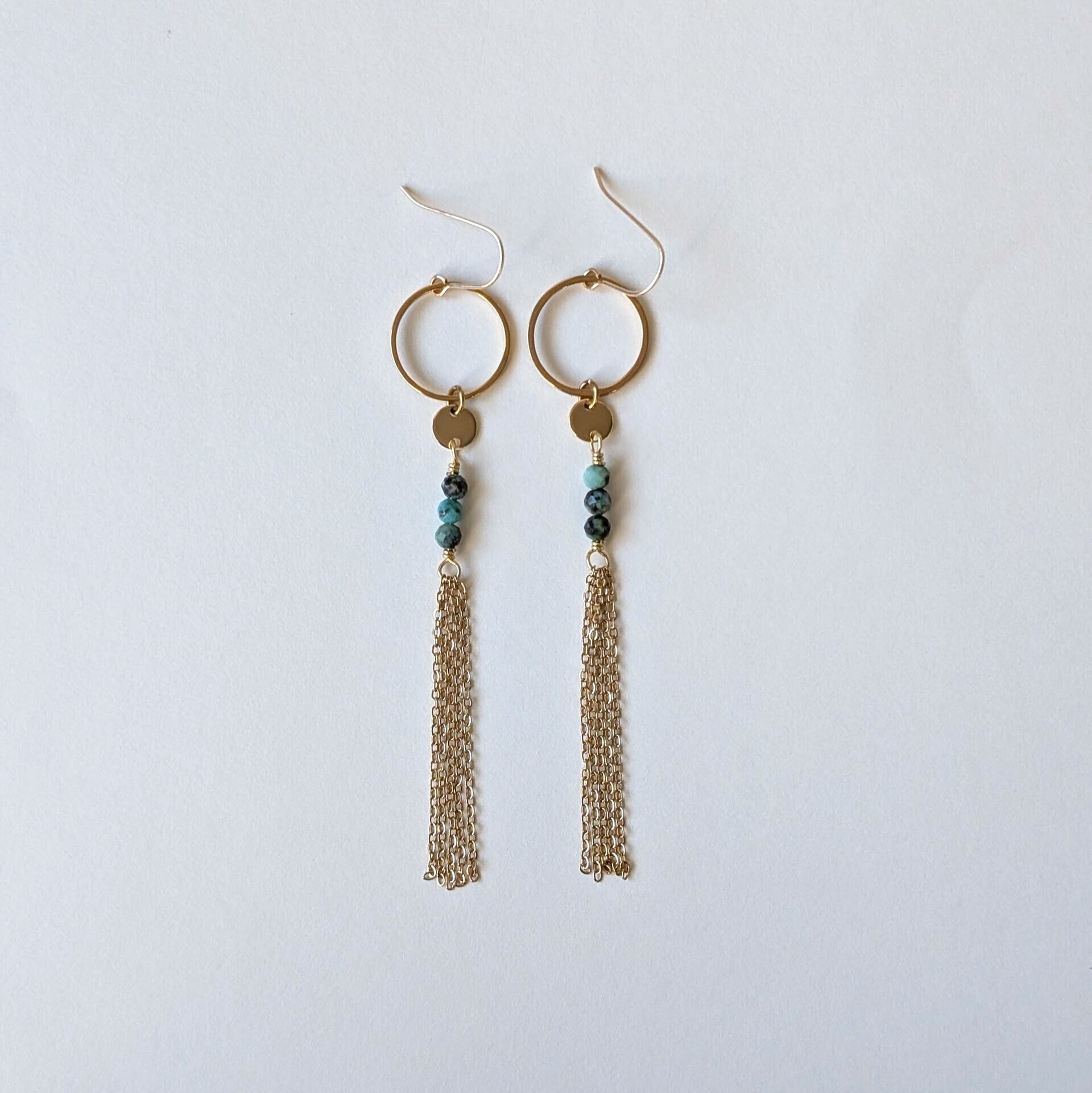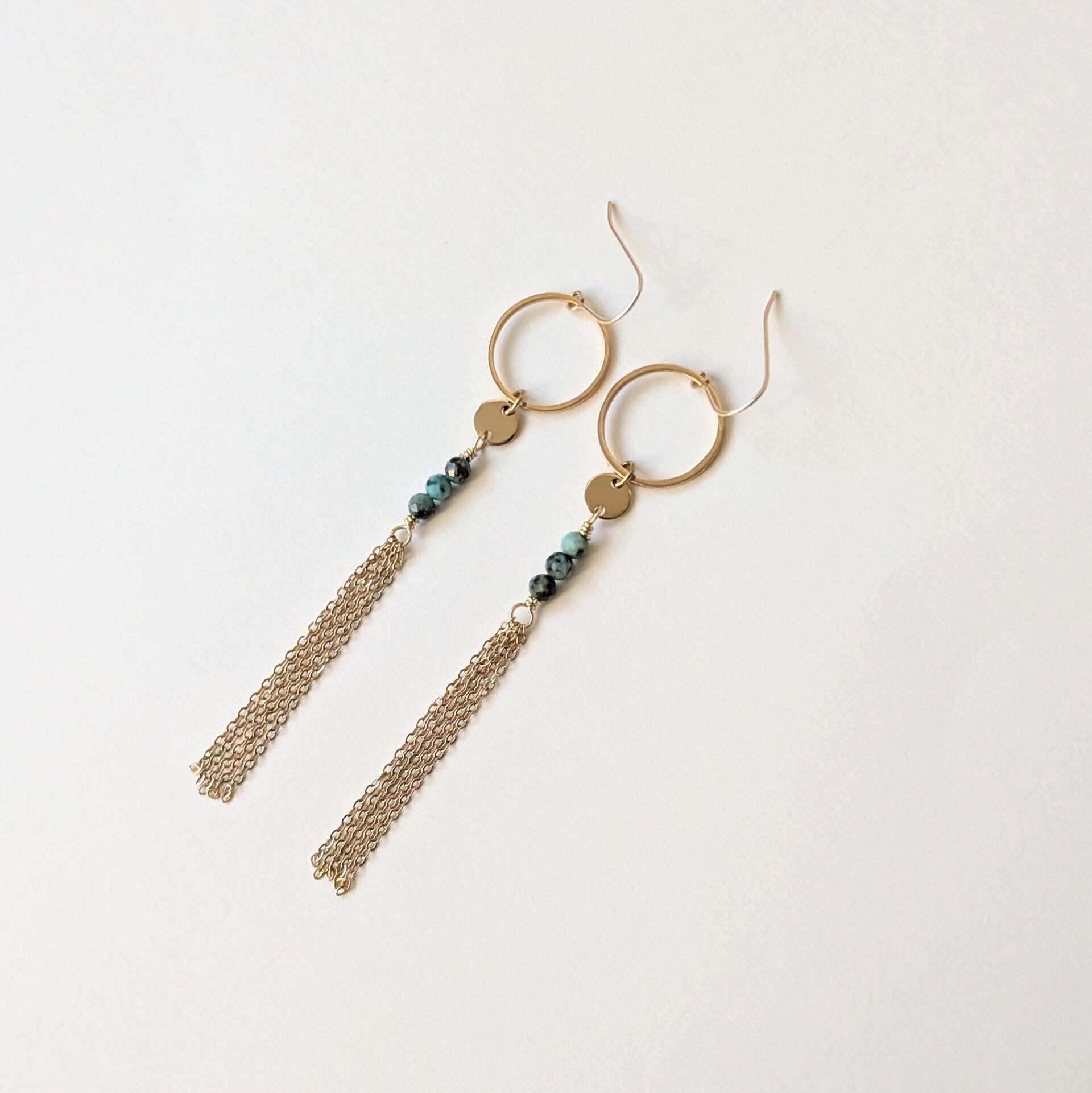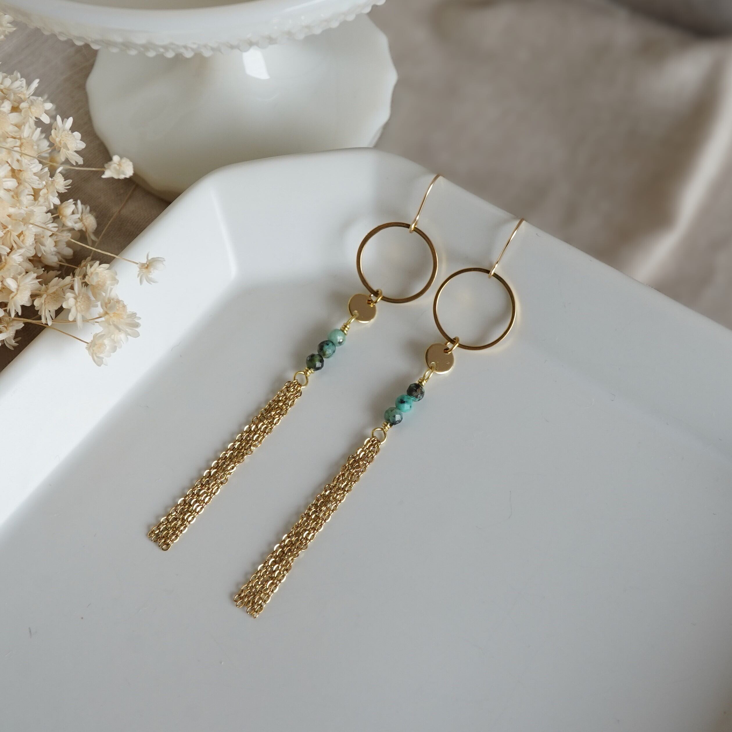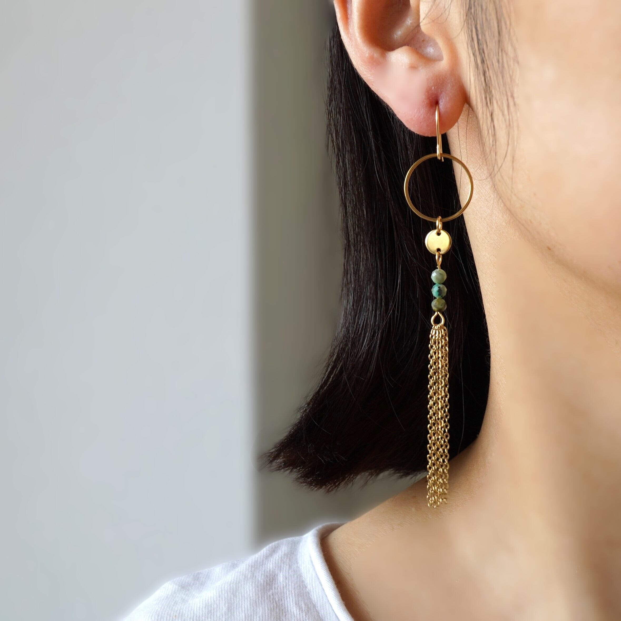 天然石アフリカンターコイズ タッセルピアス 天然石ピアス サージカルステンレス 14kgf