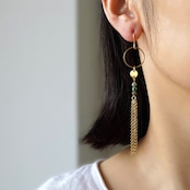極細チェーンをタッセルのように束ねたデザイン。小さなディスクコネクターとタッセルがきらきらと光り、アクセントになっています。
