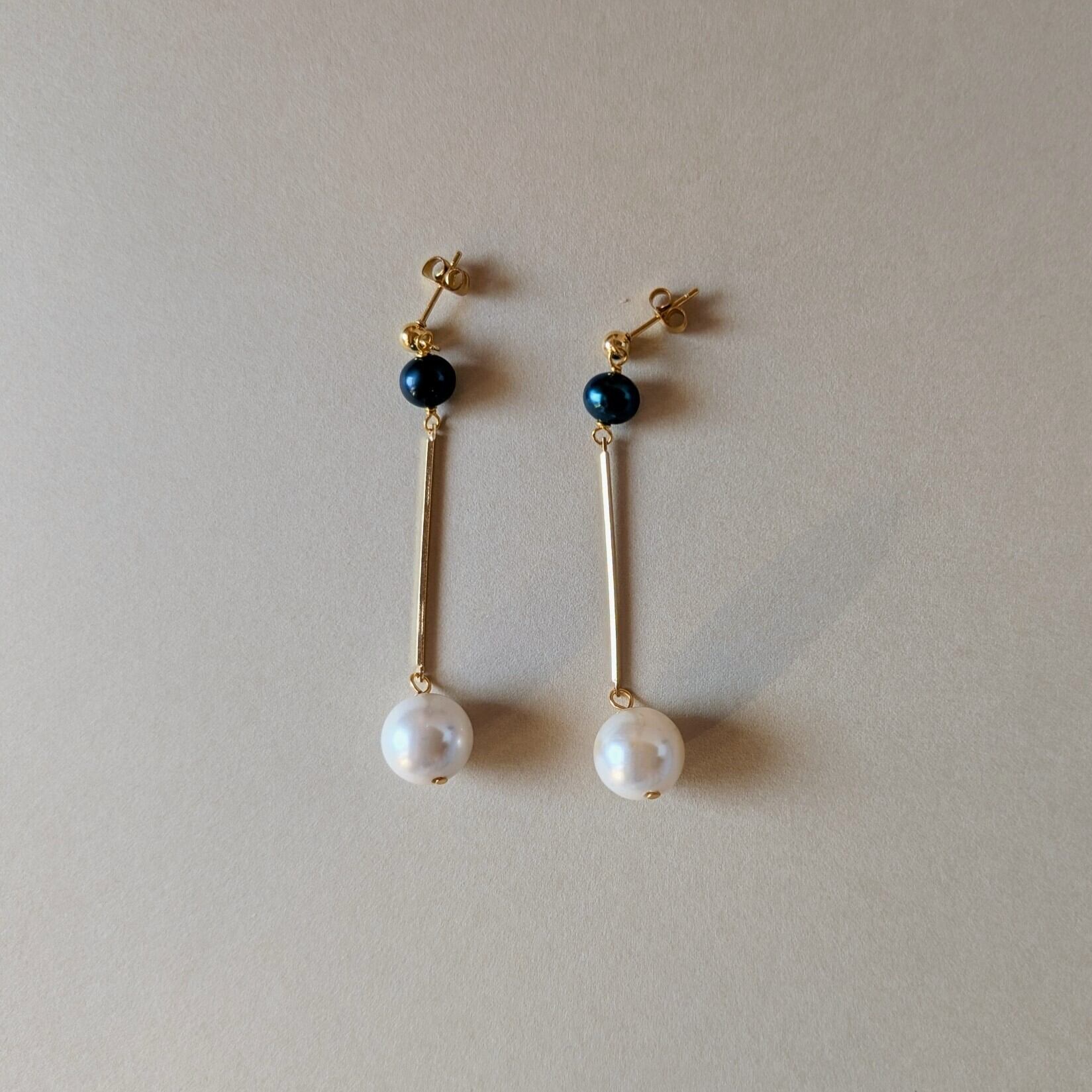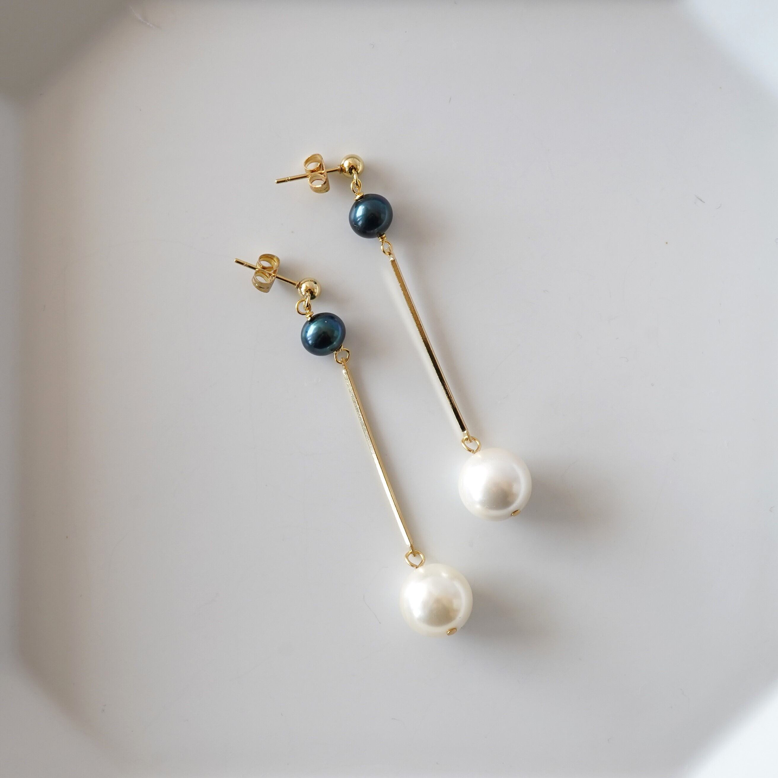 2色のパールを使用したロングピアスです。