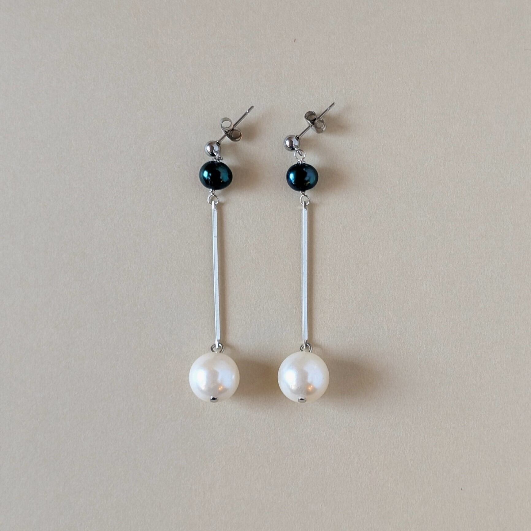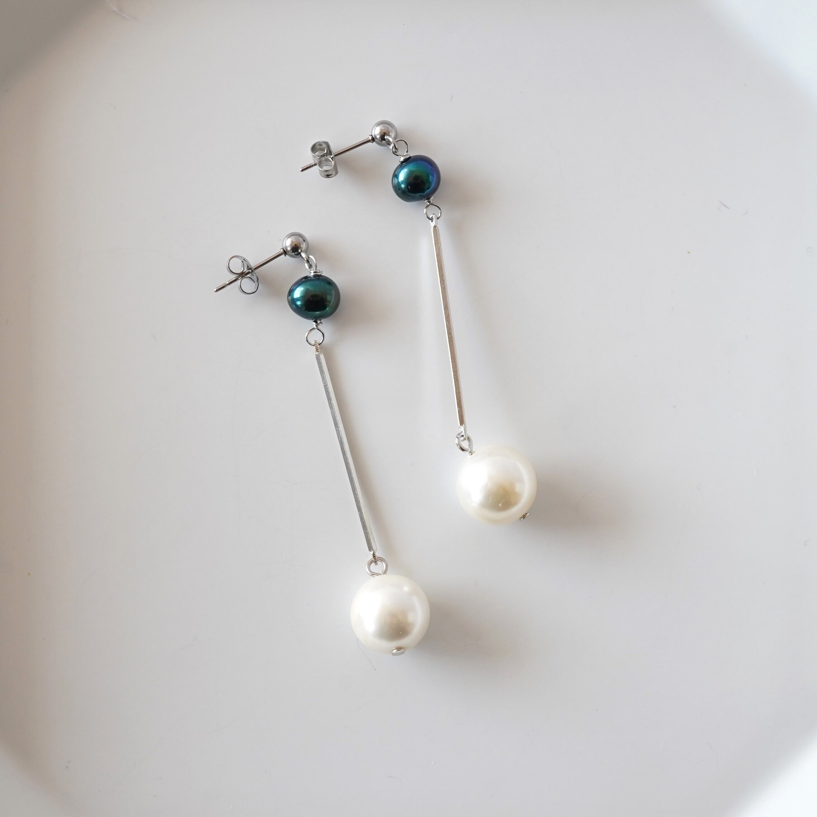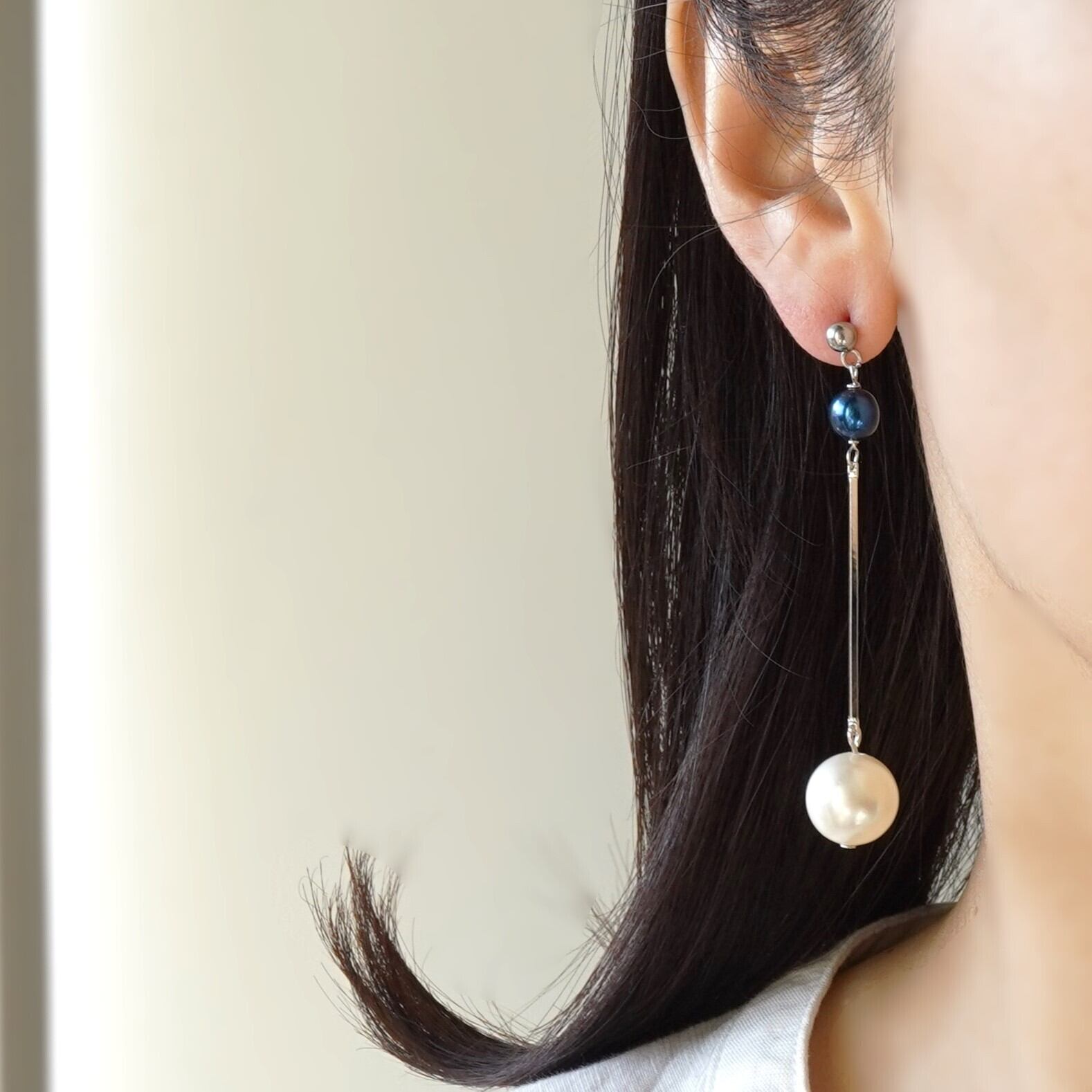 14㎜の大きめシェルパールがゆらゆらと揺れ、縦長ですっきりとした印象です。