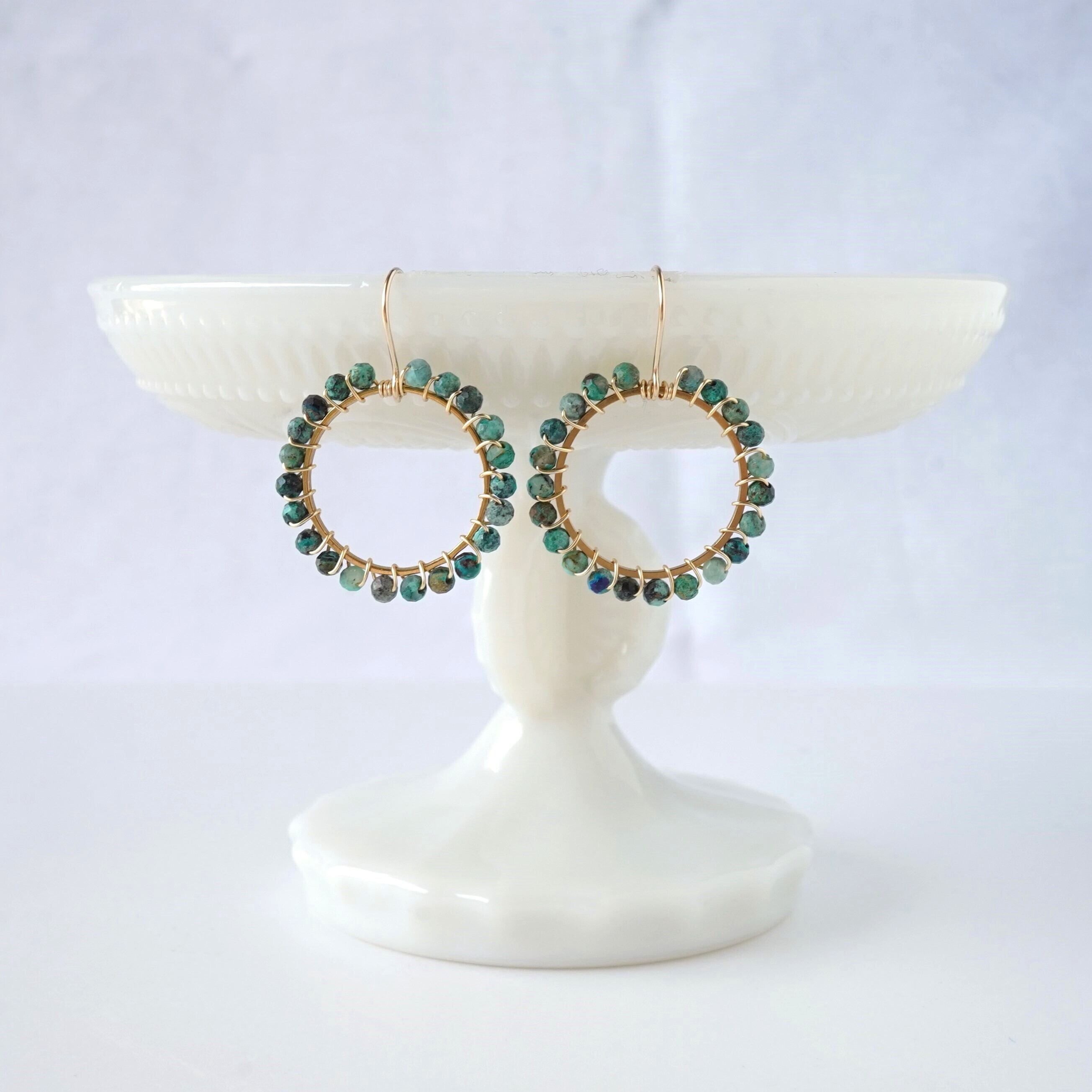 一粒ずつ丁寧に巻き付けたアフリカンターコイズのピアスです。