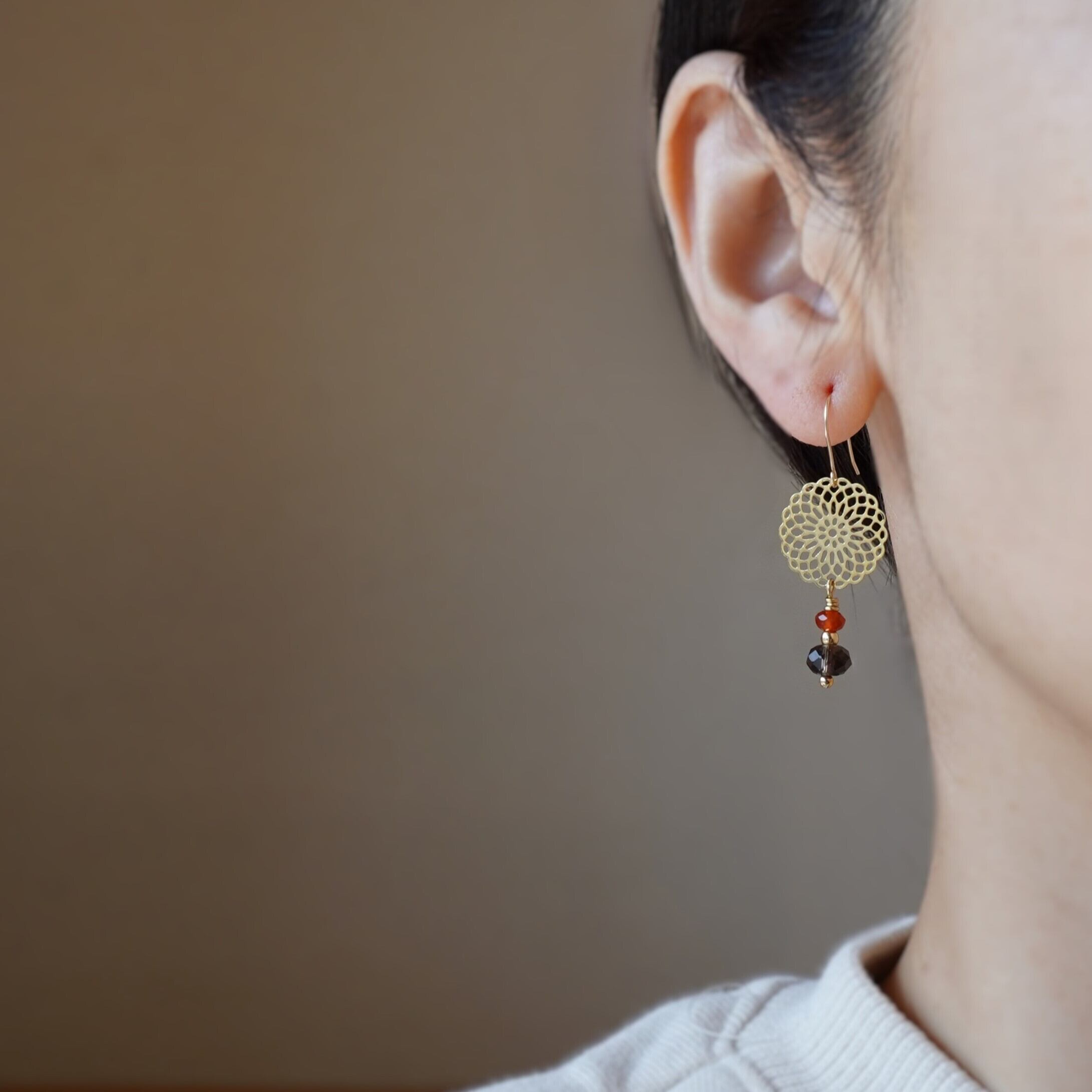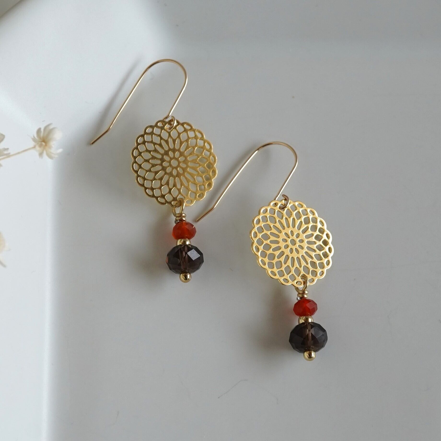 #天然石ピアス #14kgf #14kgfピアス #スモーキークォーツ #カーネリアン #エスニック #ボヘミアン