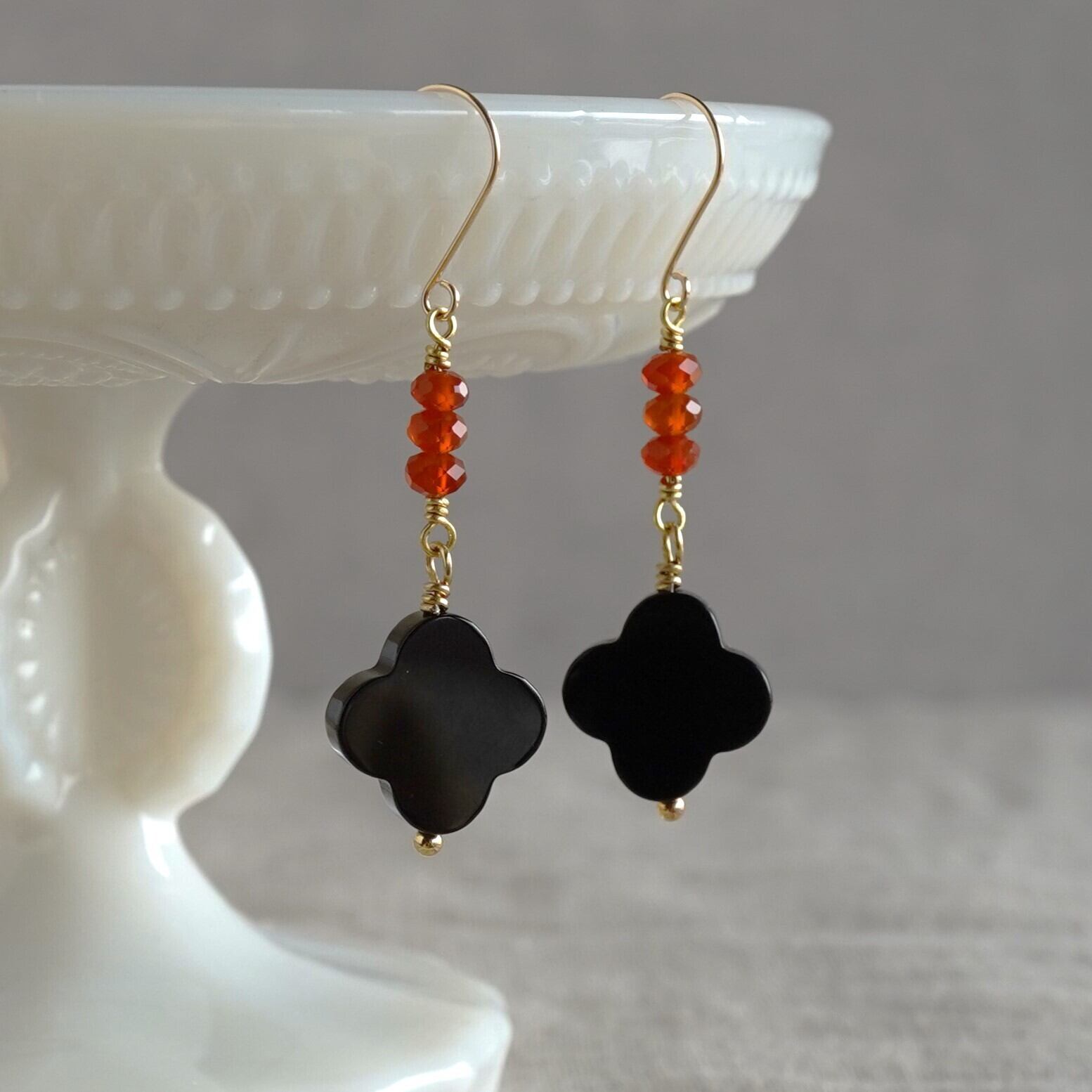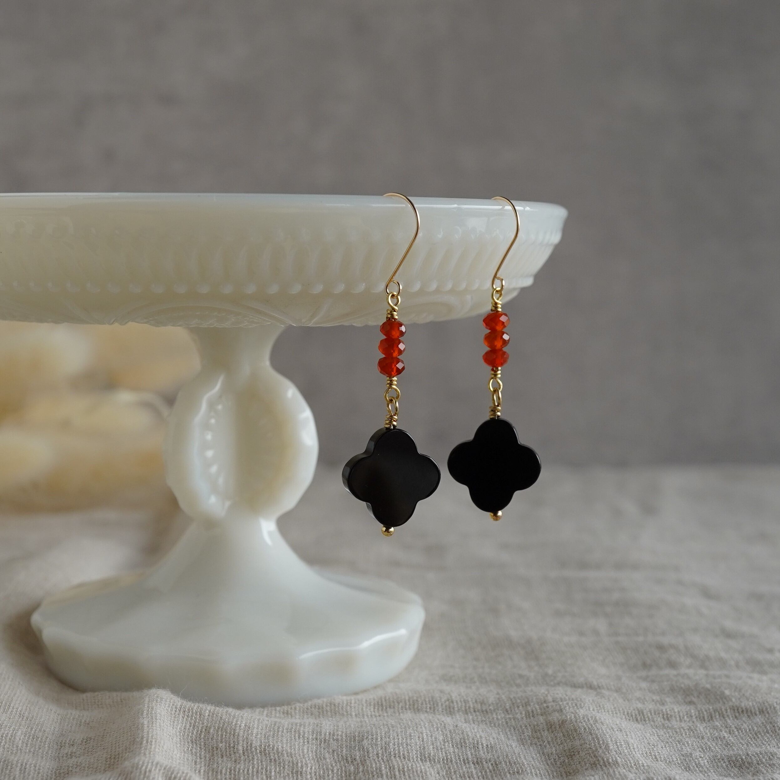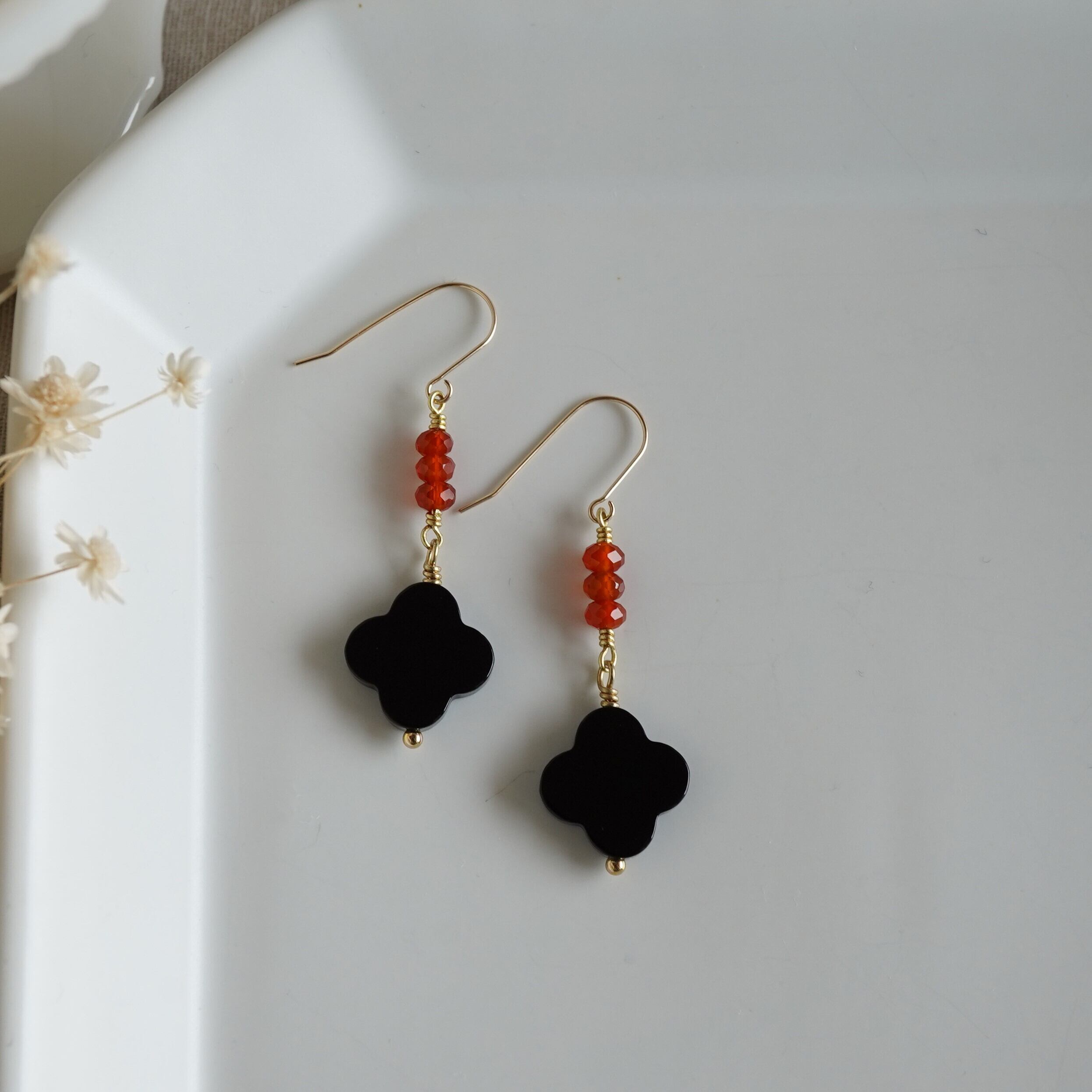天然石ブラックオニキスとカーネリアンを使用したピアスです。