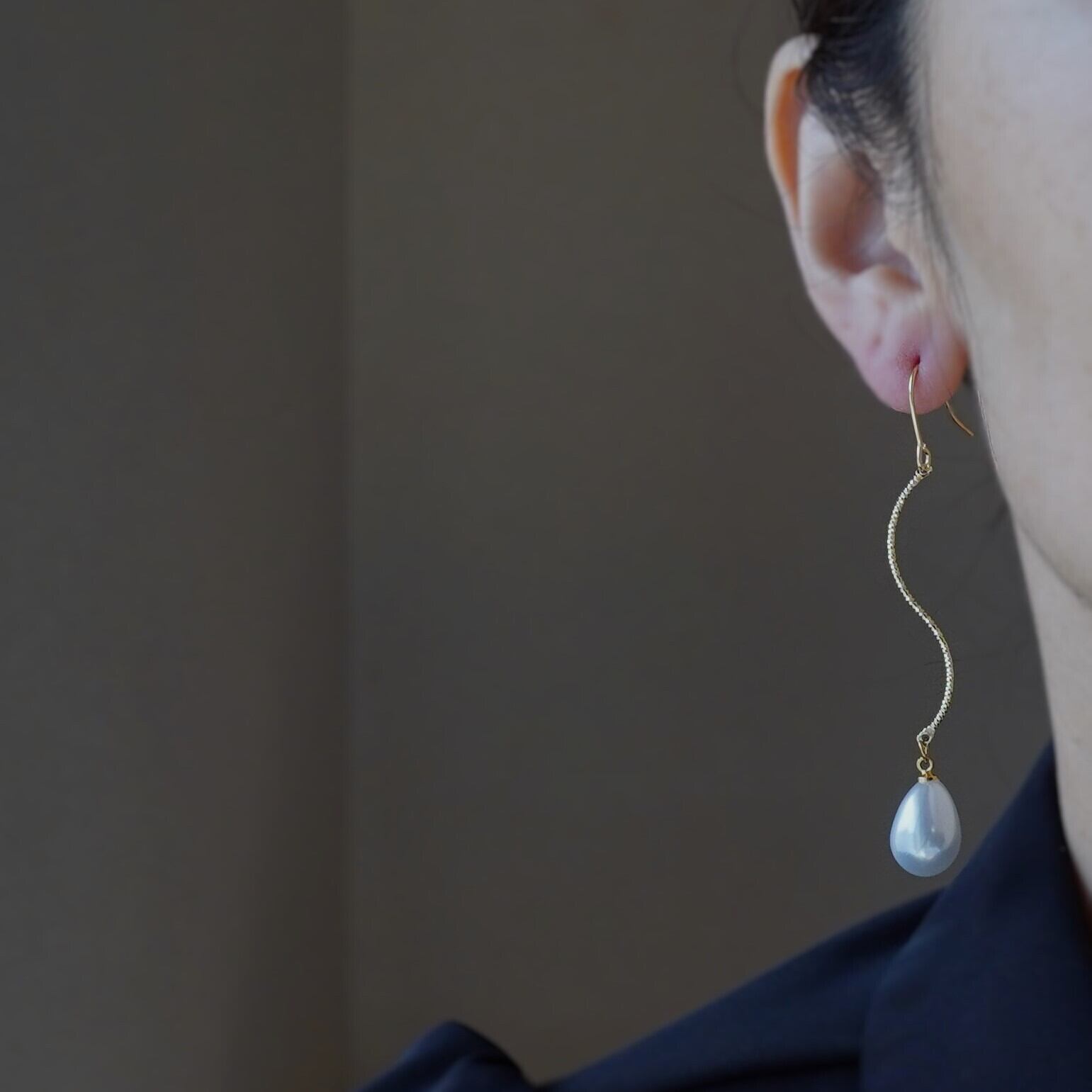 細かな加工の入ったウエーブコネクターがきらきらと揺れて、シンプルながらも上品で存在感があります。