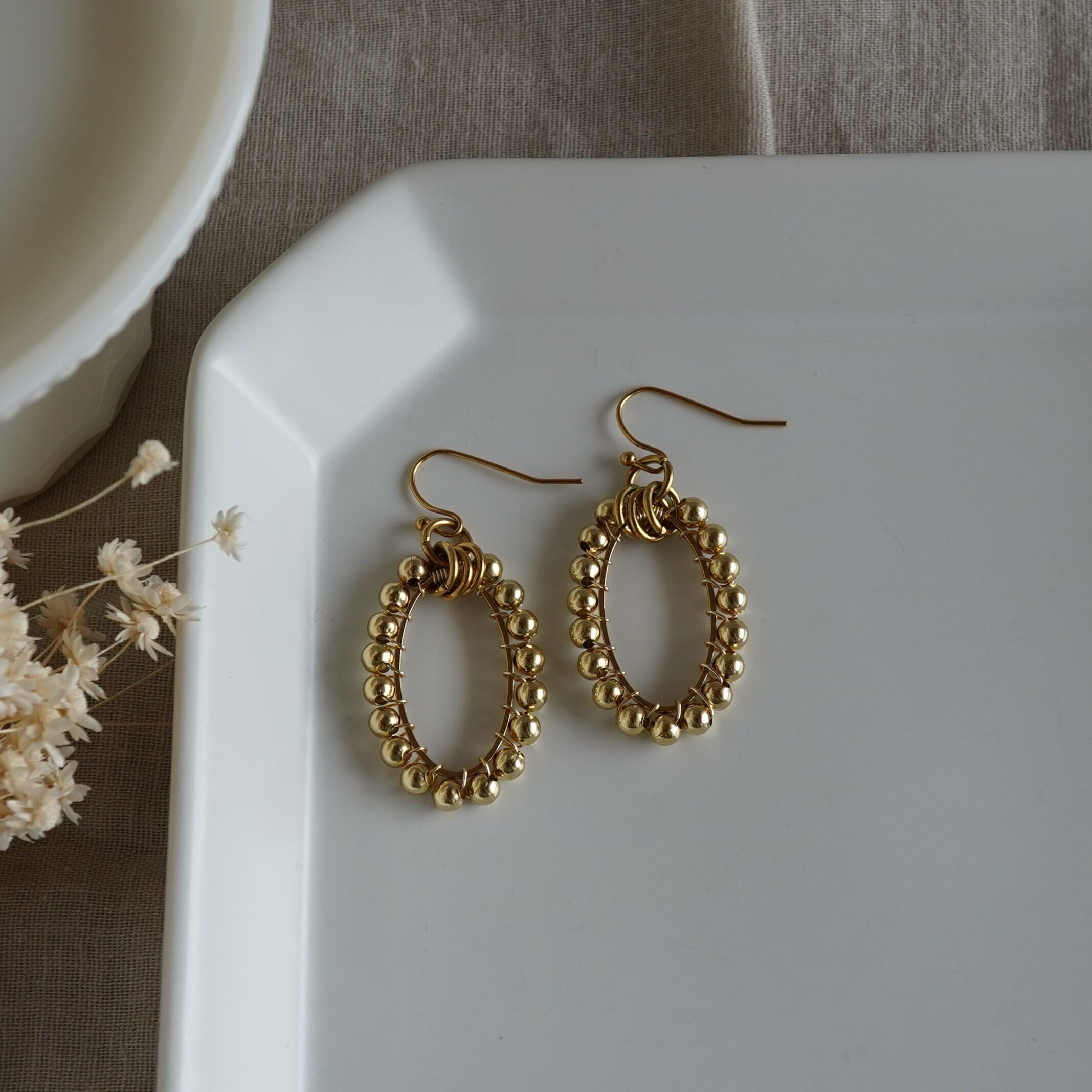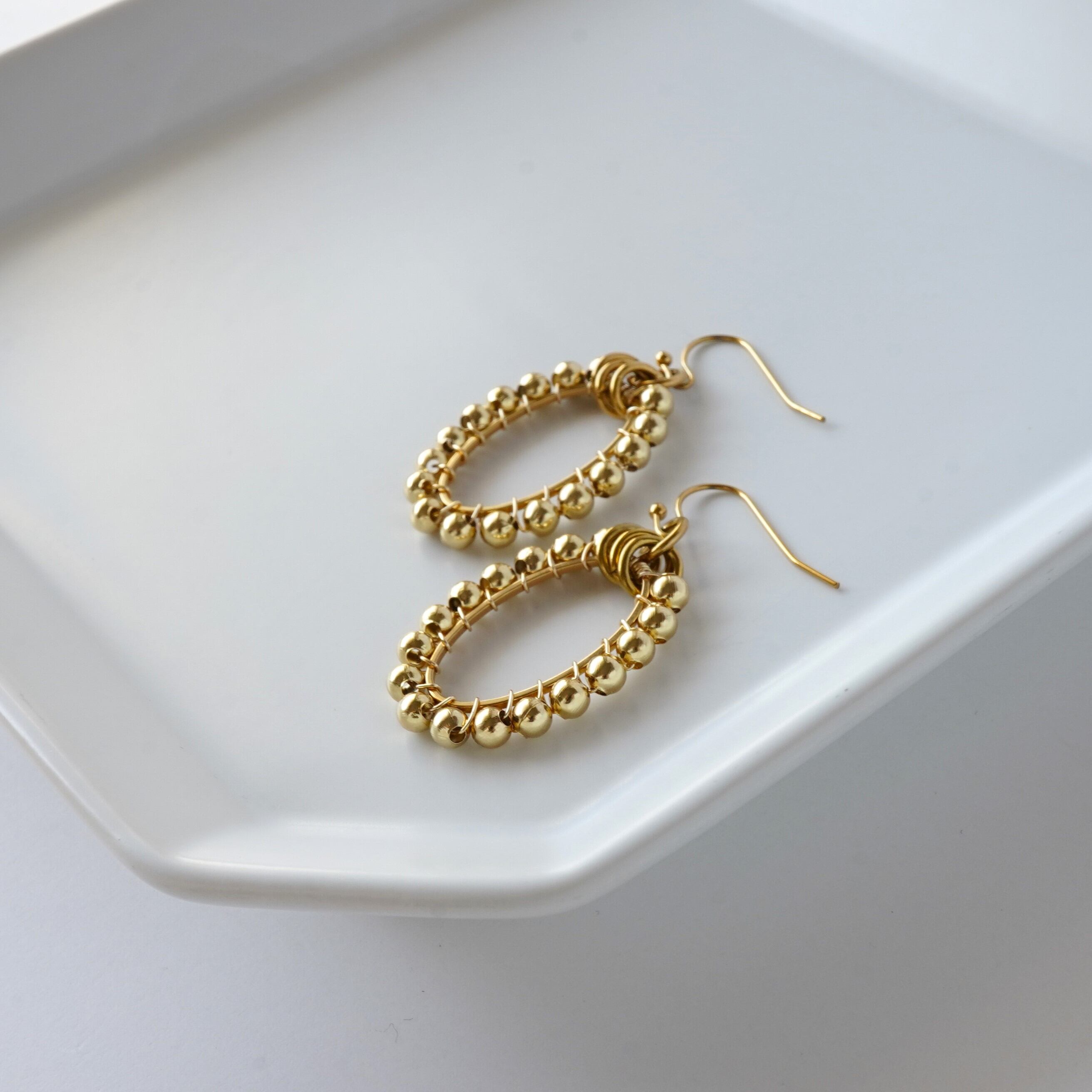メタルボールを一粒ずつ丁寧に巻き付け、華やかさとかっこよさもあるピアスです。