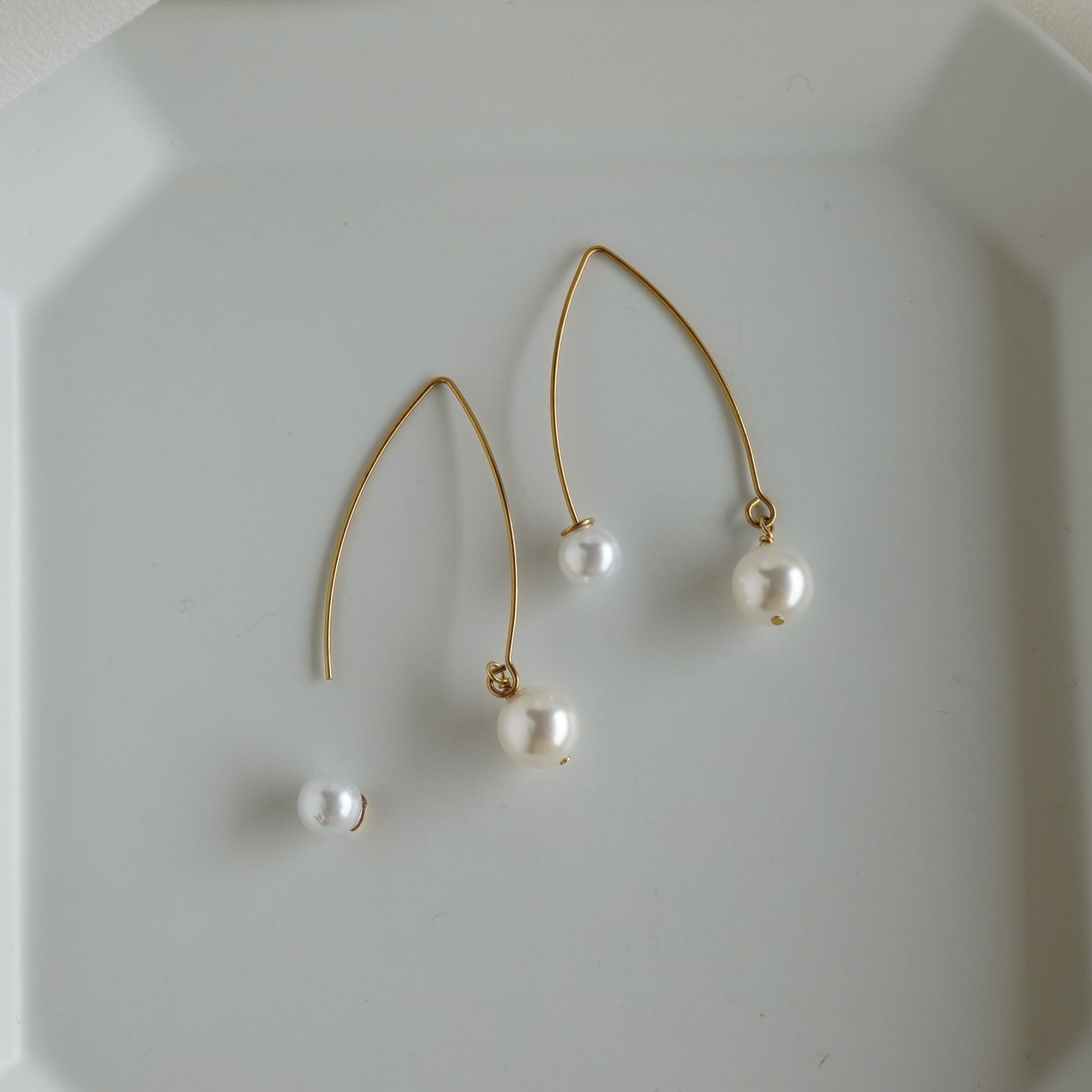 2つの使い方が出来る、シンプルで使いやすいパールピアスです。