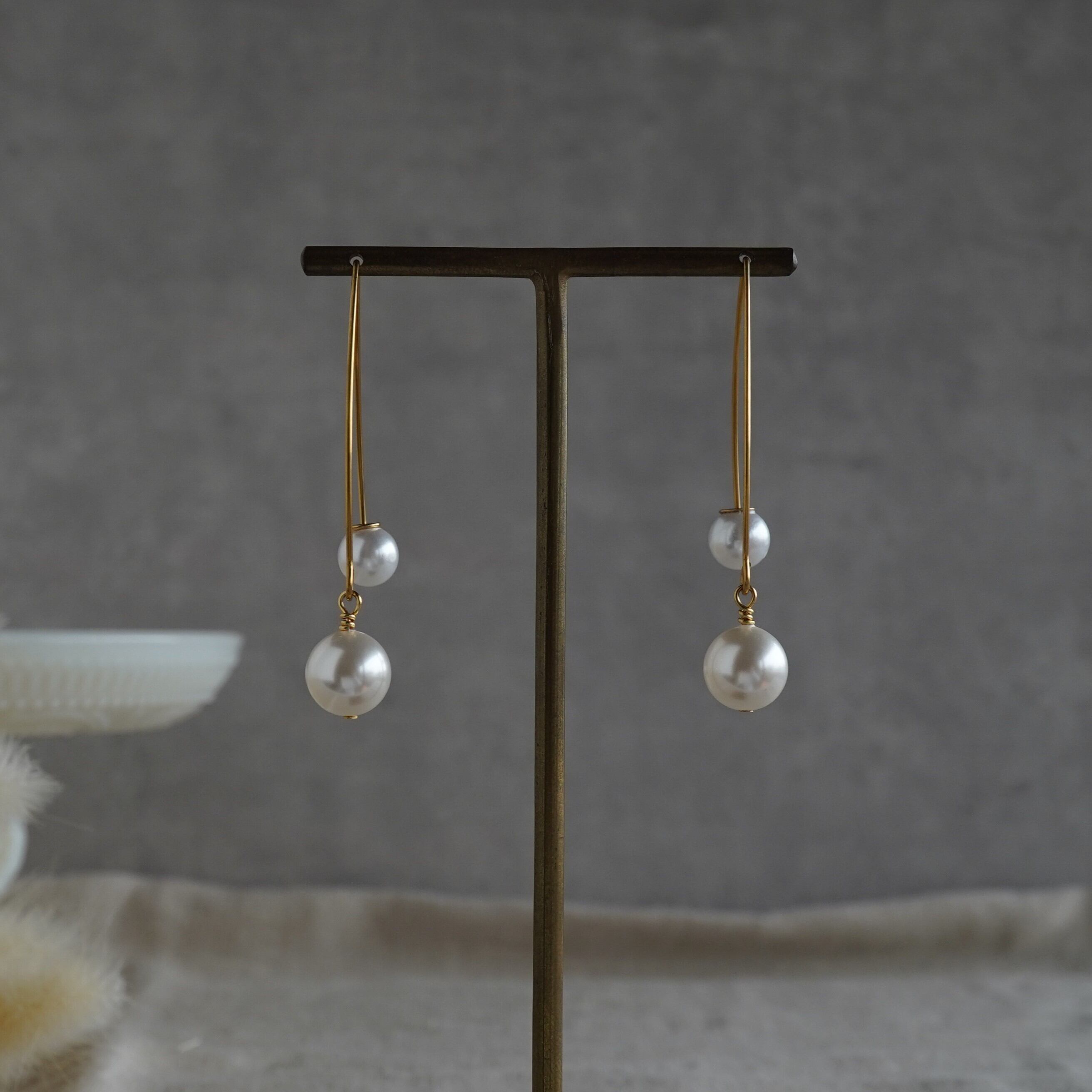 #ステンレスピアス #ゴールドピアス #ロングパールピアス #パールピアス
