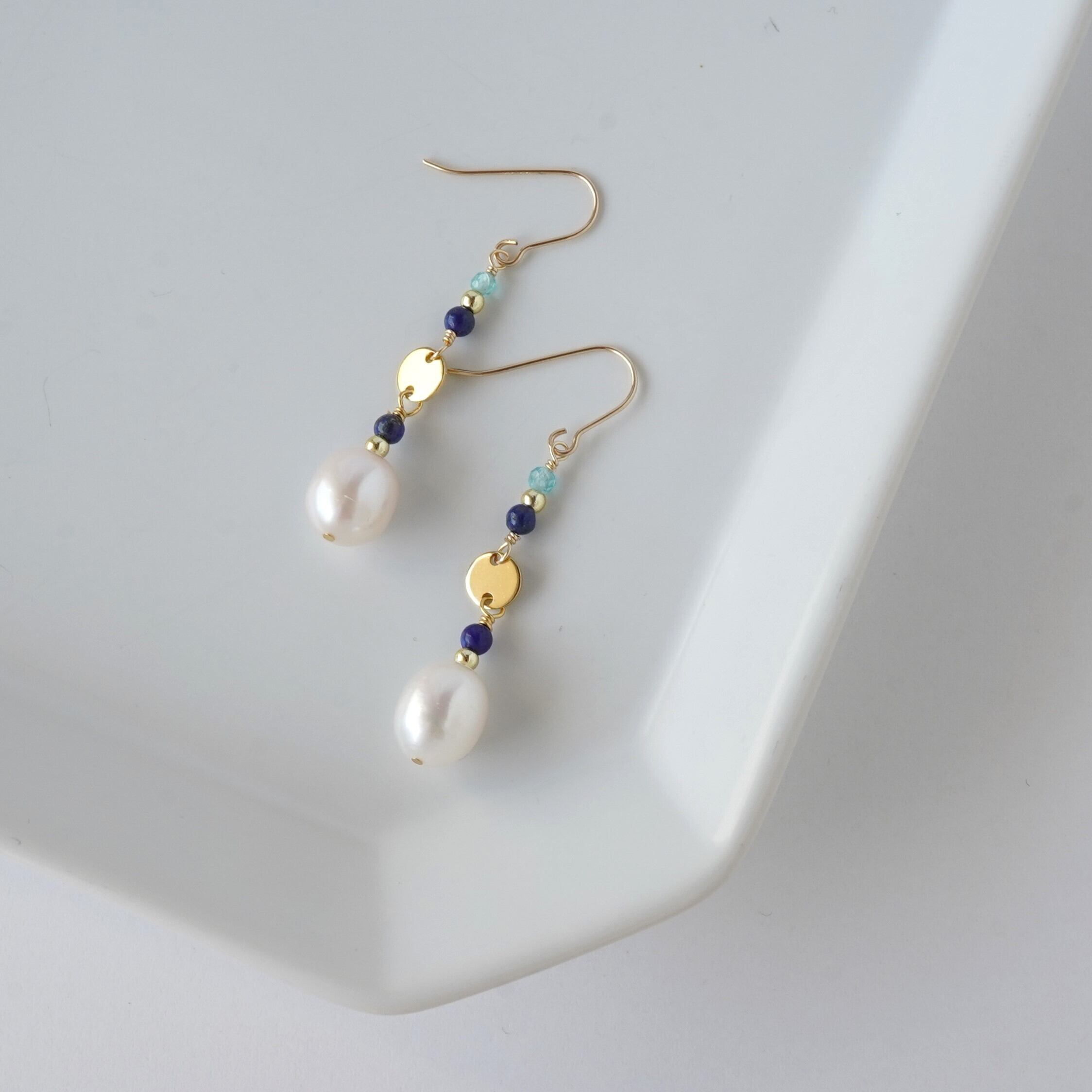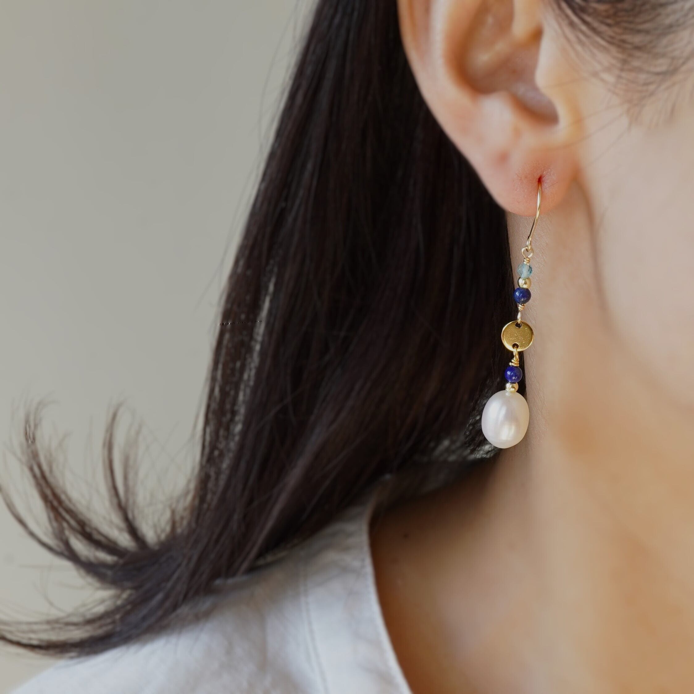 #天然石ピアス #14kgf #14kgfピアス #ラピスラズリ #アパタイト #エスニック #エキゾチック #オリエンタル #パールピアス #淡水パールピアス