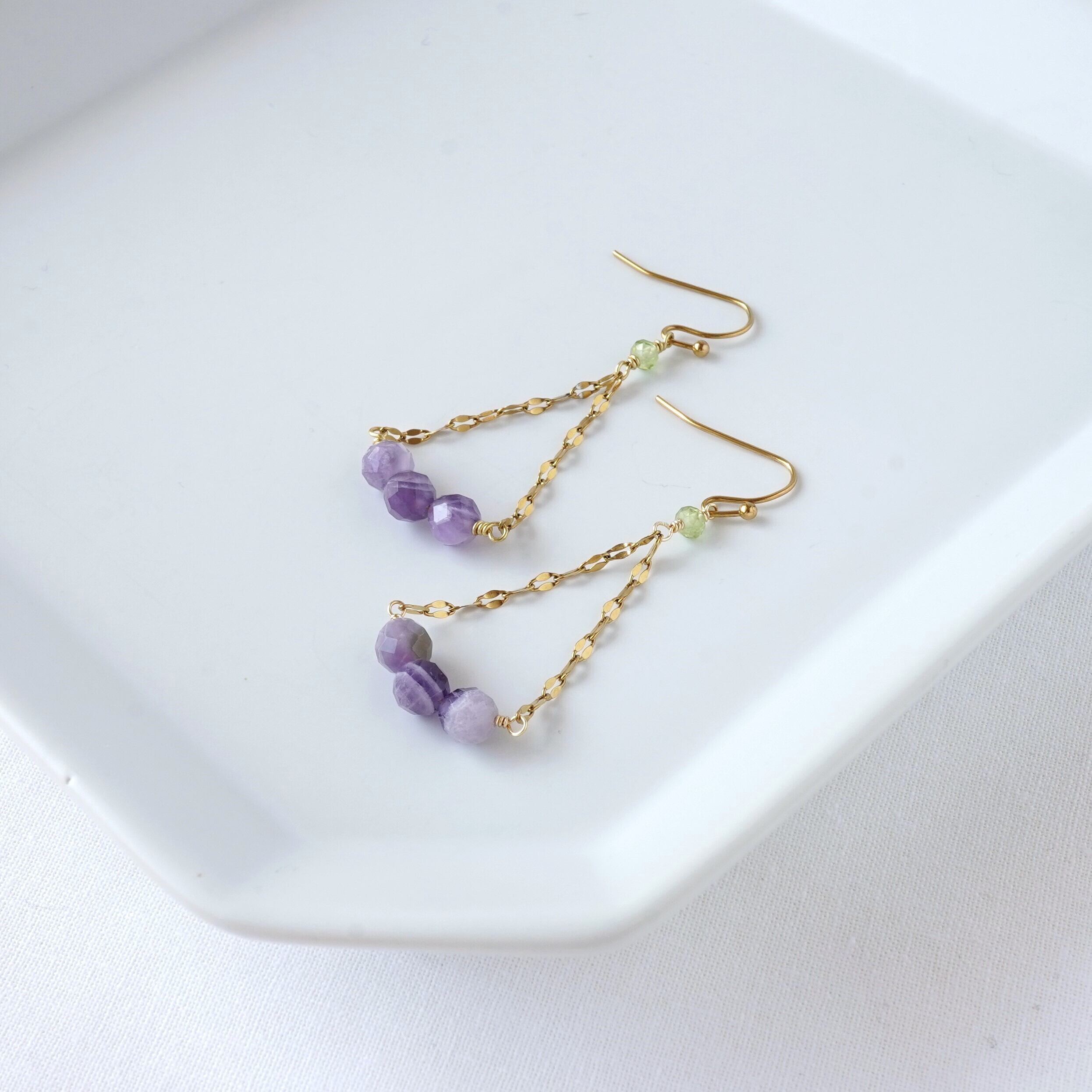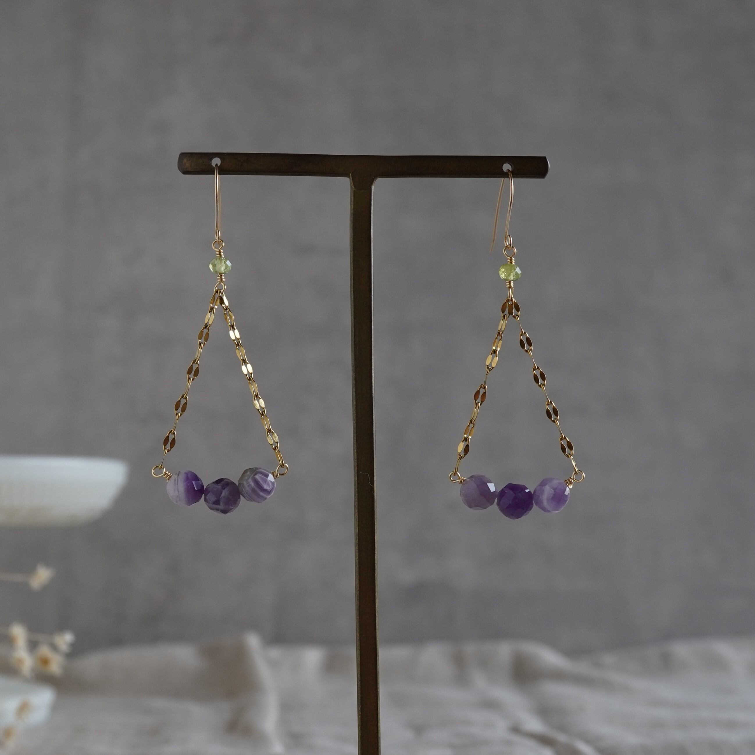 #スウィングピアス #アメジスト #ストライプアメジスト #ペリドット #個性的ピアス