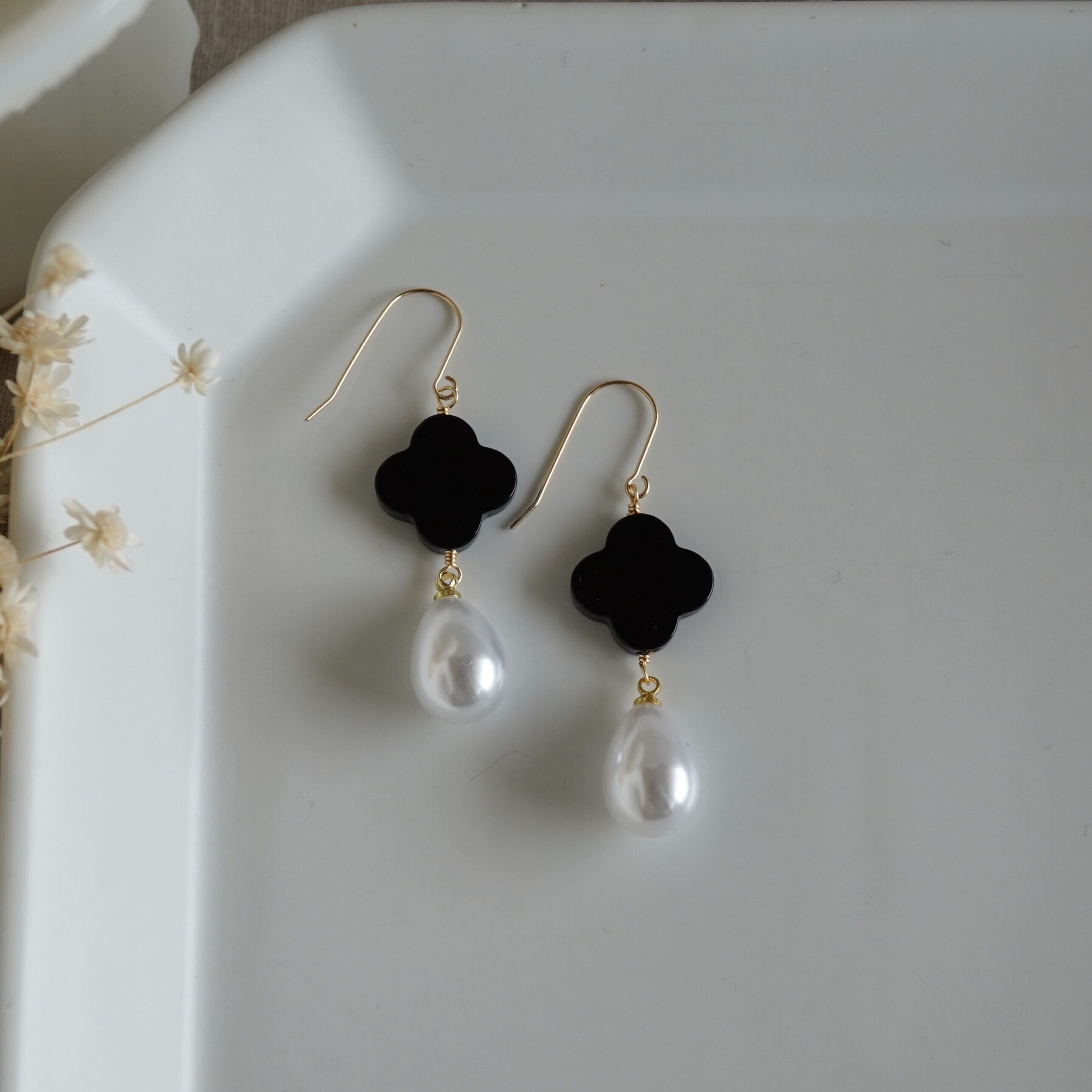 #14kgf #天然石ピアス #ブラックオニキス #パールピアス #モノトーンカラー