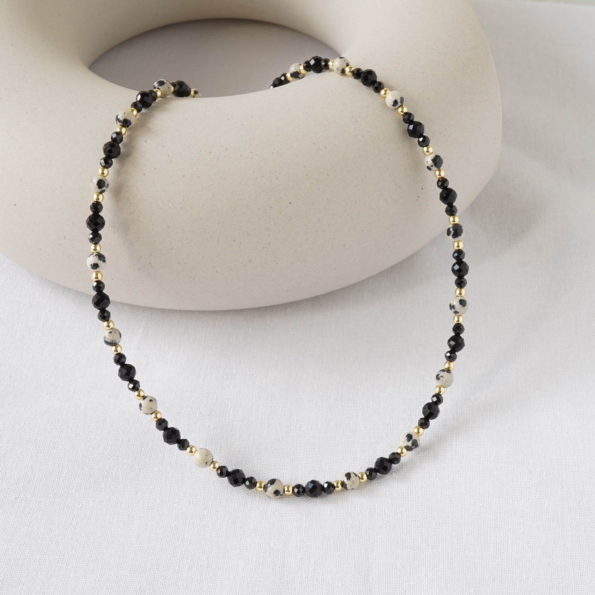 #天然石ネックレス #金属アレルギー対応 #14kgf #お守りアクセサリー #お守りジュエリー #ダルメシアンジャスパー #オニキス #ブラックスピネル