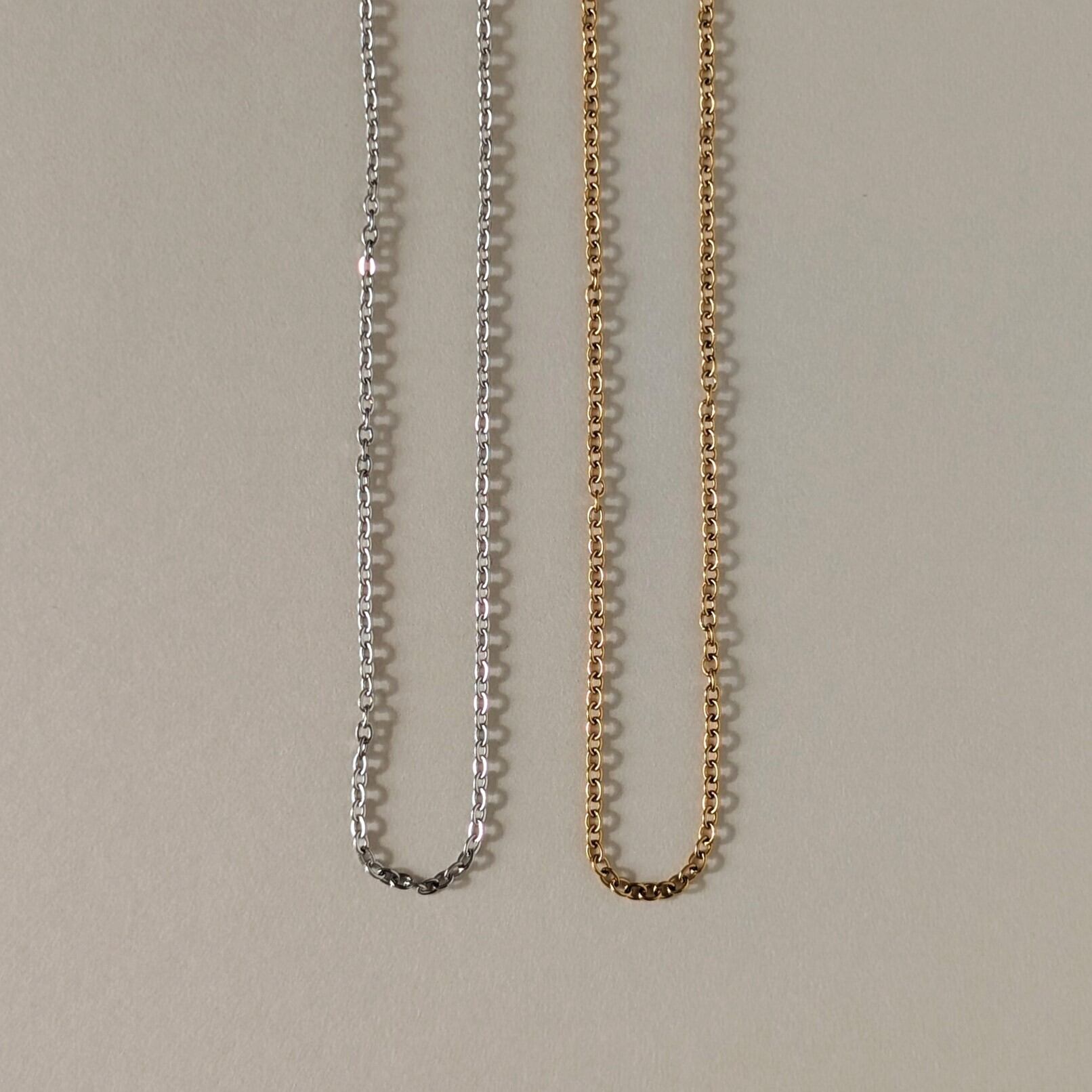 複数のチェーンが複雑かつ繊細に絡み合って独特の輝きを放つシンガポールチェーン。キラキラとしてとても綺麗。ゴールド/シルバーよりお選びいただけます。