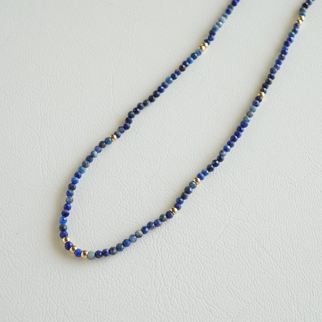 極小2㎜の天然石ラピスラズリを使用したネックレスです。