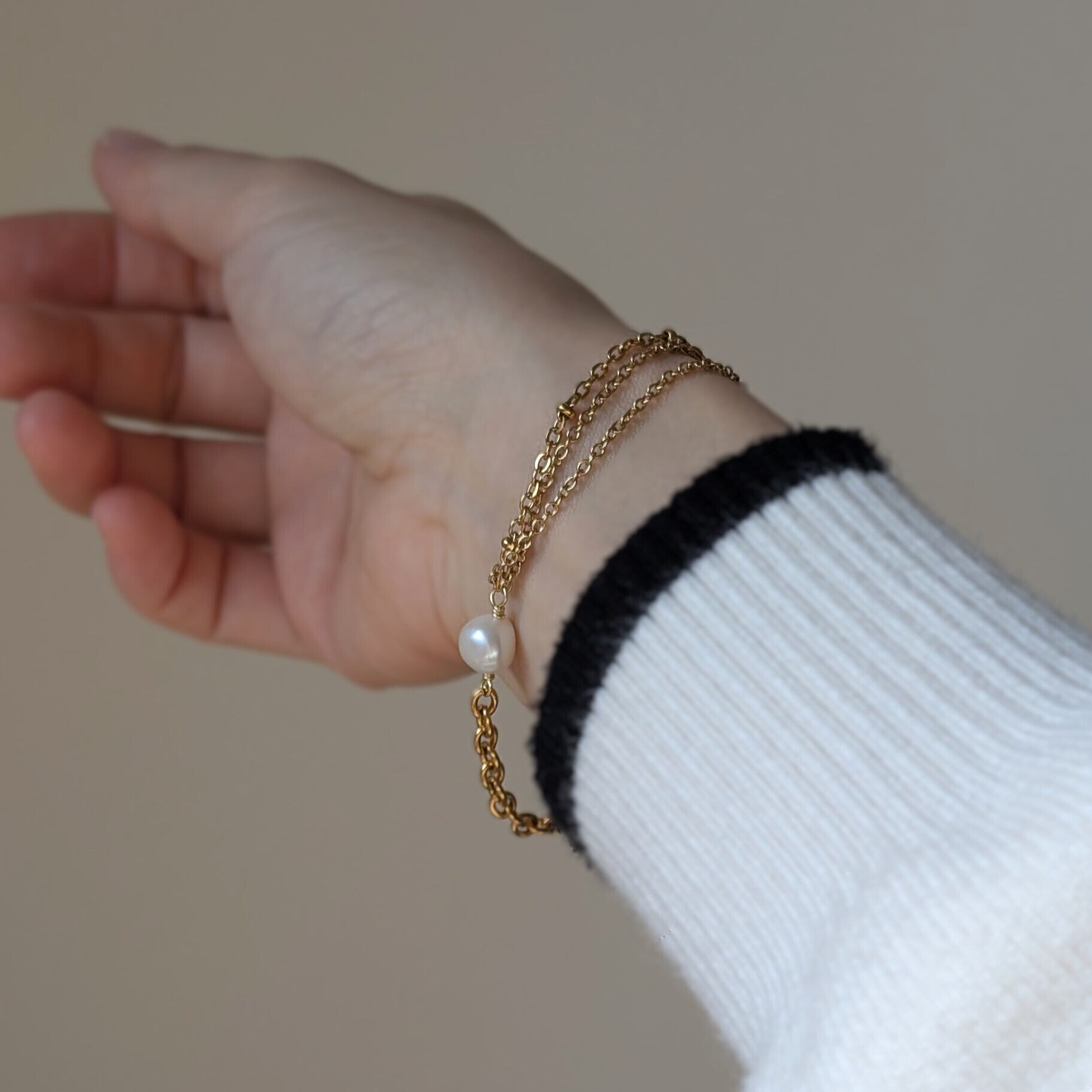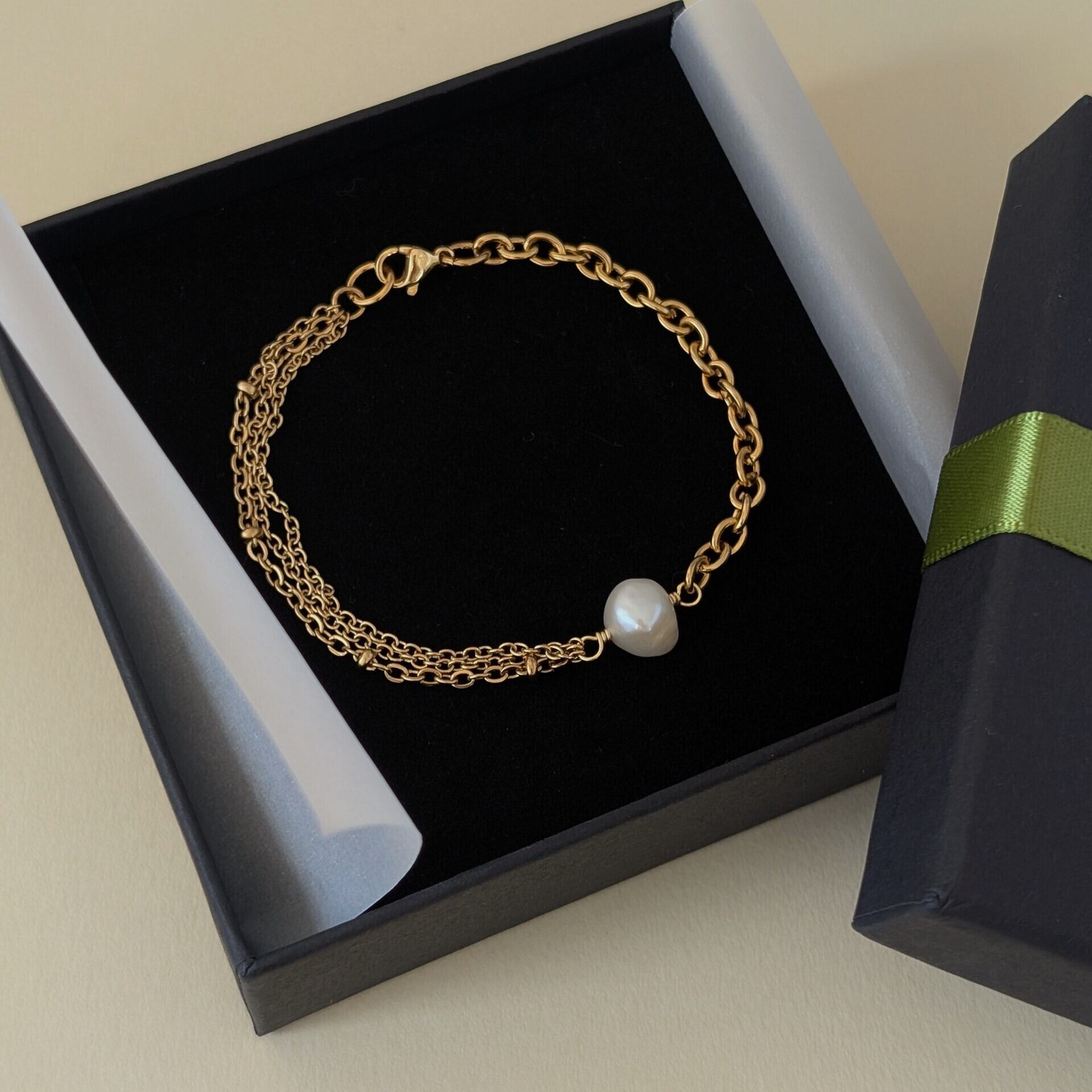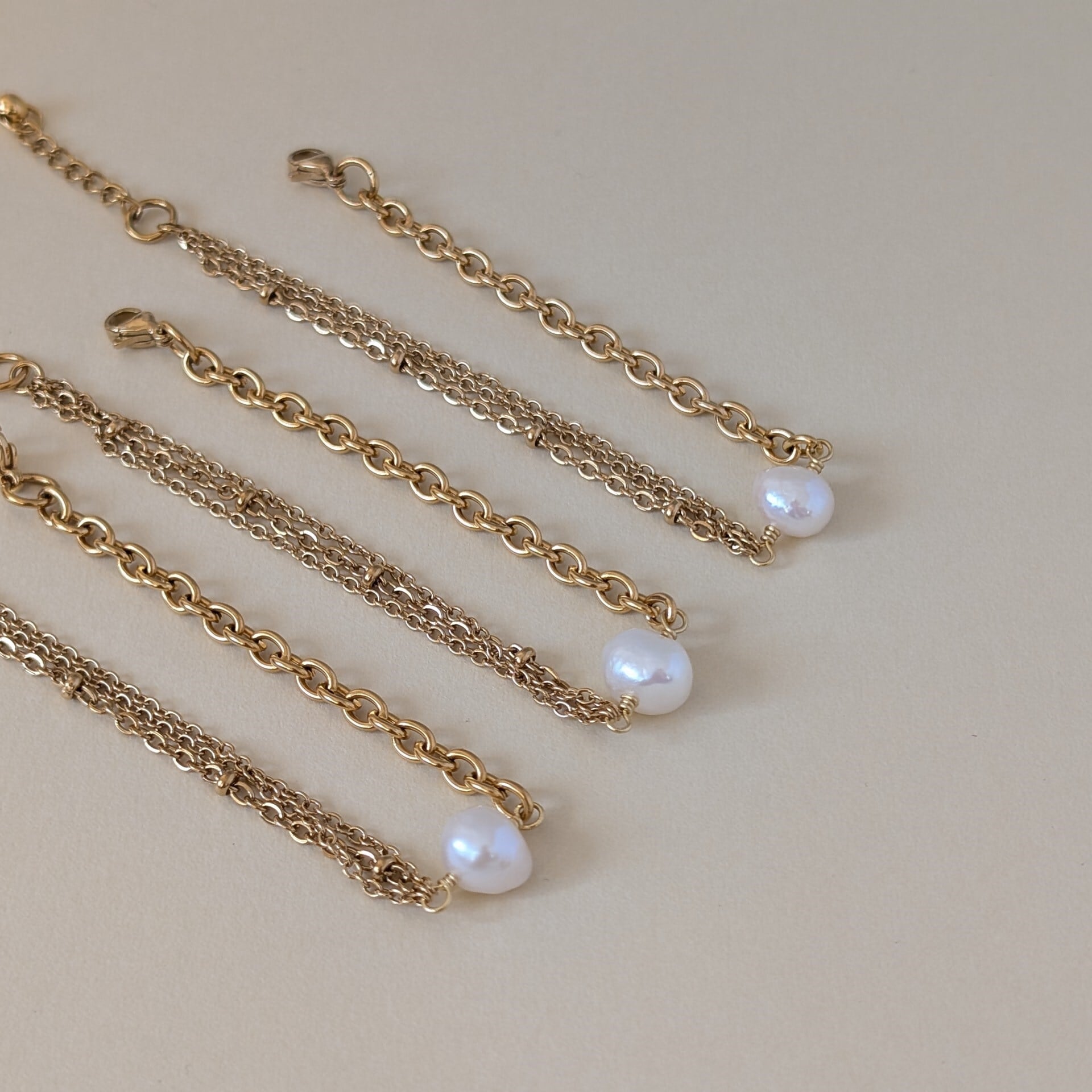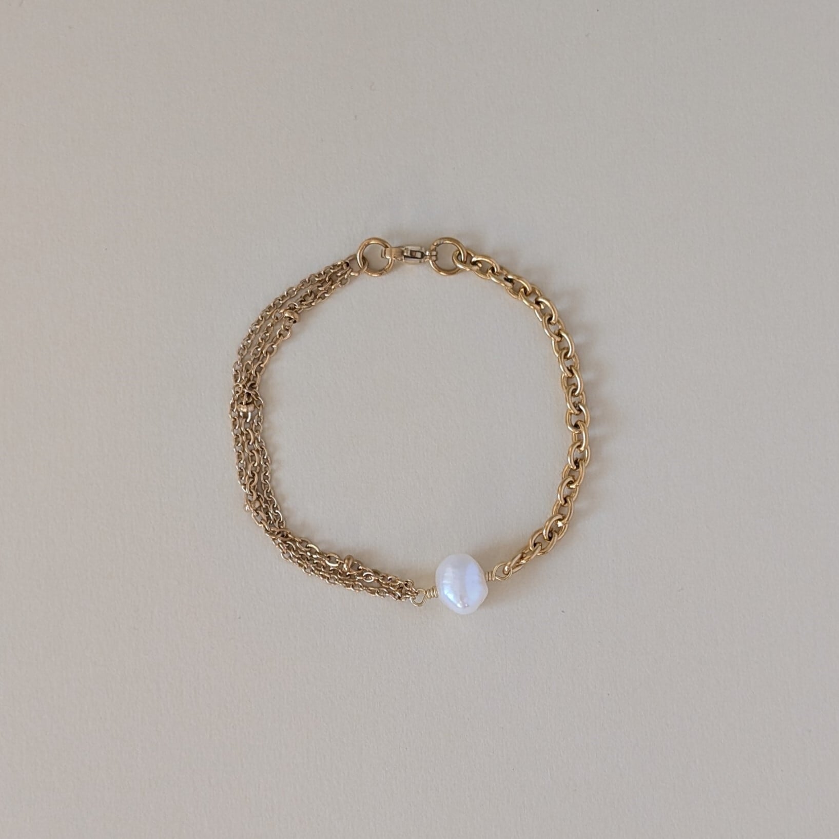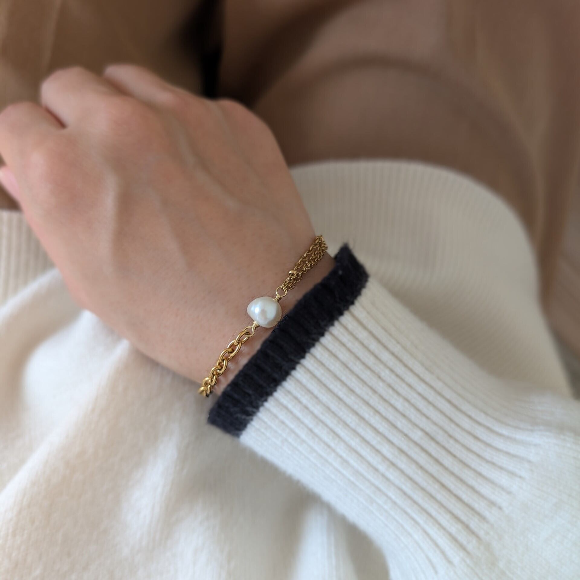 太さ・デザインの違うチェーンをmixしたブレスレットです。