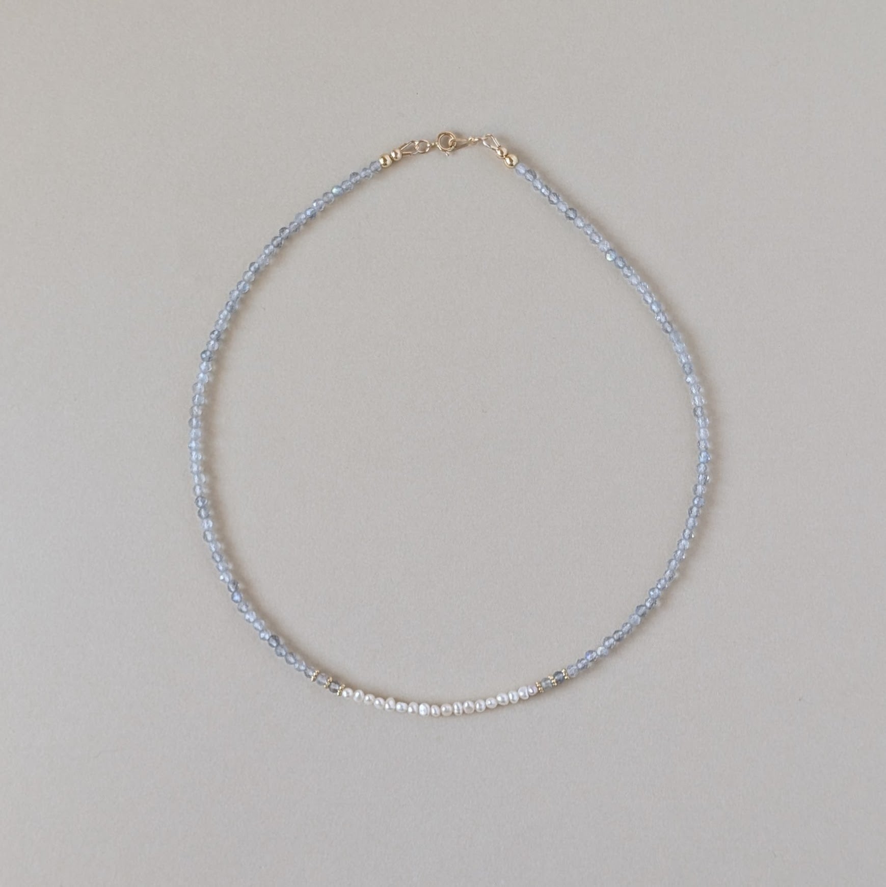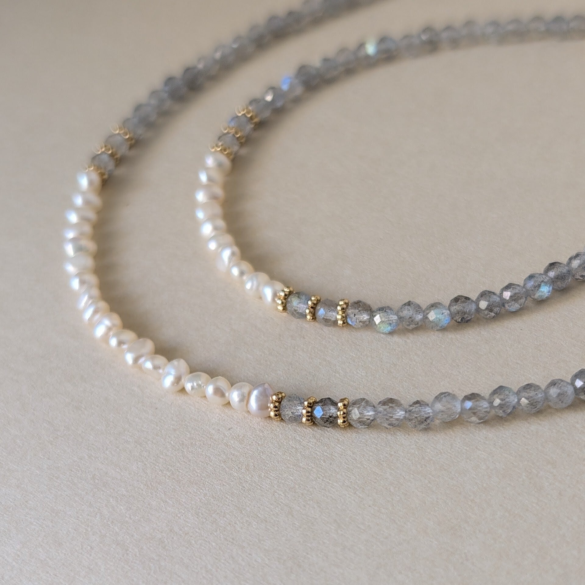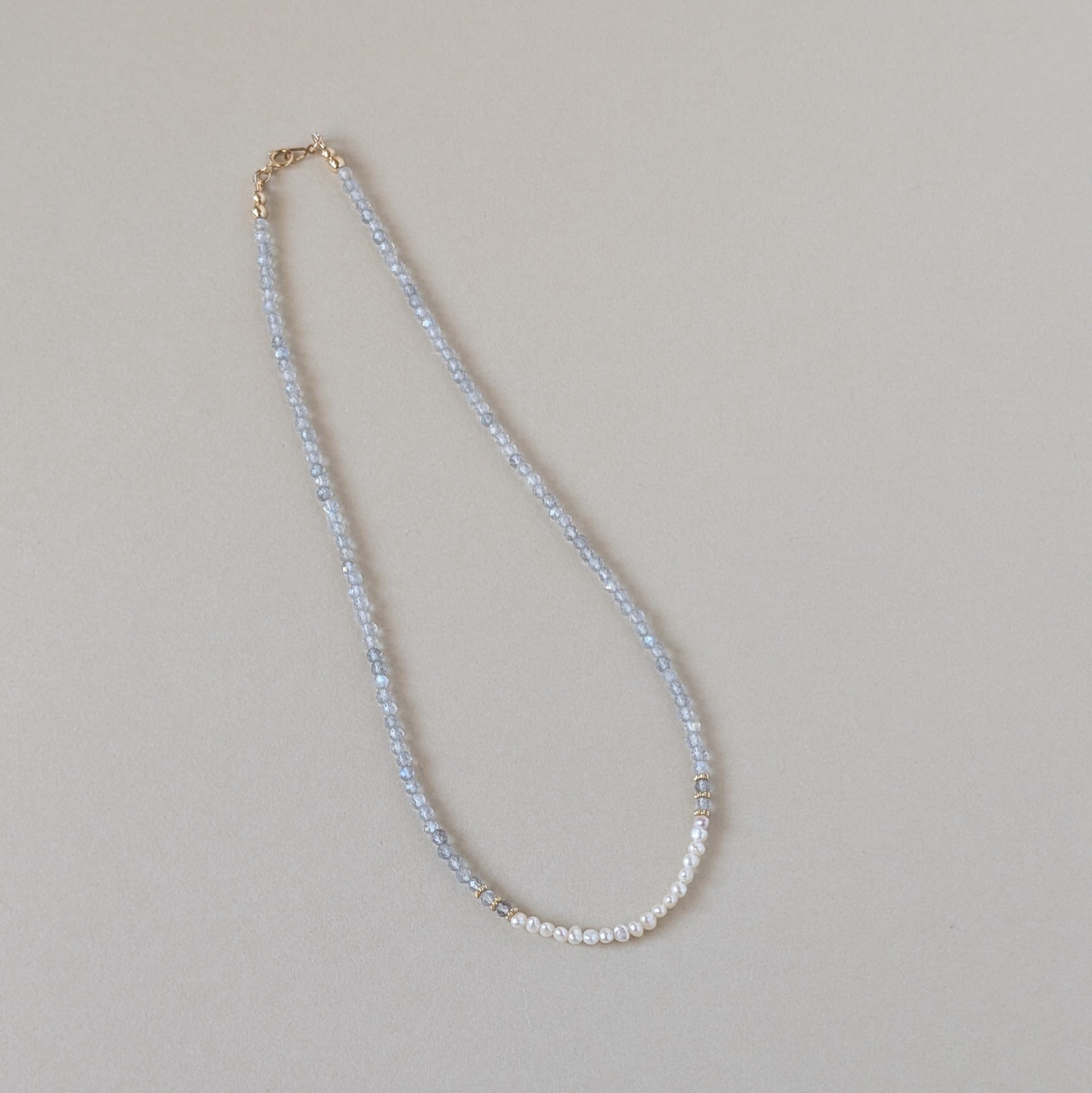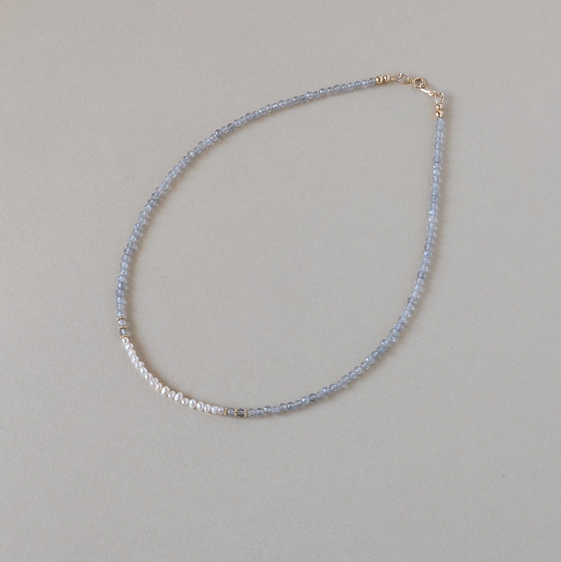 極小ながらも上質な貴重な淡水パールと組み合わせ大人可愛いネックレスに仕上げました。