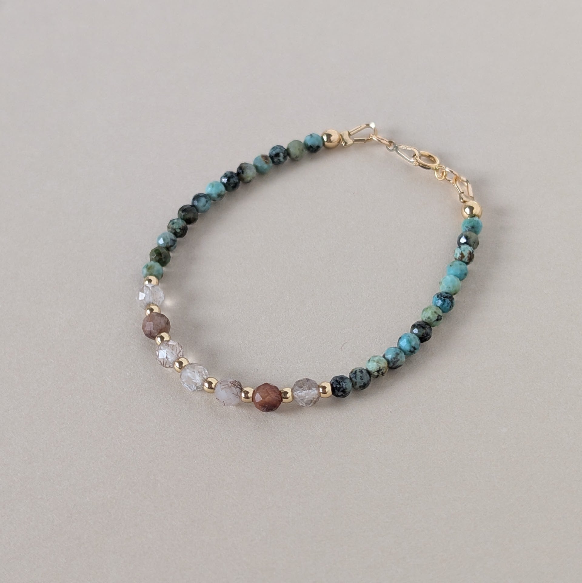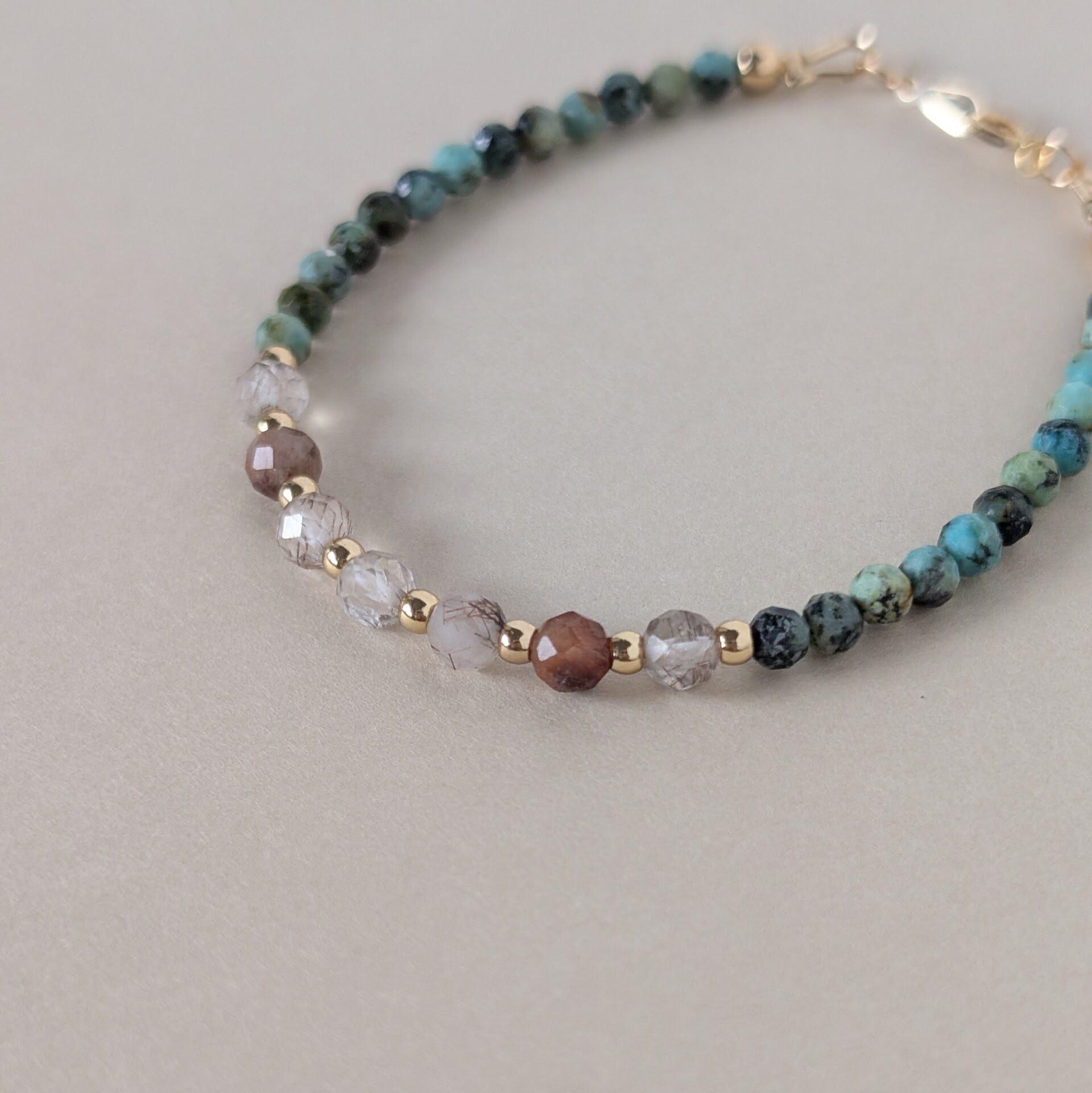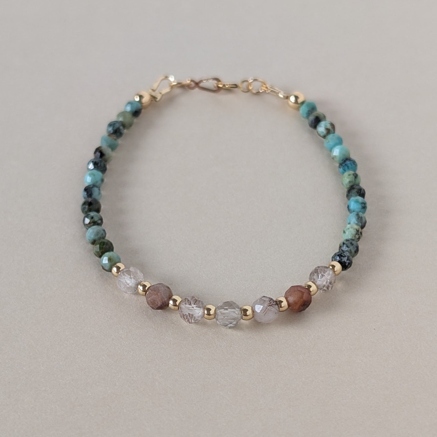 人気のアフリカンターコイズにコッパールチルクオーツをあわせたブレスレット。