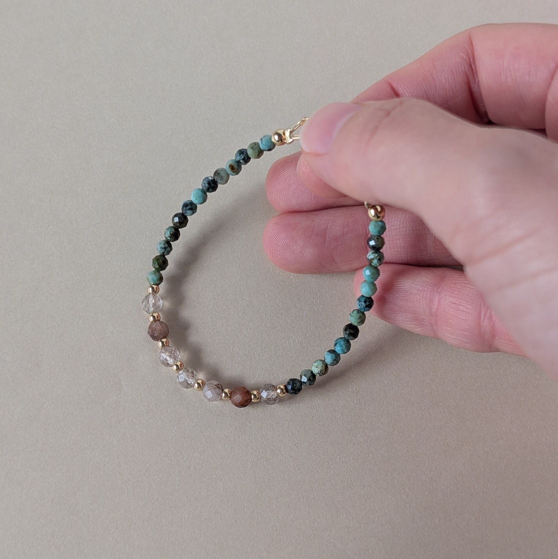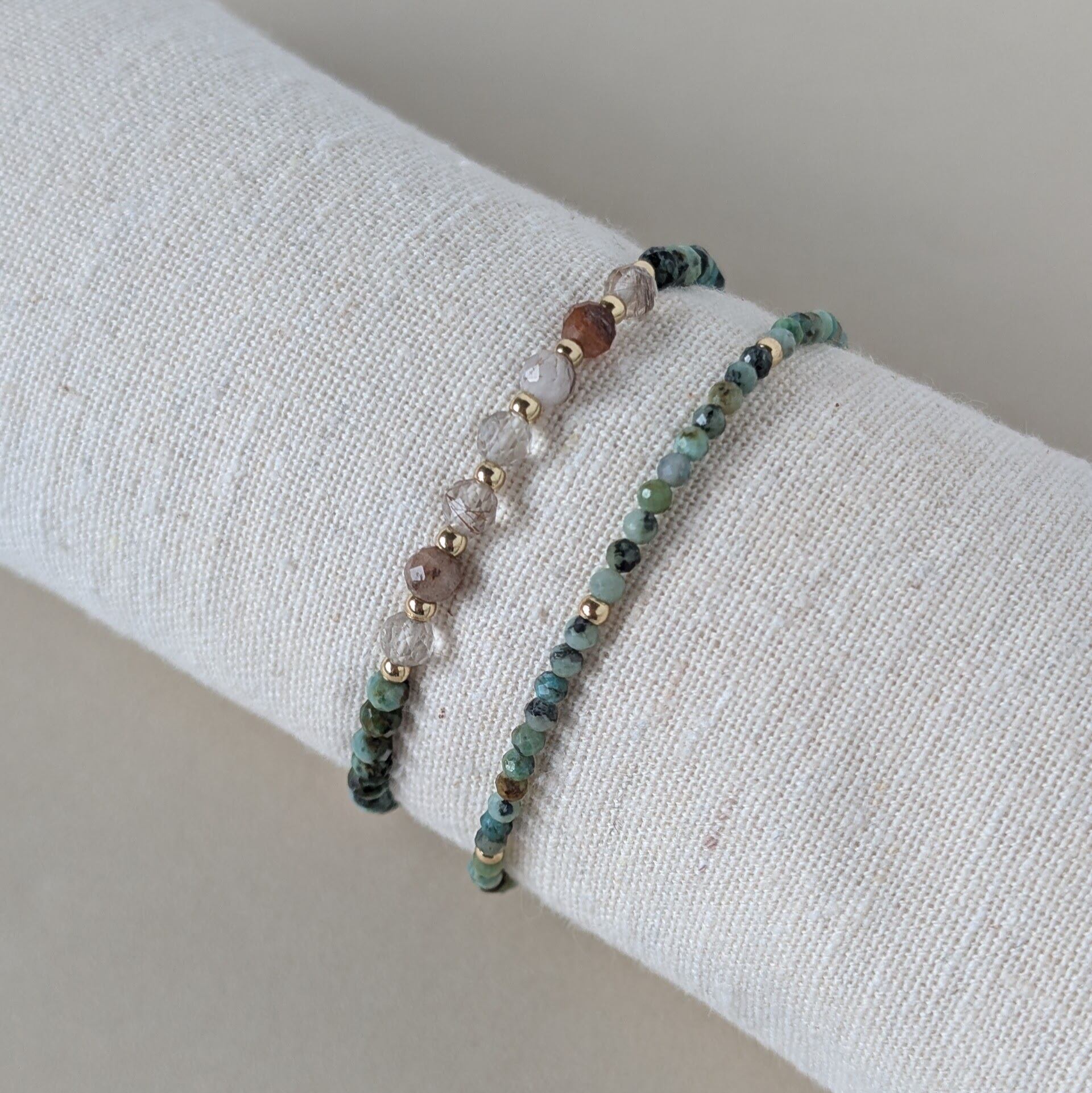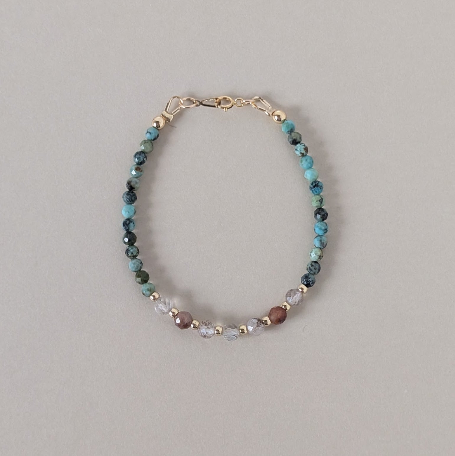 人気のアフリカンターコイズにコッパールチルクオーツをあわせたブレスレット。