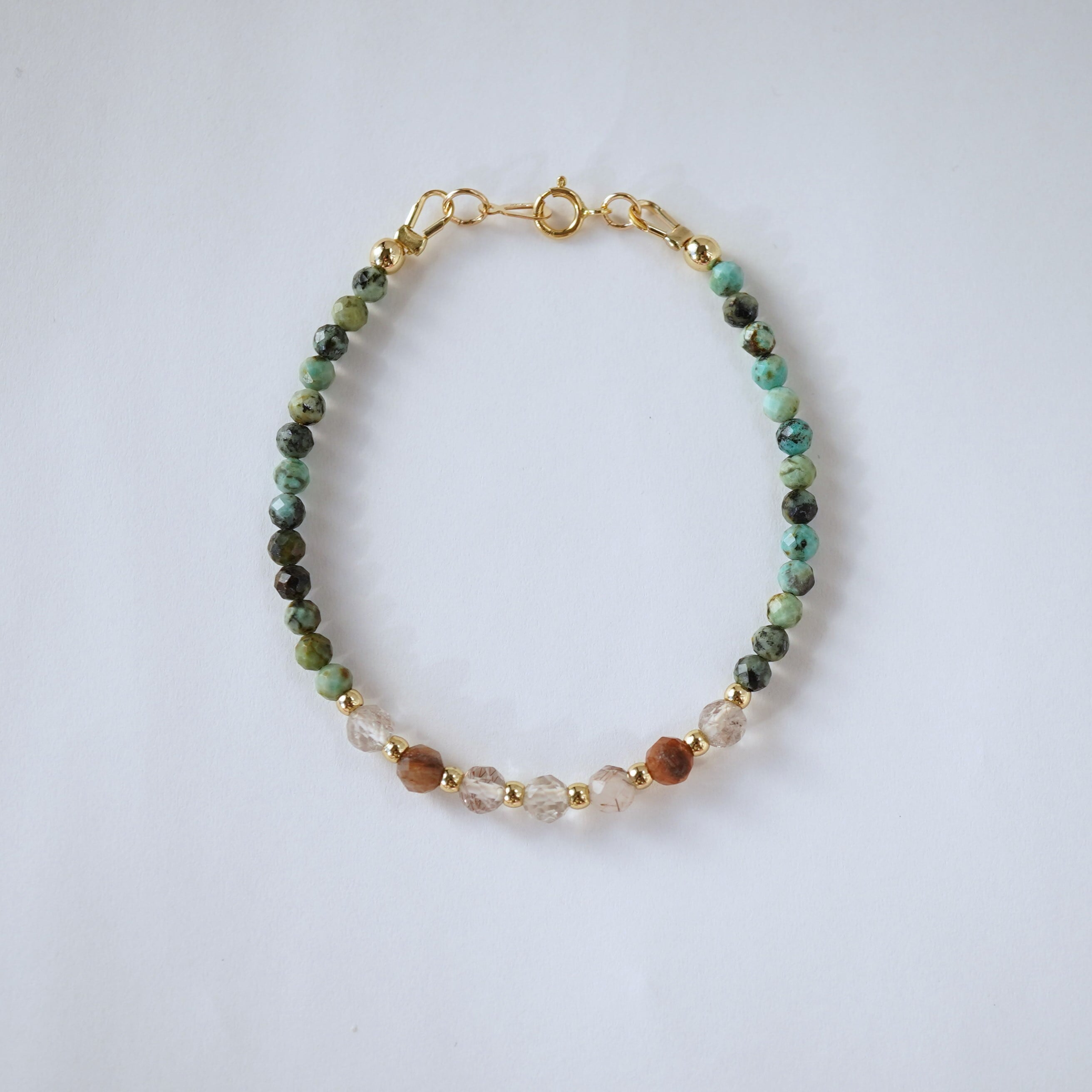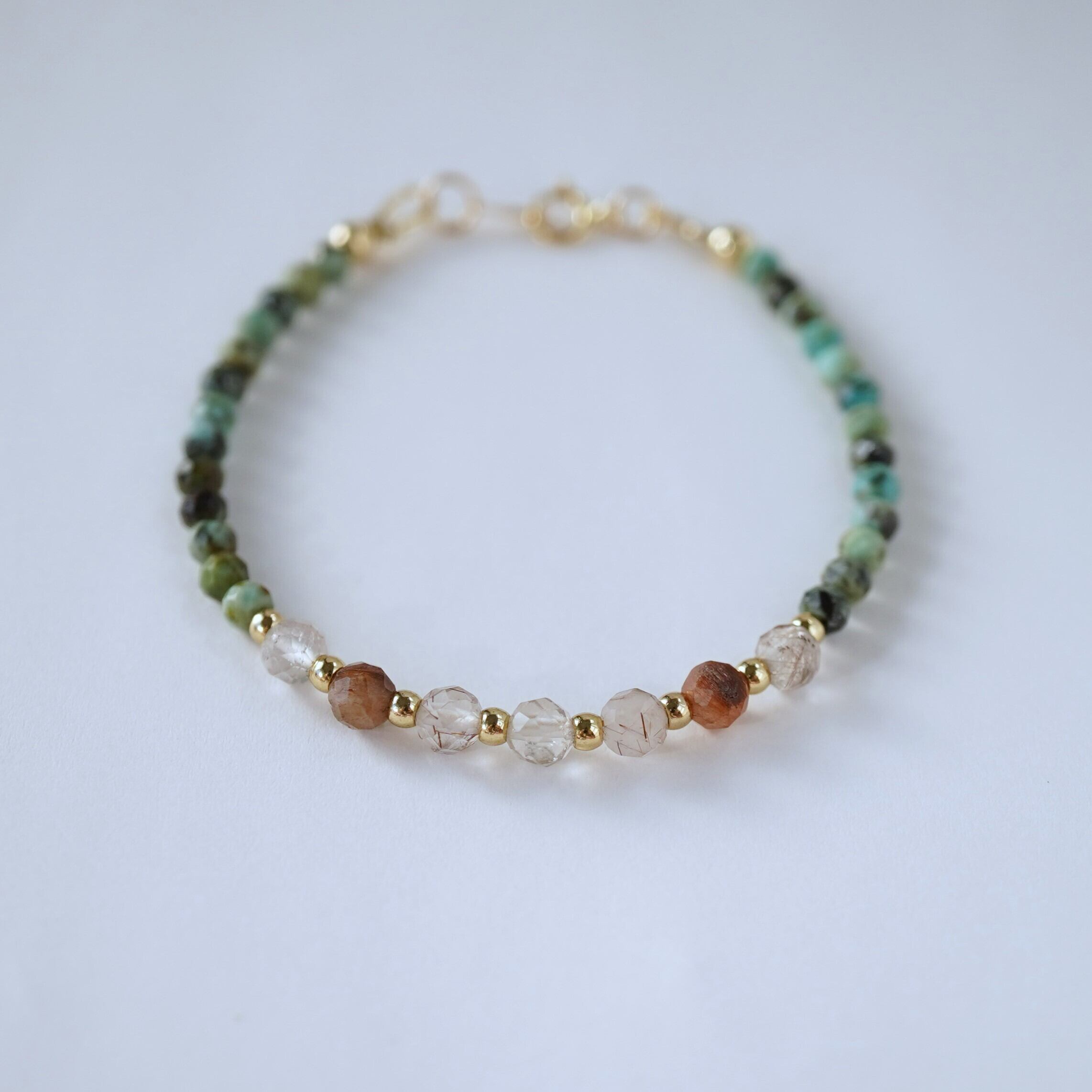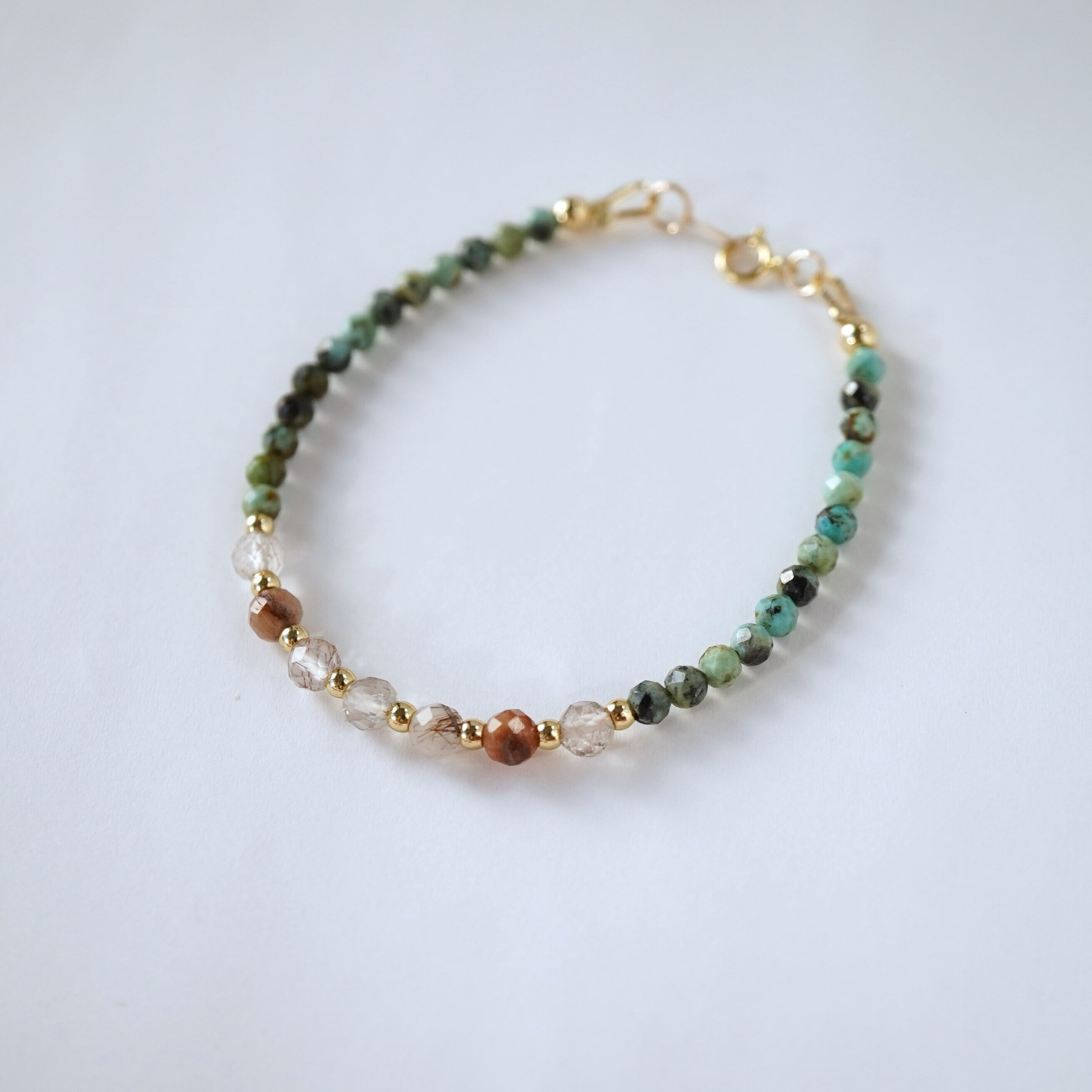 強運・家庭円満 アフリカンターコイズとコッパールチルクォーツのブレスレット 14kgf