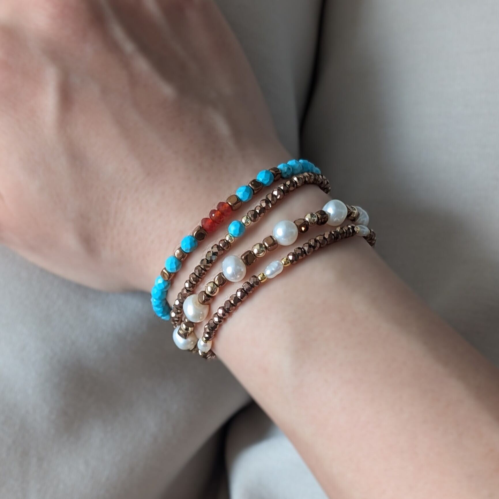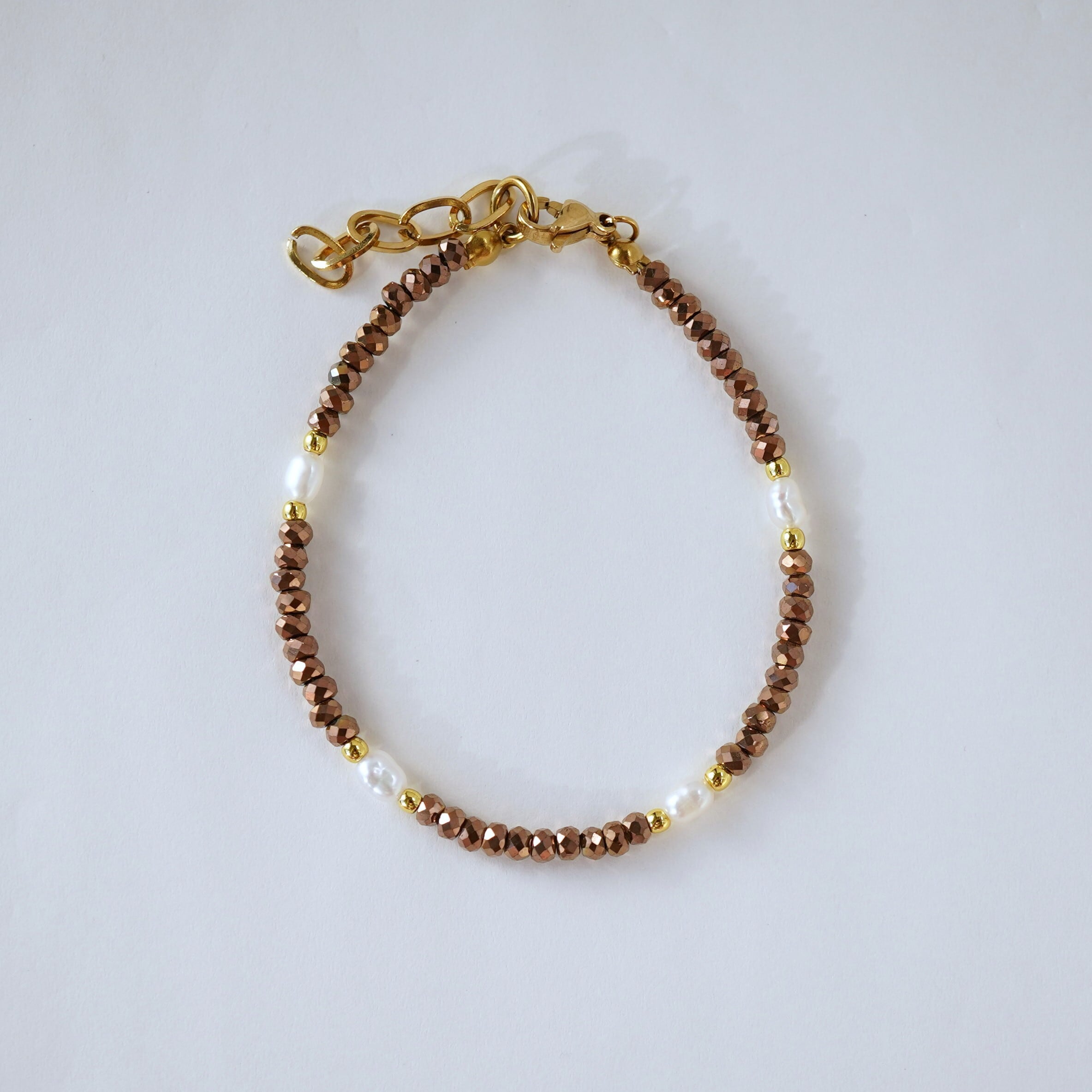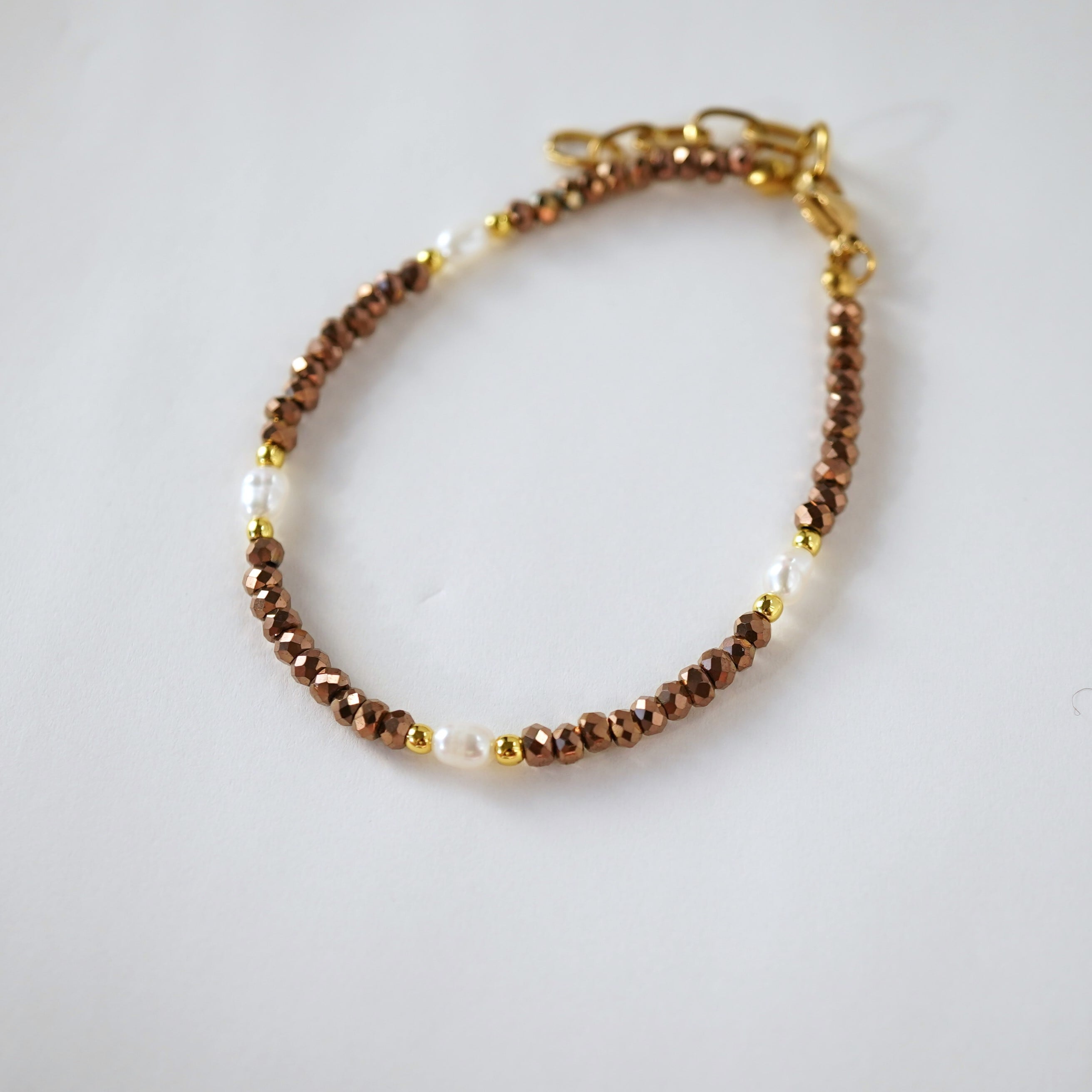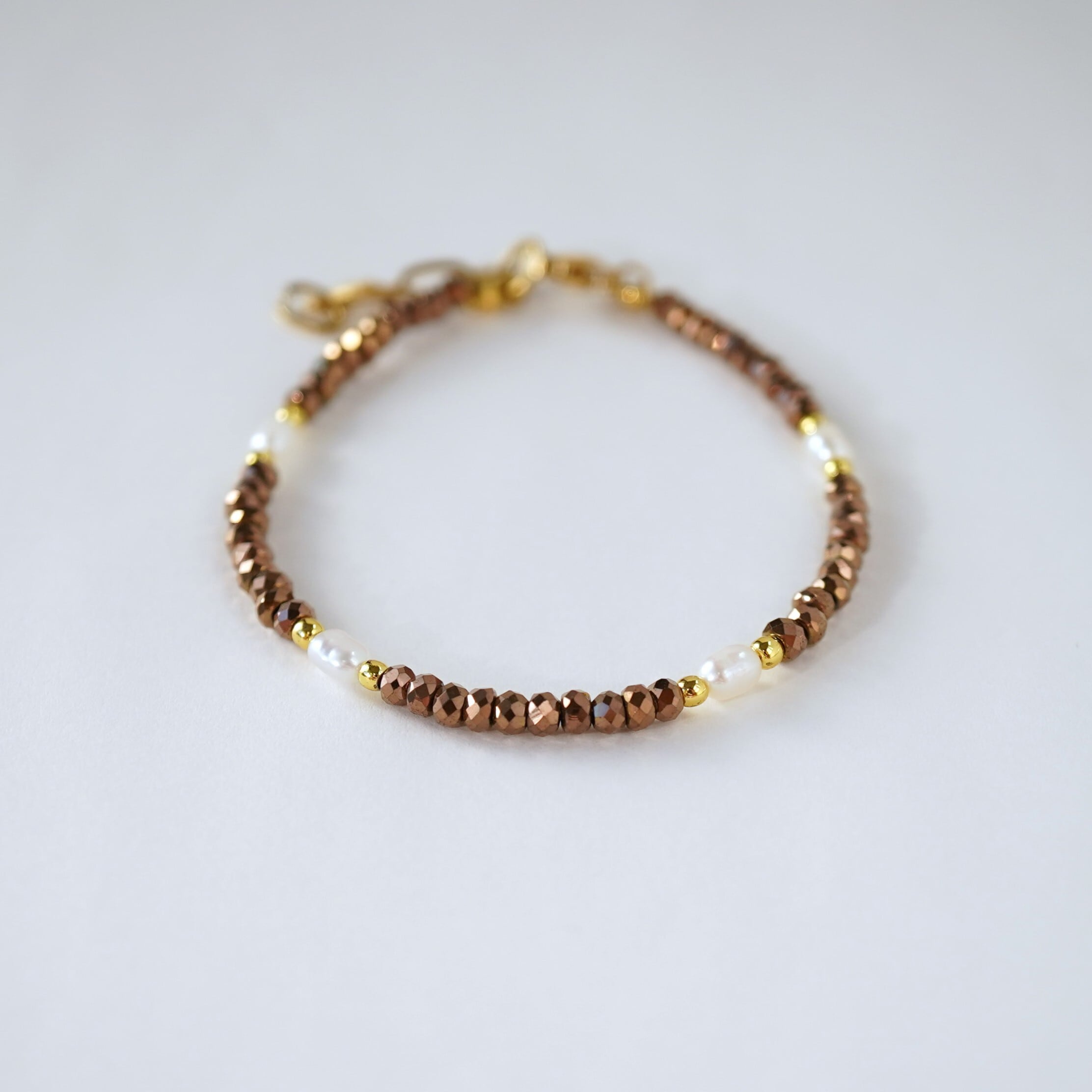 きらきらヘマタイトとパールのブレスレット