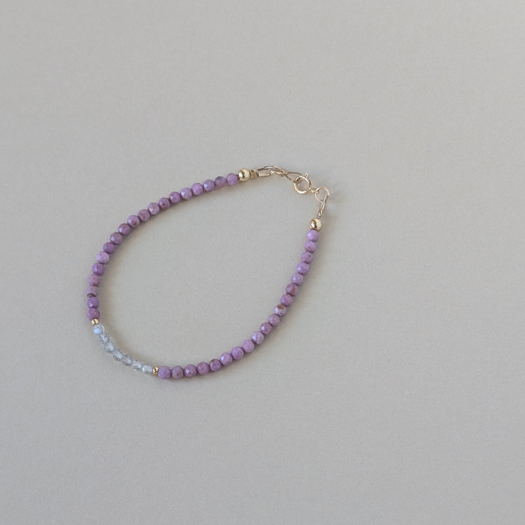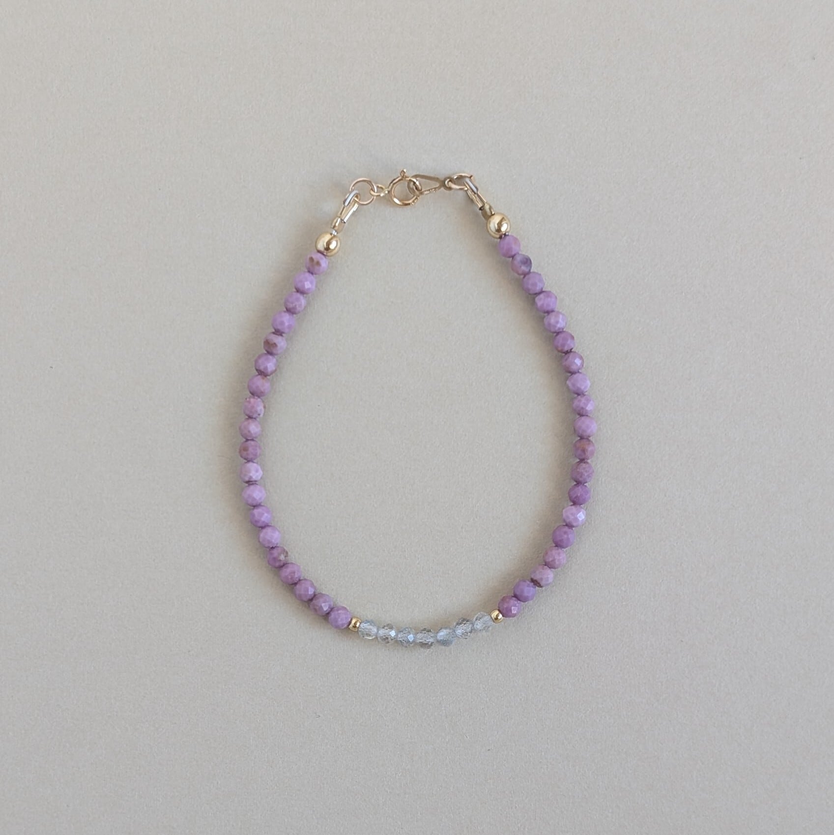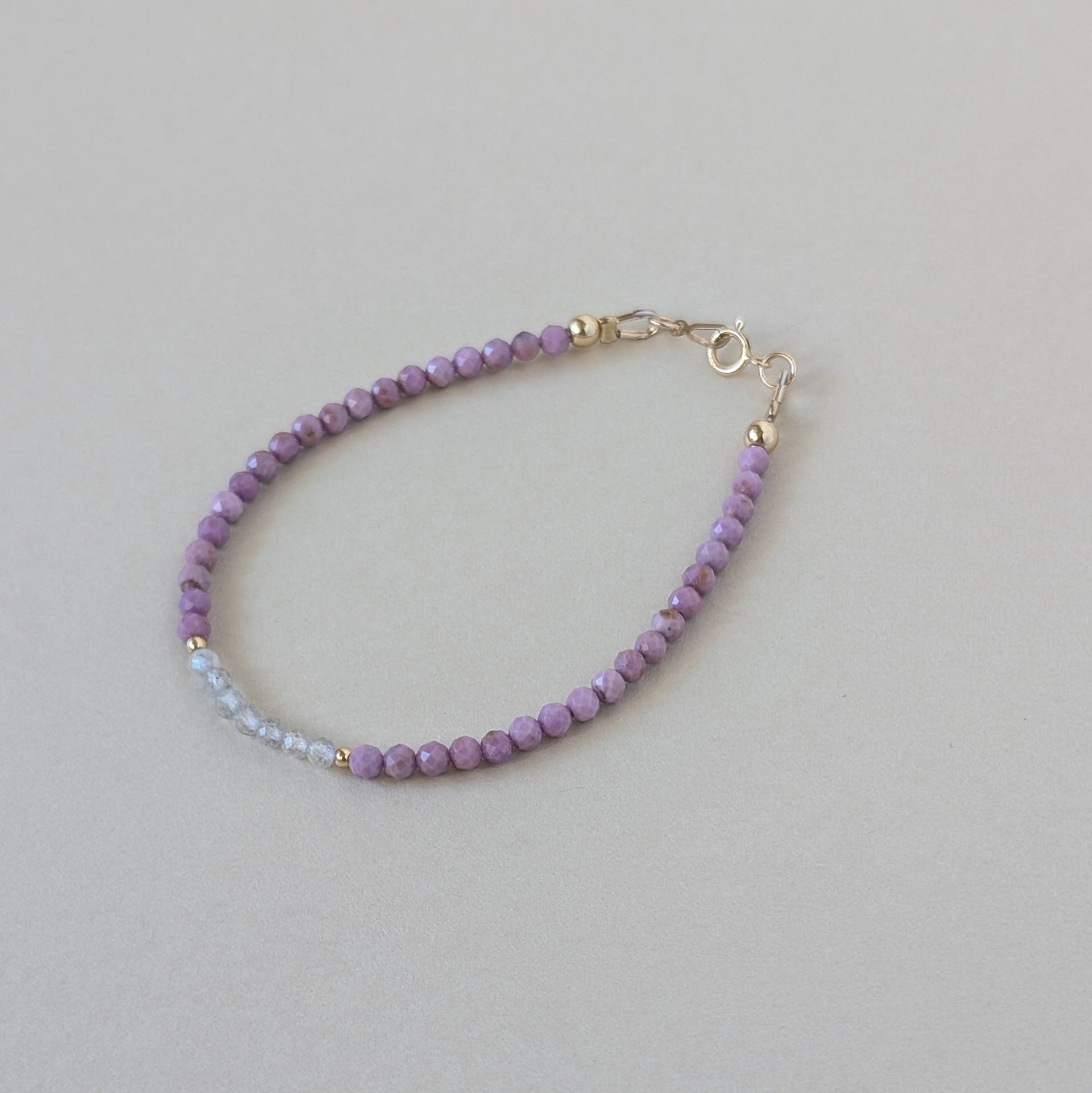 優しいラベンダーカラーが魅力的なフォスフォシデライトのブレスレットです。
