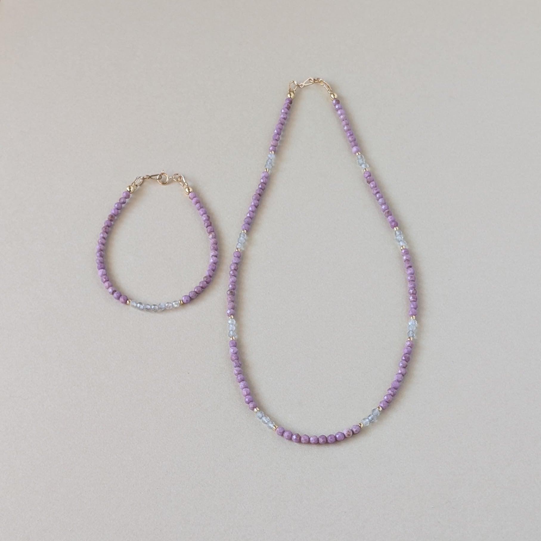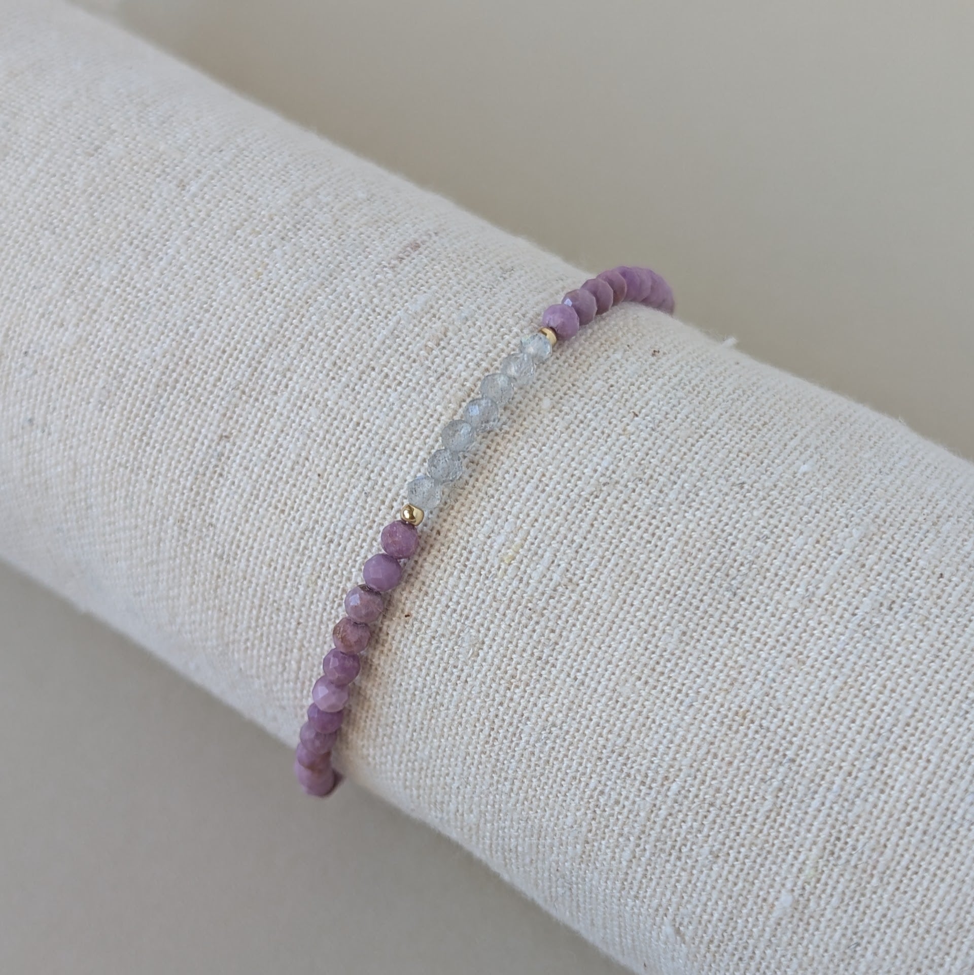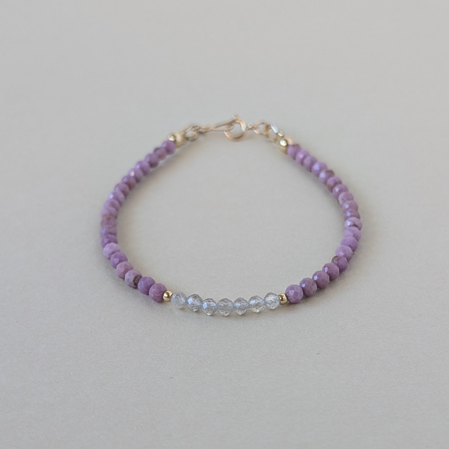 優しいラベンダーカラーが魅力的なフォスフォシデライトのブレスレットです。