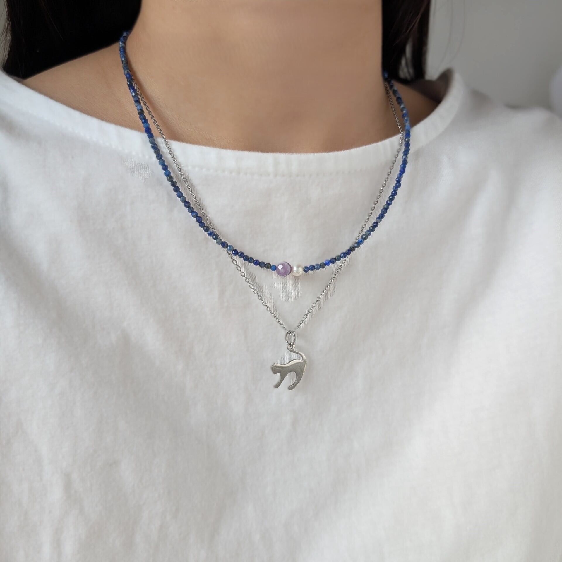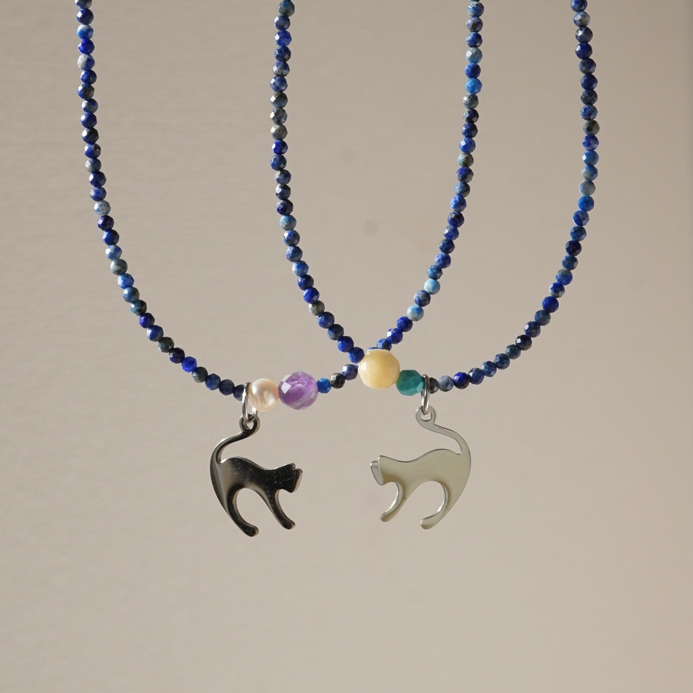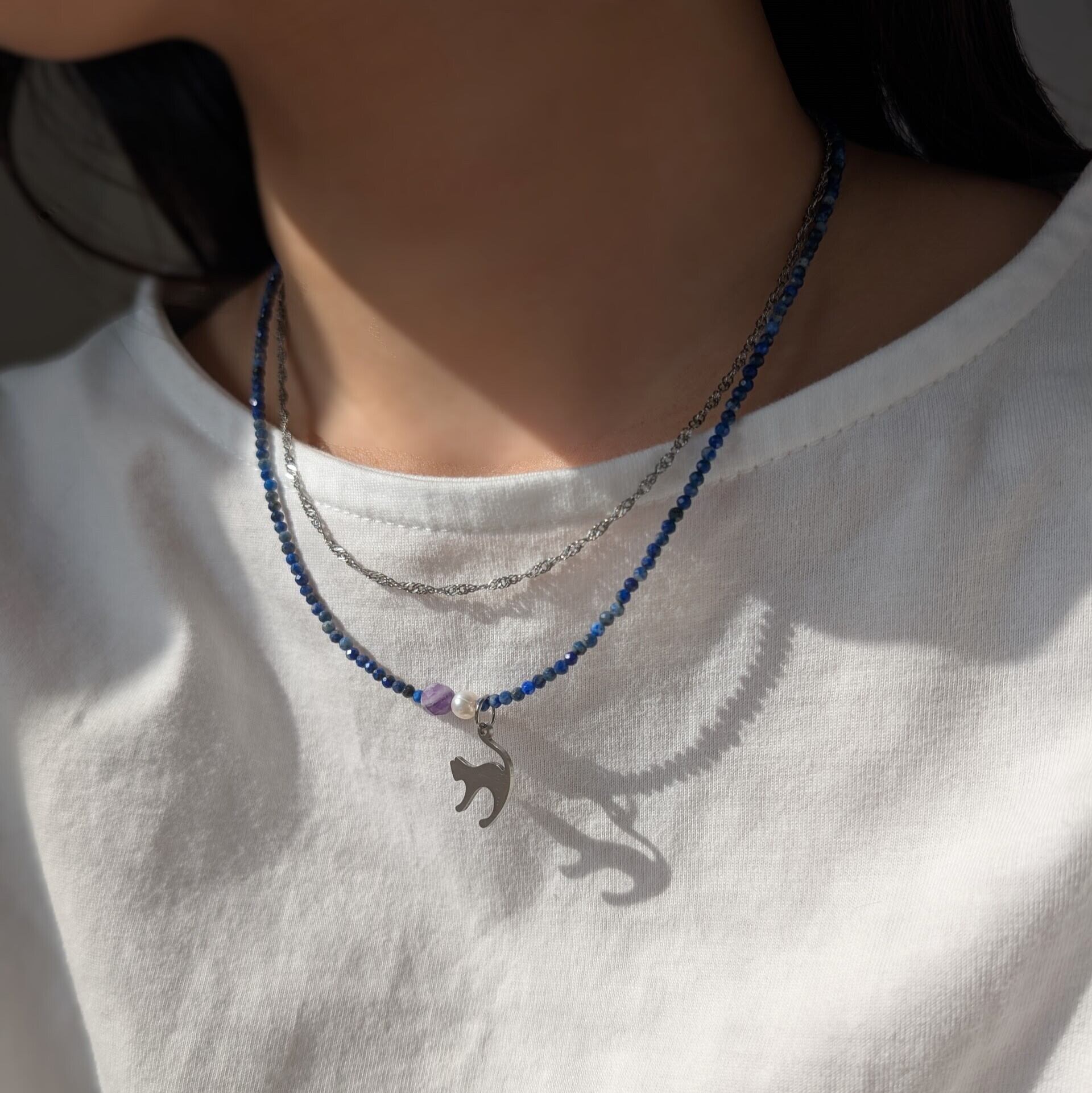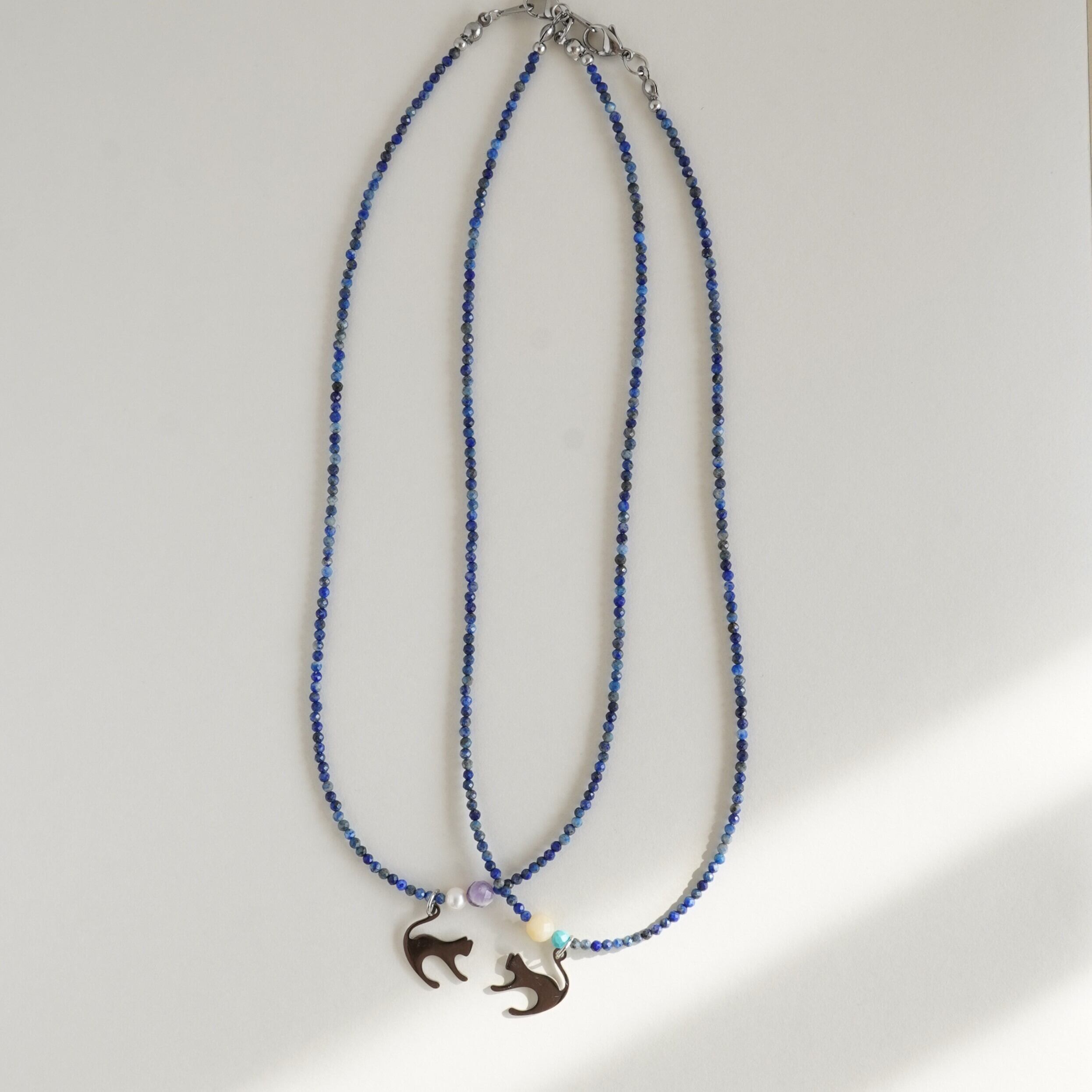 【2way】猫ちゃんとラピスラズリのネックレス ALLステンレス製